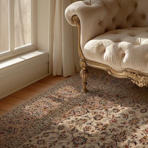 Silk rugs: Exceptionally fine knotting combined with a characteristic sheen. Pure silk rugs – particularly from Ghom or Kashmir – represent the highest level of detail and precision. Their delicate structure gives them an especially elegant and artistic appearance.