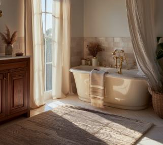 Of course you can combine models with different styles and colours and integrate them into your furnishings. Even for giving your bathroom an extravagant touch and care for warm feet, you can use an Oriental carpet.