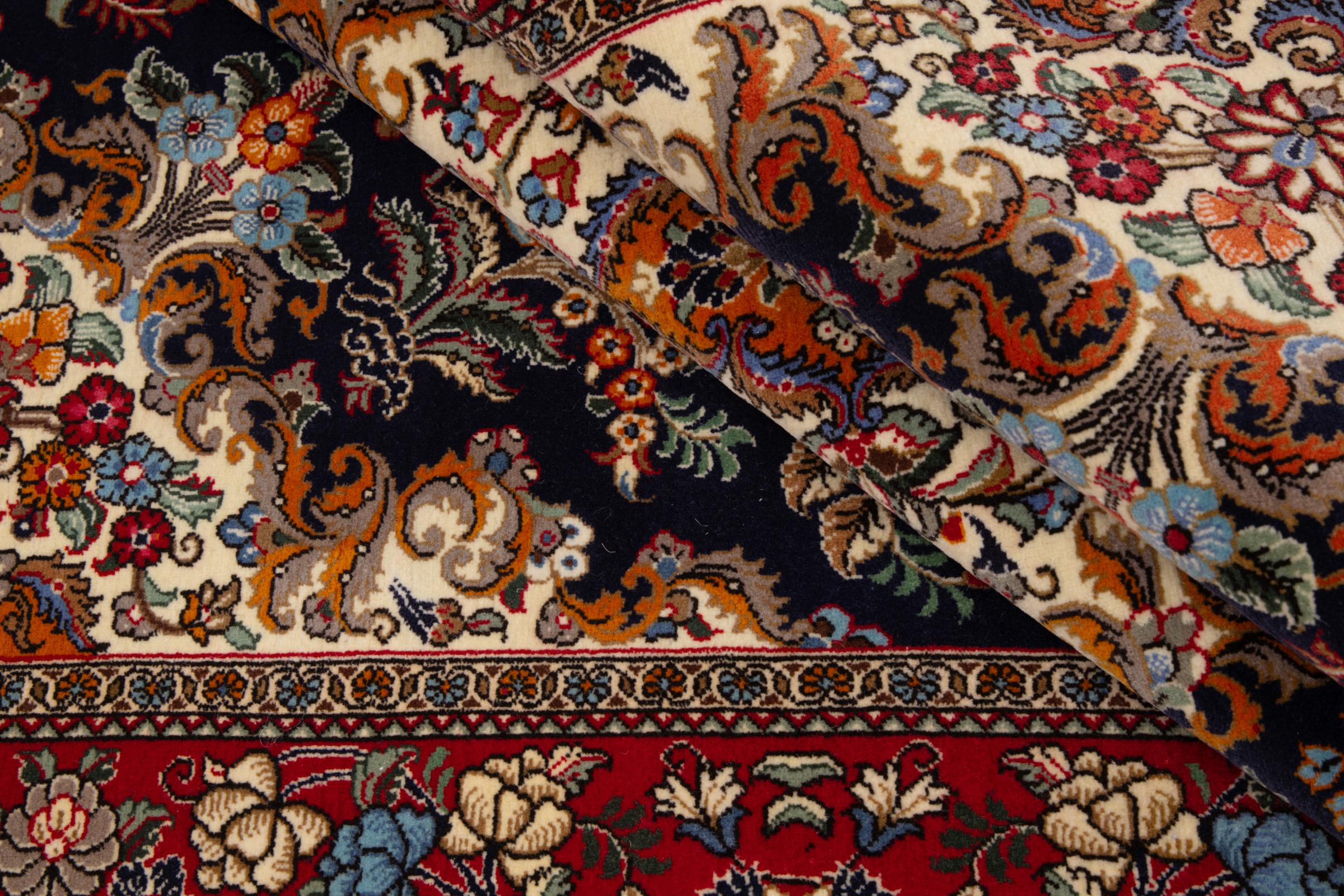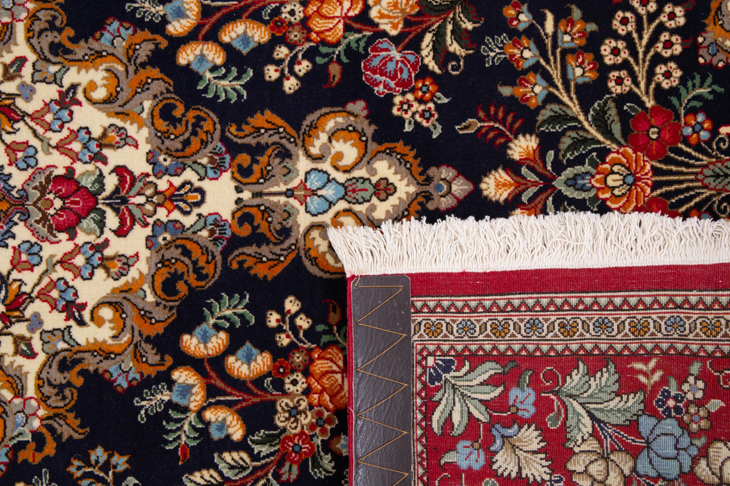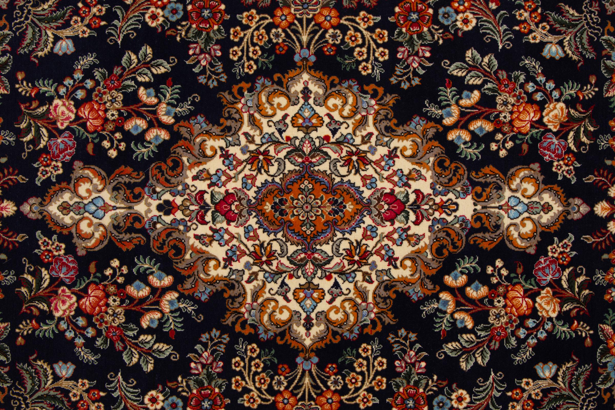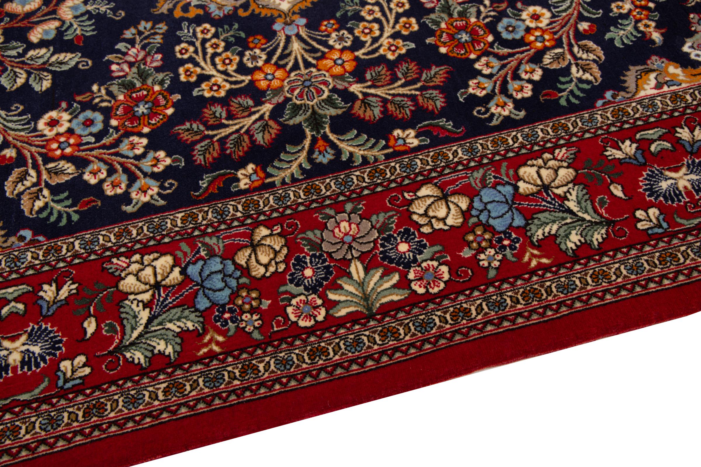This Qum (also called: Qom) carpet is a piece of outstanding quality. Its wool originates exclusively from the neck section of sheep. It's exceptionally soft and consists of a high degree of natural fat, which makes the carpet even more resilient against day-to-day stress. Additionally, this genuine Persian carpet has been knotted by hand in the holy city Qum. Its fascinating ornaments and beautiful design are going to impress you and your guests.