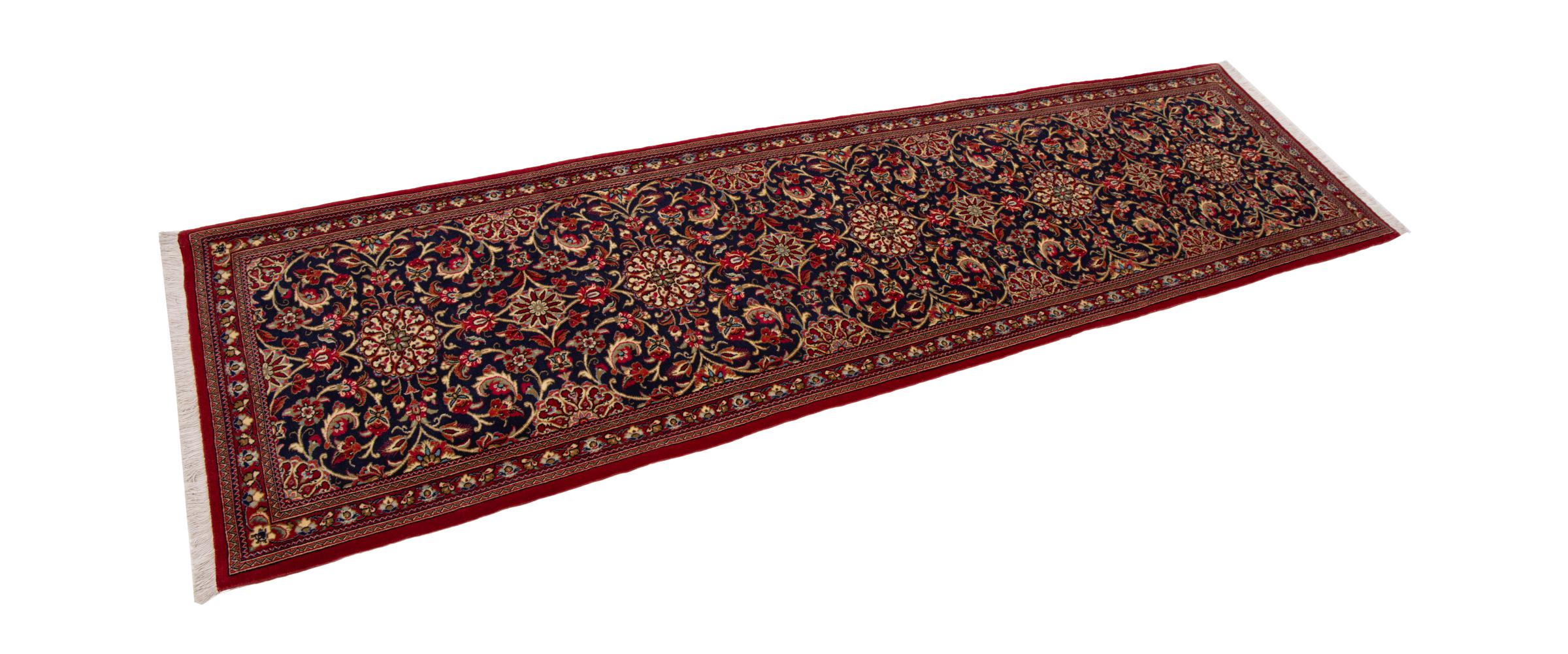 Carpet ID: 292832002674116 Size: 298x79 cm Thickness: ap. 10 mm Knot density: 320 000 - 360 000 / m² Manufacturing: Knotted by hand Pile: Handspun wool Warp: Cotton Origin: Persia Age: New Weight: ap. 8 kg In stock: Unique - Only 1 in stock