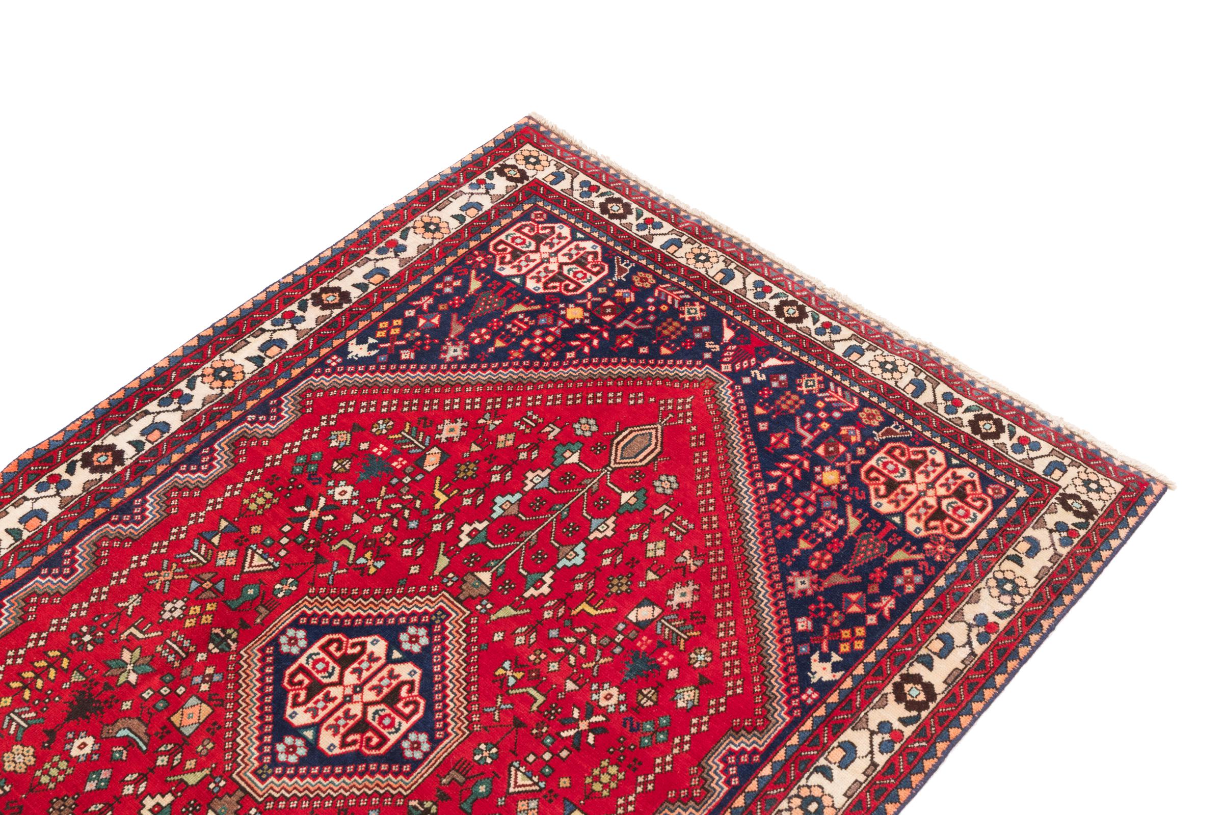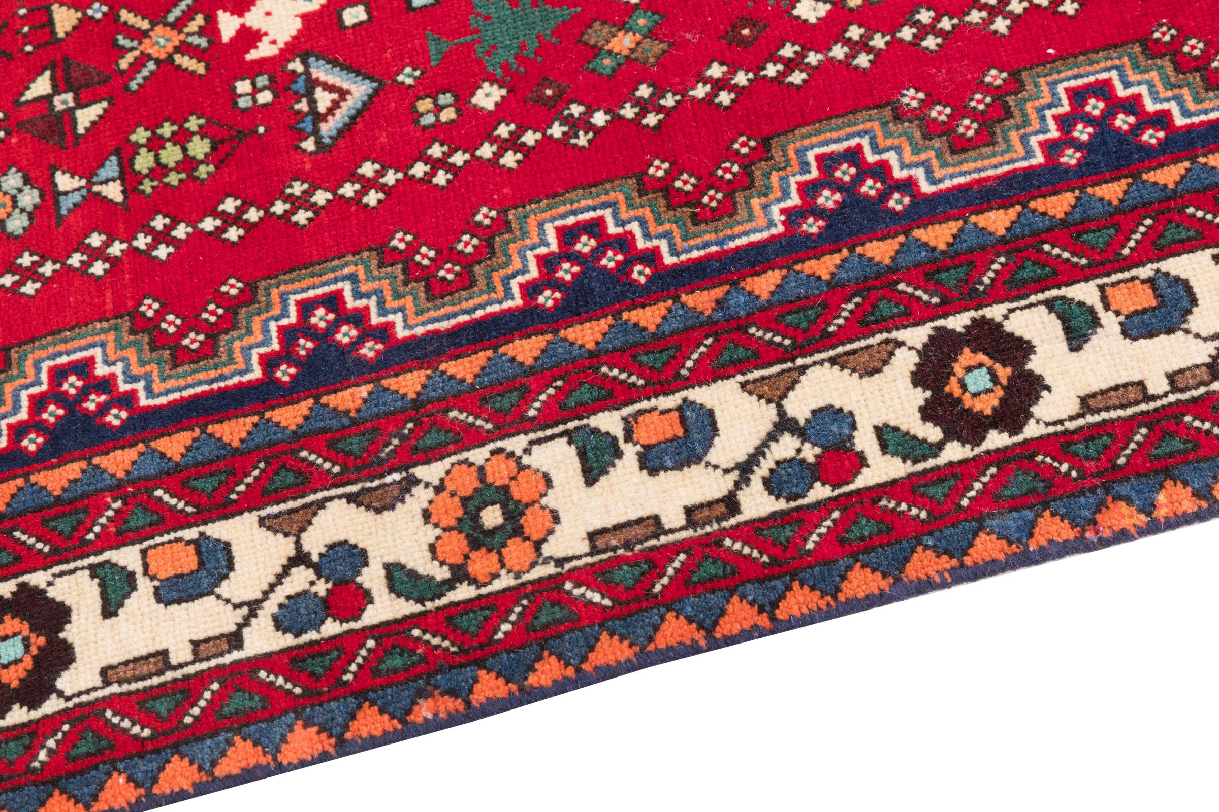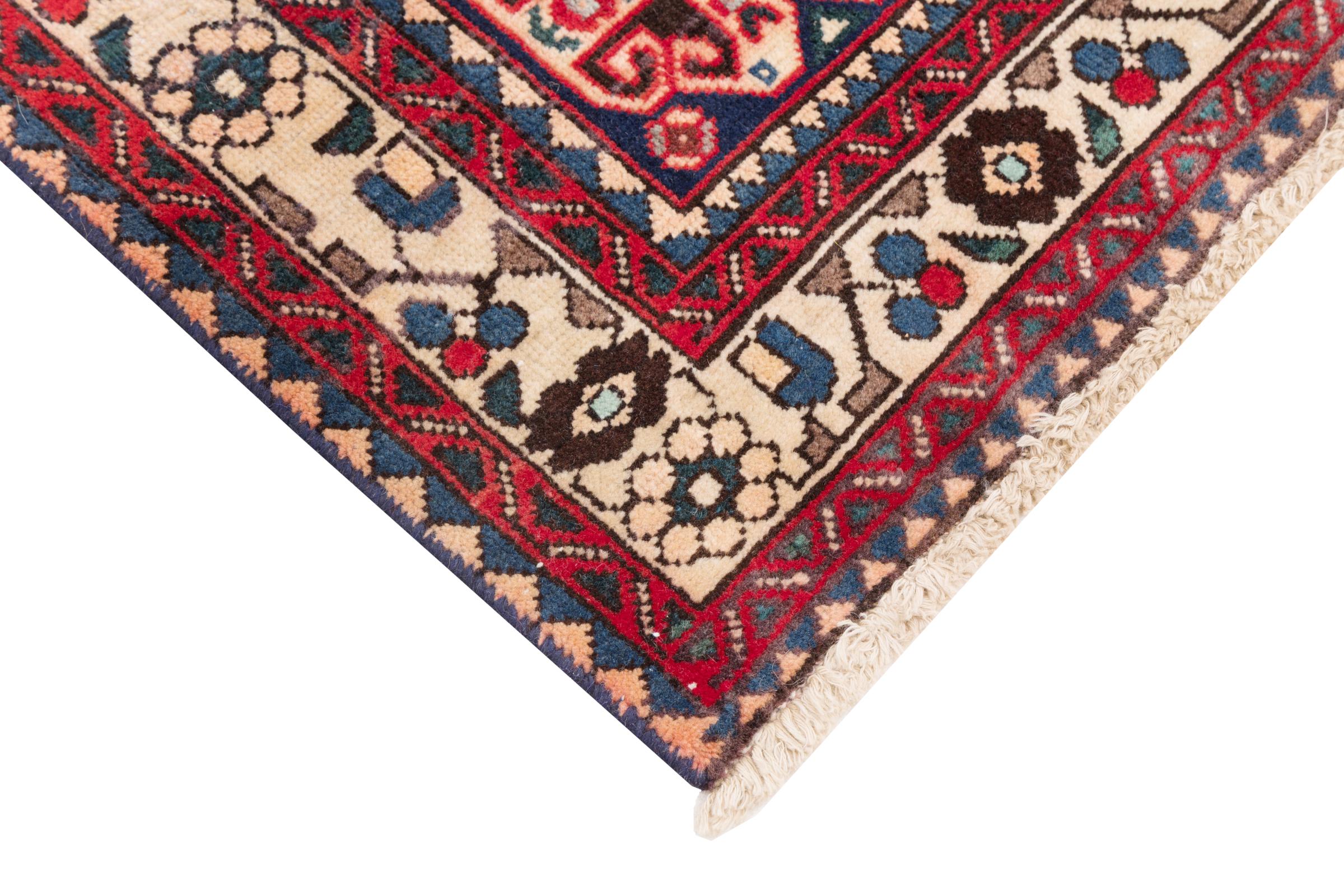 This rug belongs to village and nomadic rugs from Iran, formerly Persia. This type of rug is knotted by hand in smaller towns and villages in old tradition. Even nomads still knot Persian rugs in the open air. The rugs are knotted without a draft and completely from the mind. They are characterized by classical ornaments, which are arranged in straight and geometrical patterns. Thanks to their cultural-traditional origin, these rugs have a unique character that embodies ancient Persia.