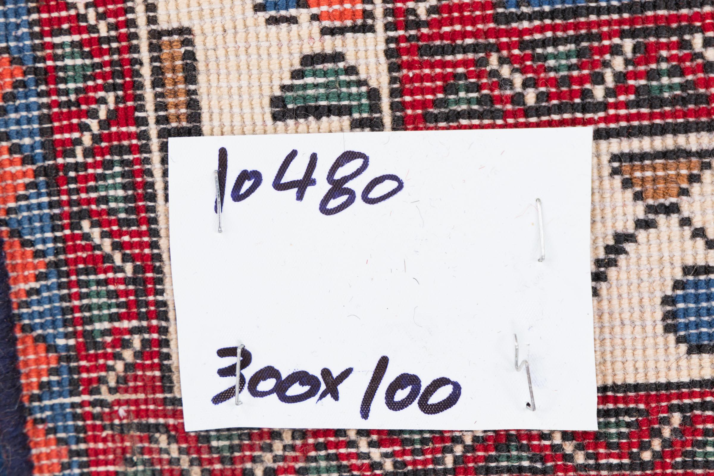 Carpet ID: 284135009641996 Size: 301x101 cm Thickness: ap. 8 mm Knot density: 200 000 - 250 000 / m² Manufacturing: Knotted by hand Pile: Handspun wool Warp: Cotton Condition / Conservation Carpet is severely and uniformly frayed Origin: Persia Age: 30-50 years (New) Weight: ap. 11 kg Also know as Qashqai, Gaschgai, Gashghai, Kashgai In stock: Unique - Only 1 in stock