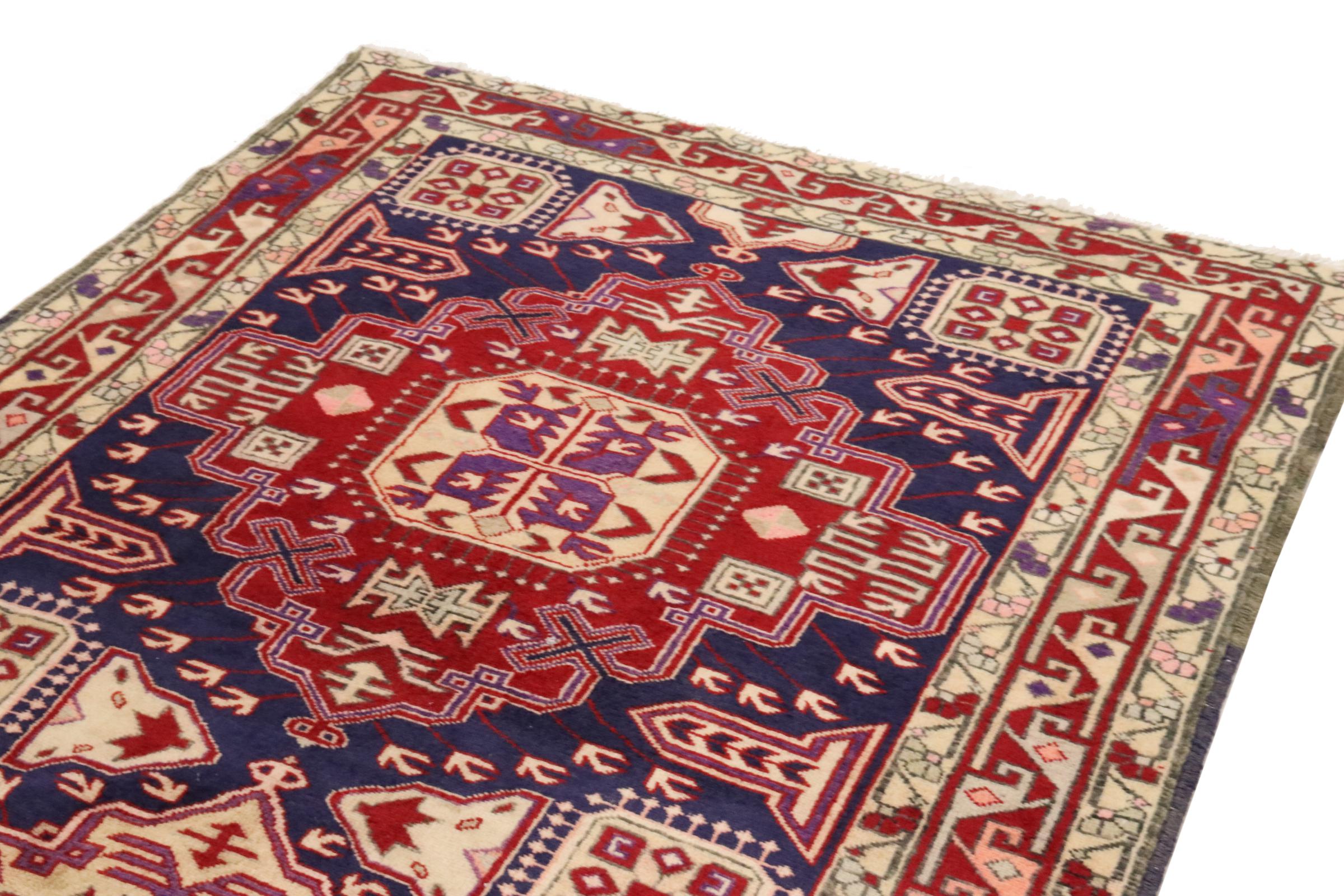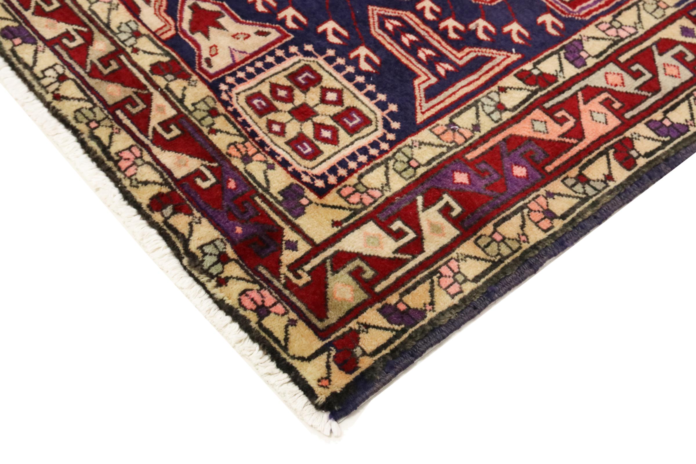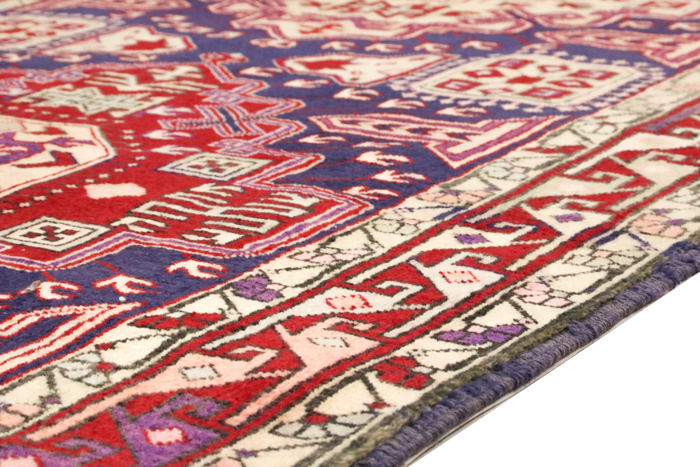 This rug belongs to village and nomadic rugs from Iran, formerly Persia. This type of rug is knotted by hand in smaller towns and villages in old tradition. Even nomads still knot Persian rugs in the open air. The rugs are knotted without a draft and completely from the mind. They are characterized by classical ornaments, which are arranged in straight and geometrical patterns. Thanks to their cultural-traditional origin, these rugs have a unique character that embodies ancient Persia.