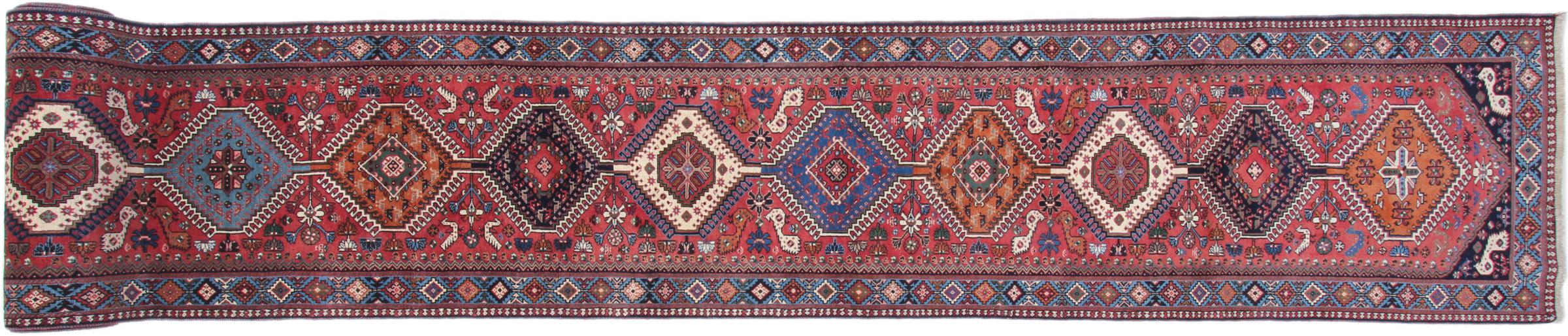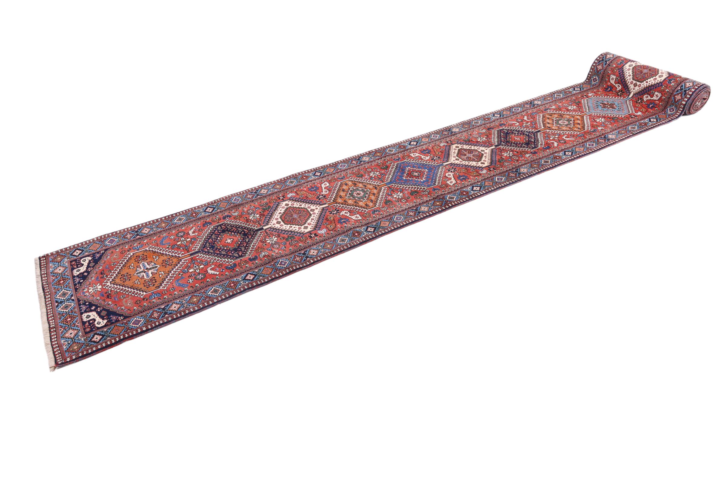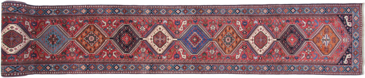 Carpet ID: 209326008403087 Size: 891x85 cm Thickness: ap. 8 mm Knot density: 128 000 - 160 000 / m² Manufacturing: Knotted by hand Pile: Handspun wool Warp: Cotton Origin: Persia Age: 20-30 years (New) Weight: ap. 27 kg Also know as Qashqai, Gaschgai, Gashghai, Kashgai In stock: Unique - Only 1 in stock