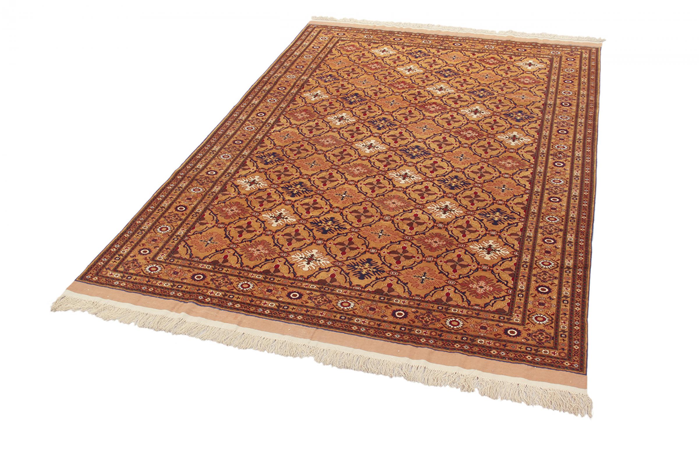 An Afghan silk carpet is rather unusual and something special. This is exactly what this hand knotted silk carpet embodies. The colours are in the red-brown spectrum and have an earthy and calming effect. At the same time it has a beautiful silky sheen that only real silk can create.