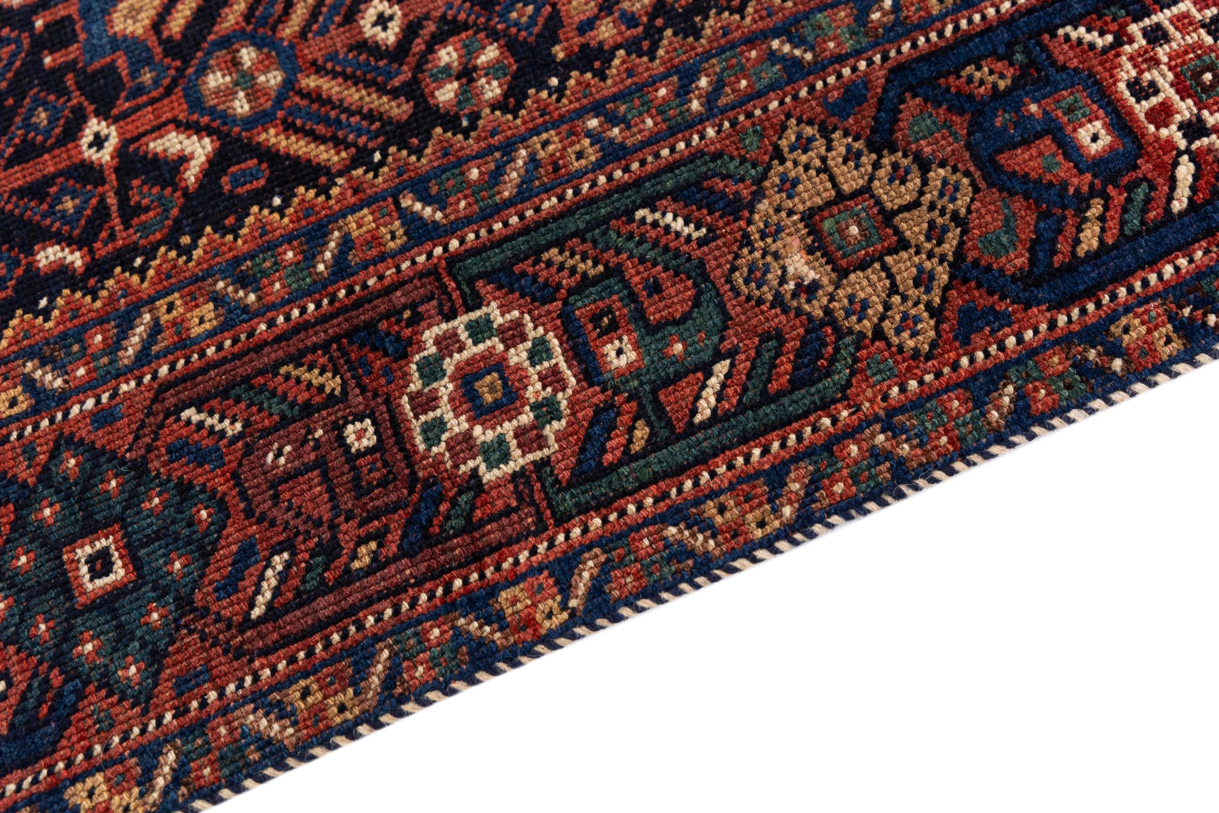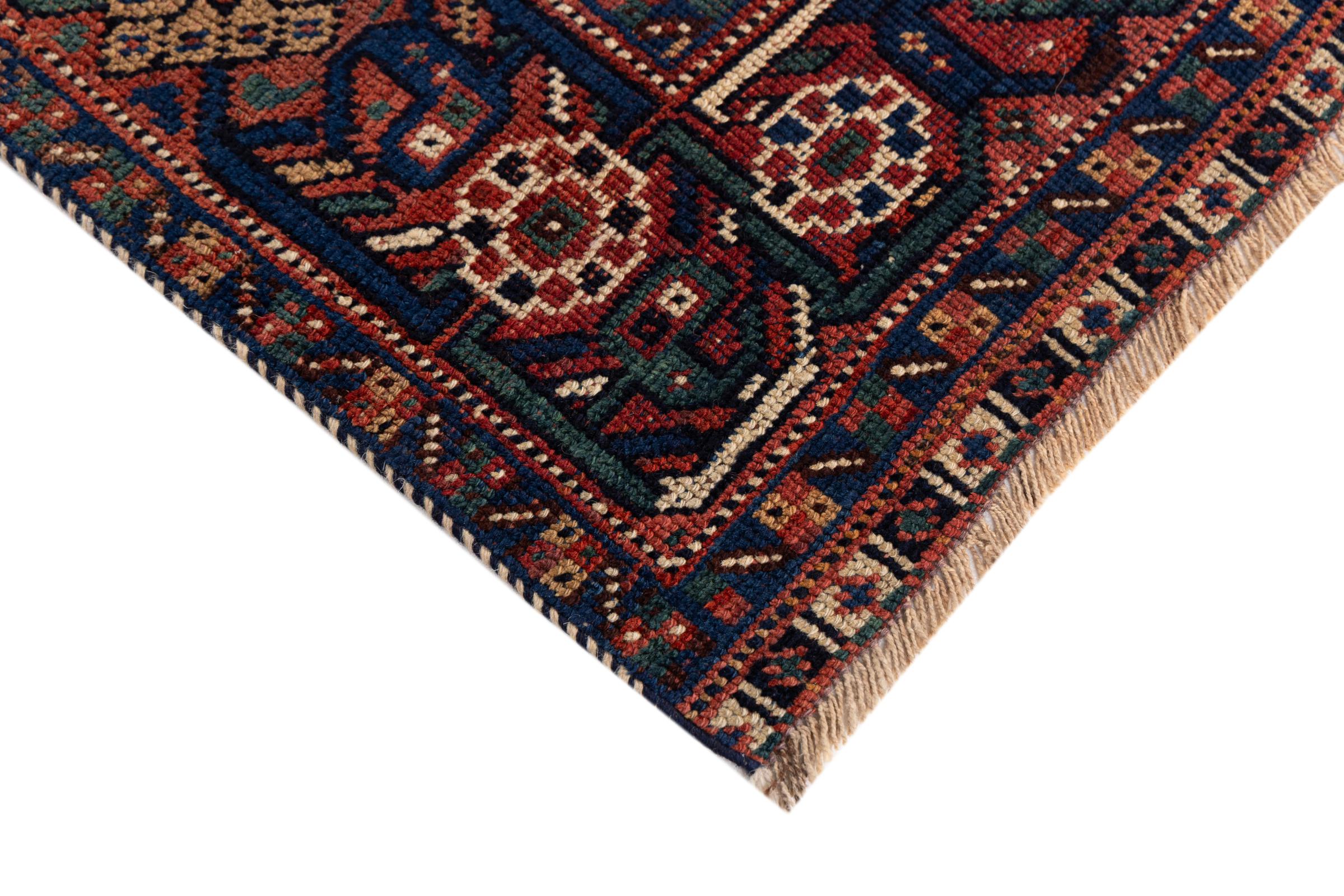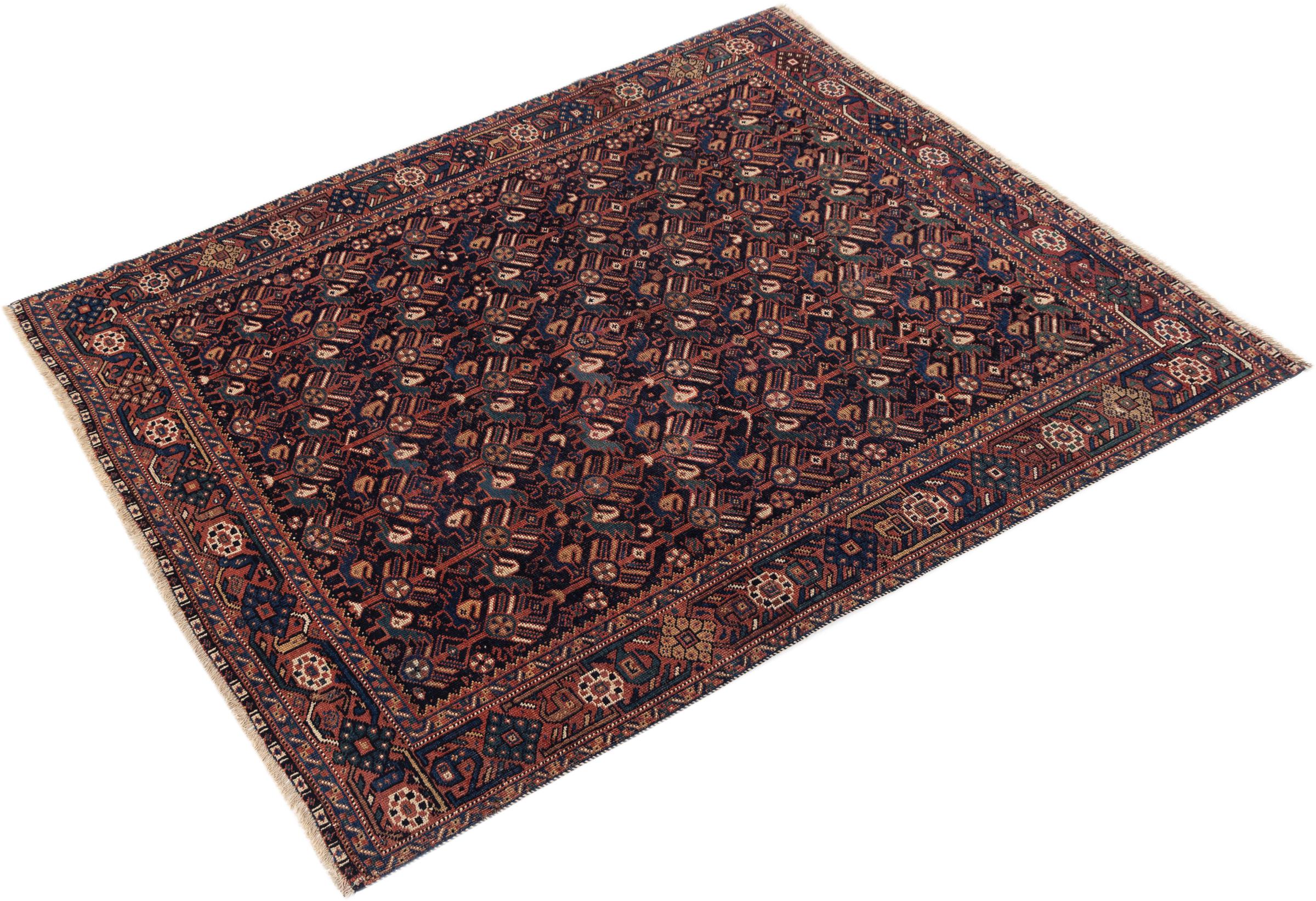 This rug belongs to village and nomadic rugs from Iran, formerly Persia. This type of rug is knotted by hand in smaller towns and villages in old tradition. Even nomads still knot Persian rugs in the open air. The rugs are knotted without a draft and completely from the mind. They are characterized by classical ornaments, which are arranged in straight and geometrical patterns. Thanks to their cultural-traditional origin, these rugs have a unique character that embodies ancient Persia.