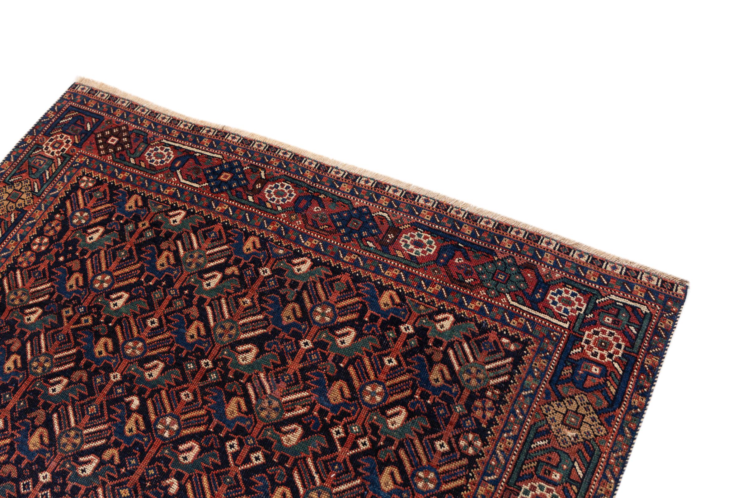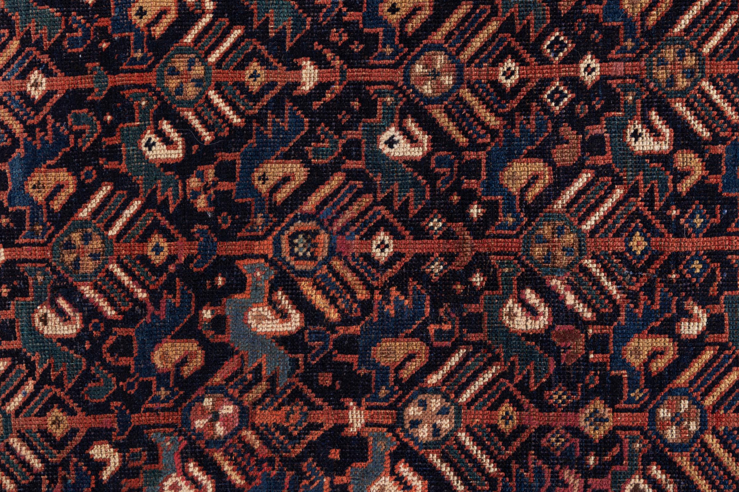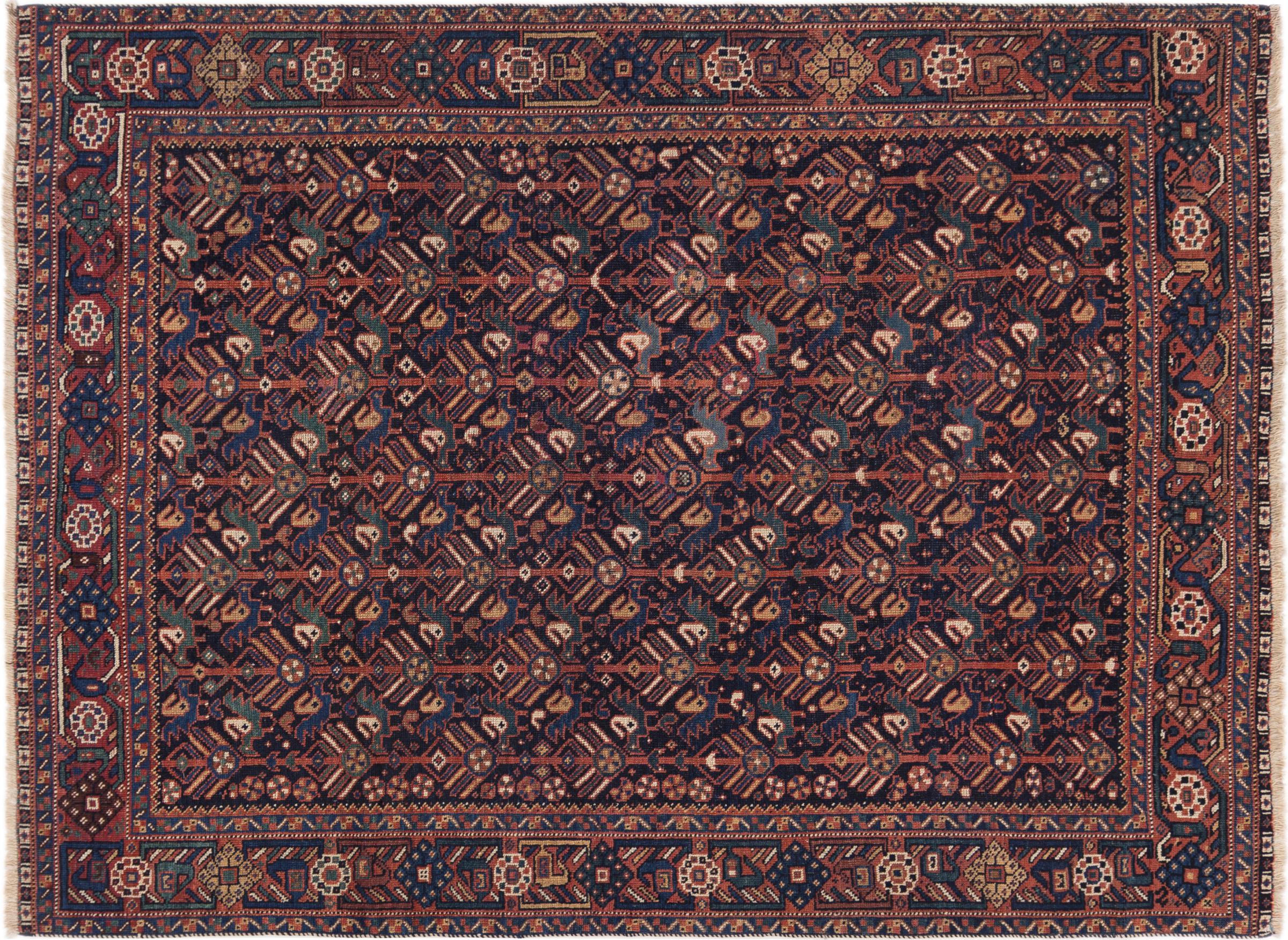 This rug belongs to village and nomadic rugs from Iran, formerly Persia. This type of rug is knotted by hand in smaller towns and villages in old tradition. Even nomads still knot Persian rugs in the open air. The rugs are knotted without a draft and completely from the mind. They are characterized by classical ornaments, which are arranged in straight and geometrical patterns. Thanks to their cultural-traditional origin, these rugs have a unique character that embodies ancient Persia.