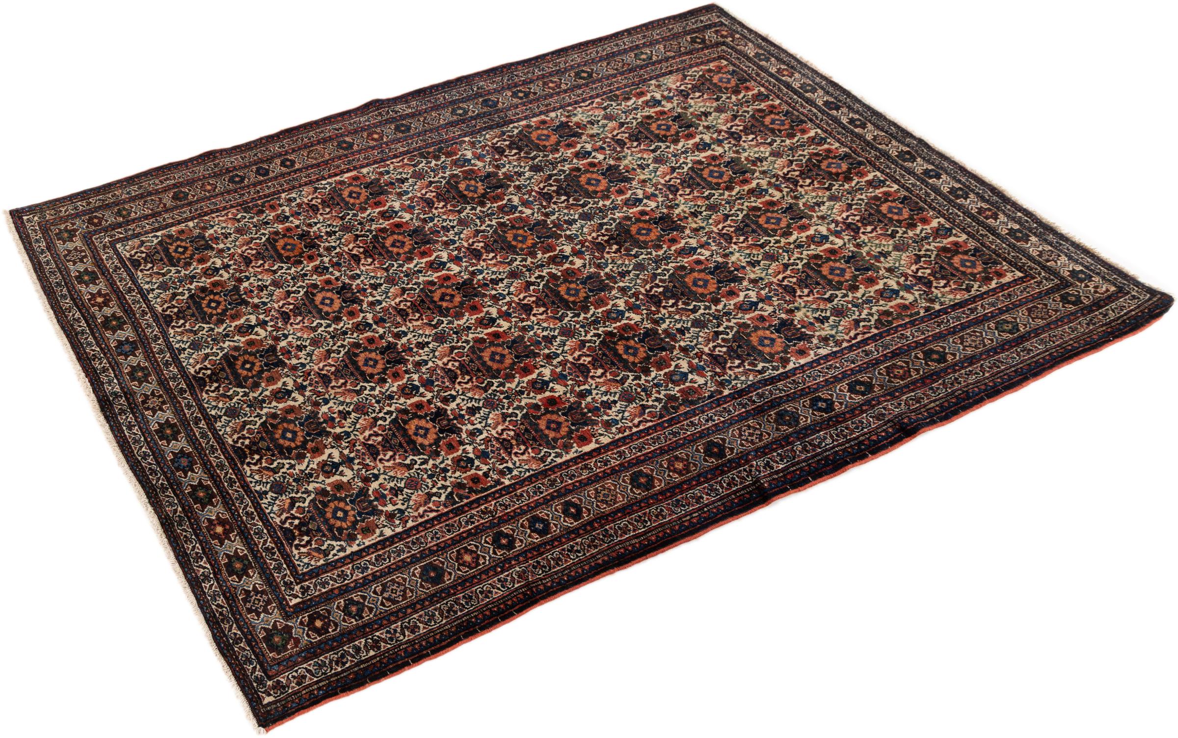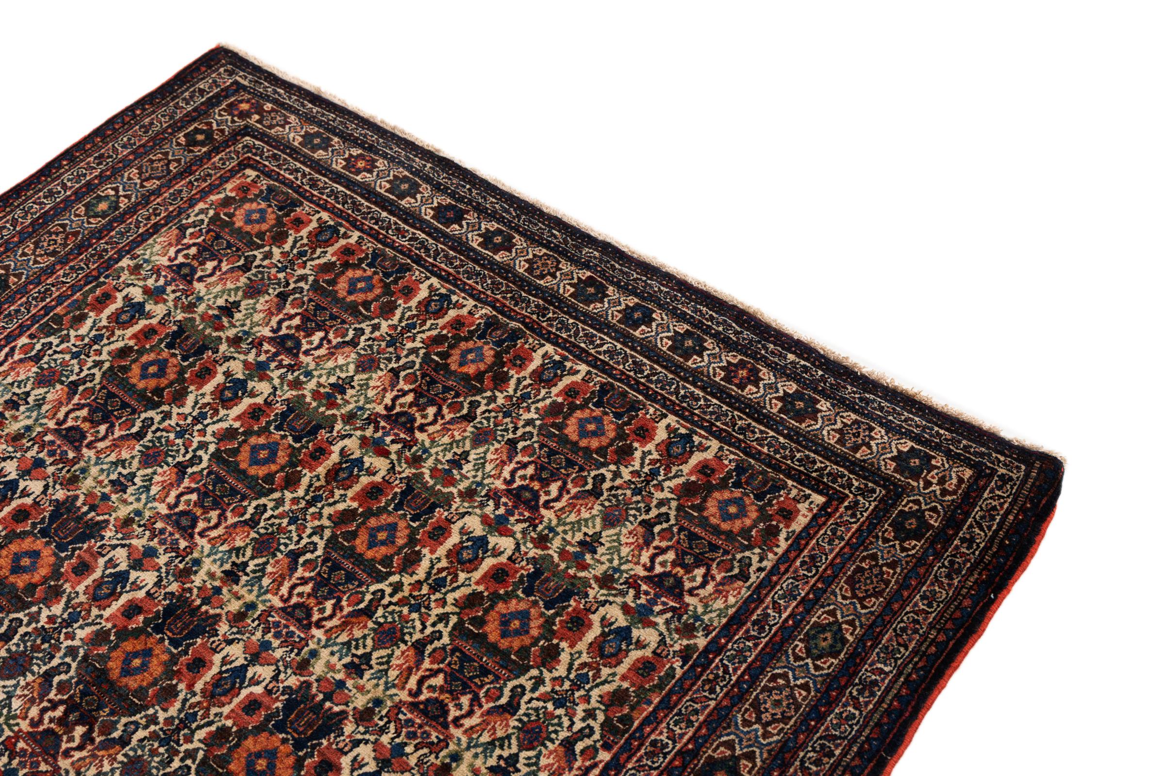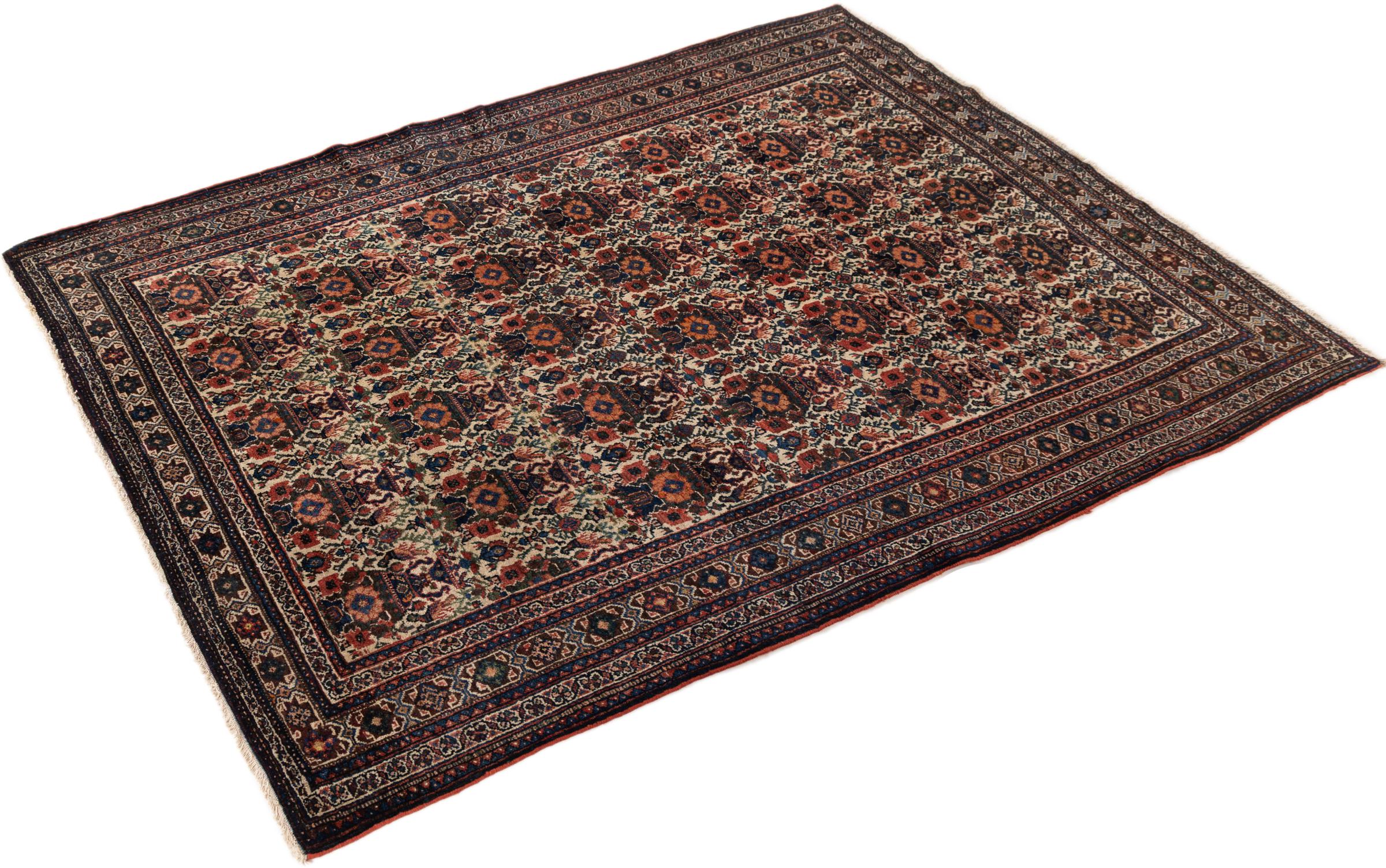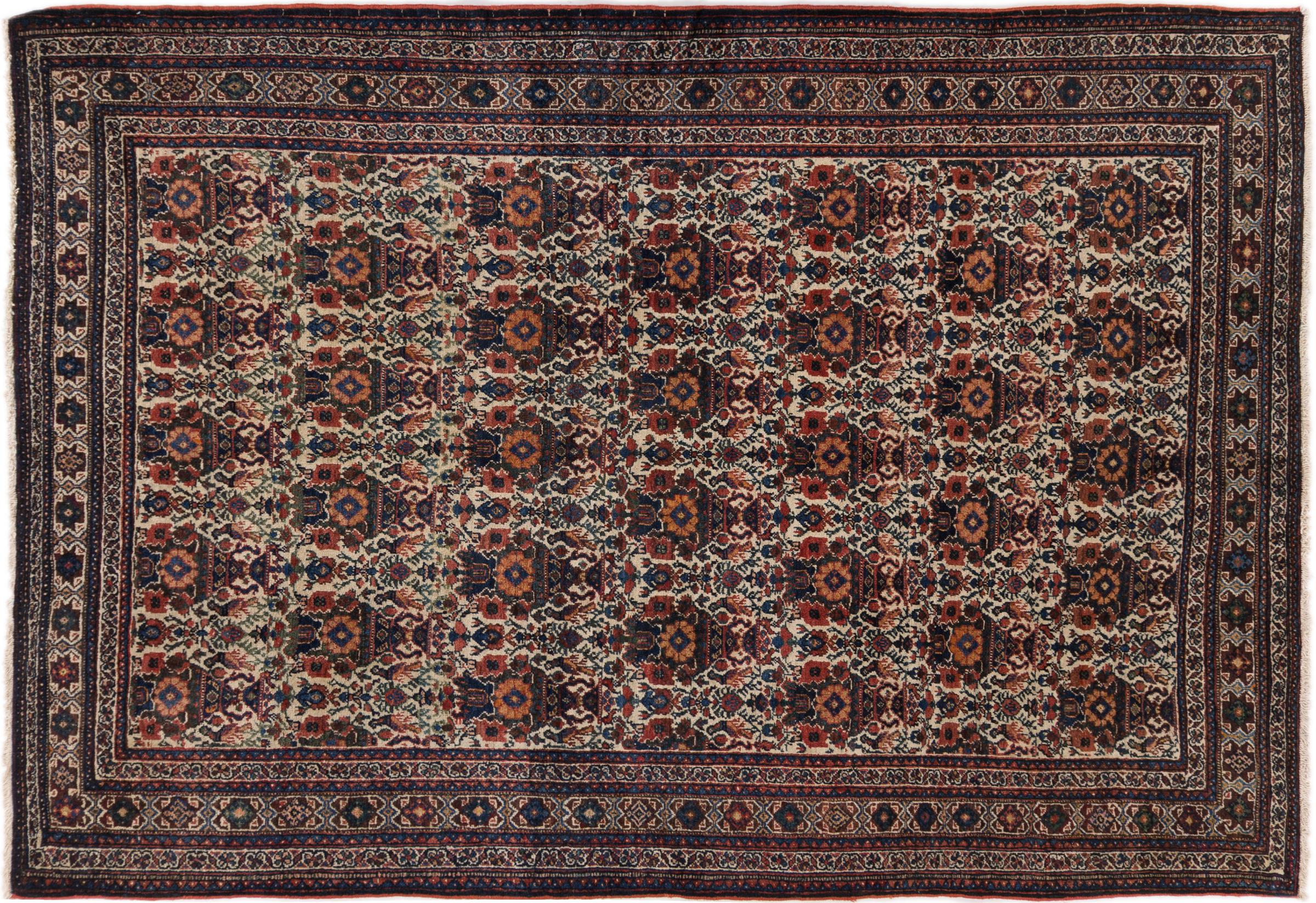 This rug belongs to village and nomadic rugs from Iran, formerly Persia. This type of rug is knotted by hand in smaller towns and villages in old tradition. Even nomads still knot Persian rugs in the open air. The rugs are knotted without a draft and completely from the mind. They are characterized by classical ornaments, which are arranged in straight and geometrical patterns. Thanks to their cultural-traditional origin, these rugs have a unique character that embodies ancient Persia.
