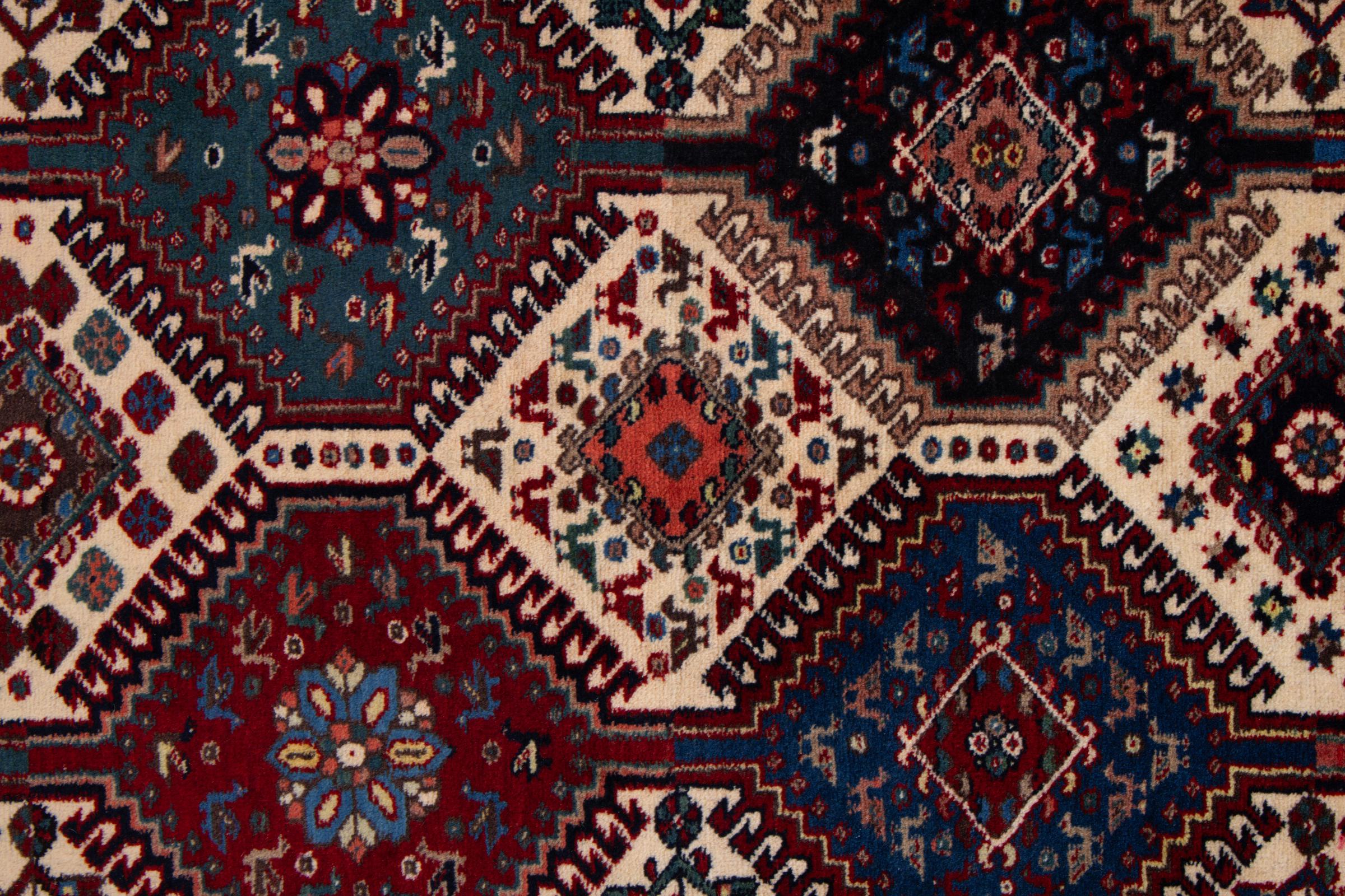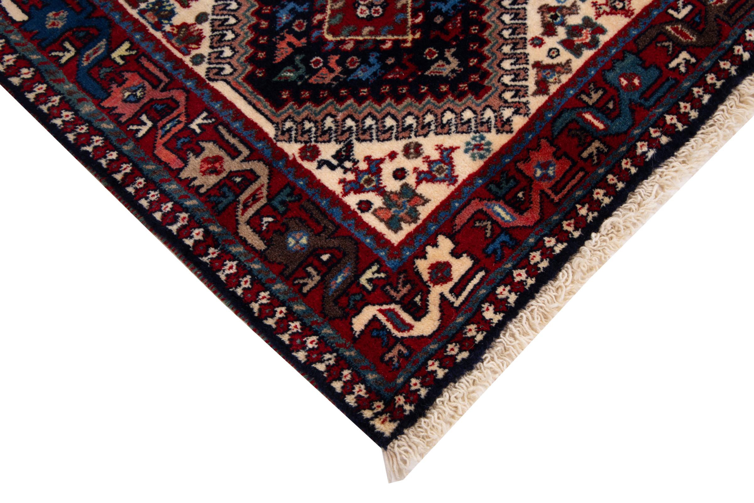 This rug belongs to village and nomadic rugs from Iran, formerly Persia. This type of rug is knotted by hand in smaller towns and villages in old tradition. Even nomads still knot Persian rugs in the open air. The rugs are knotted without a draft and completely from the mind. They are characterized by classical ornaments, which are arranged in straight and geometrical patterns. Thanks to their cultural-traditional origin, these rugs have a unique character that embodies ancient Persia.