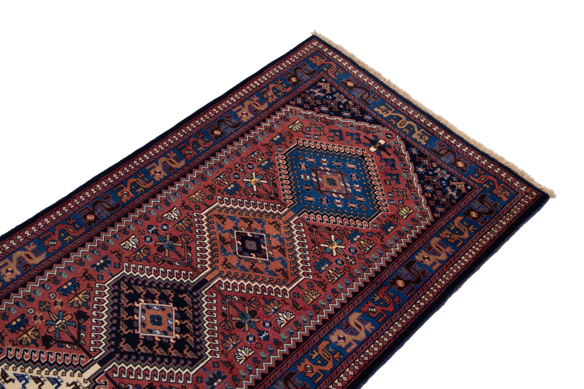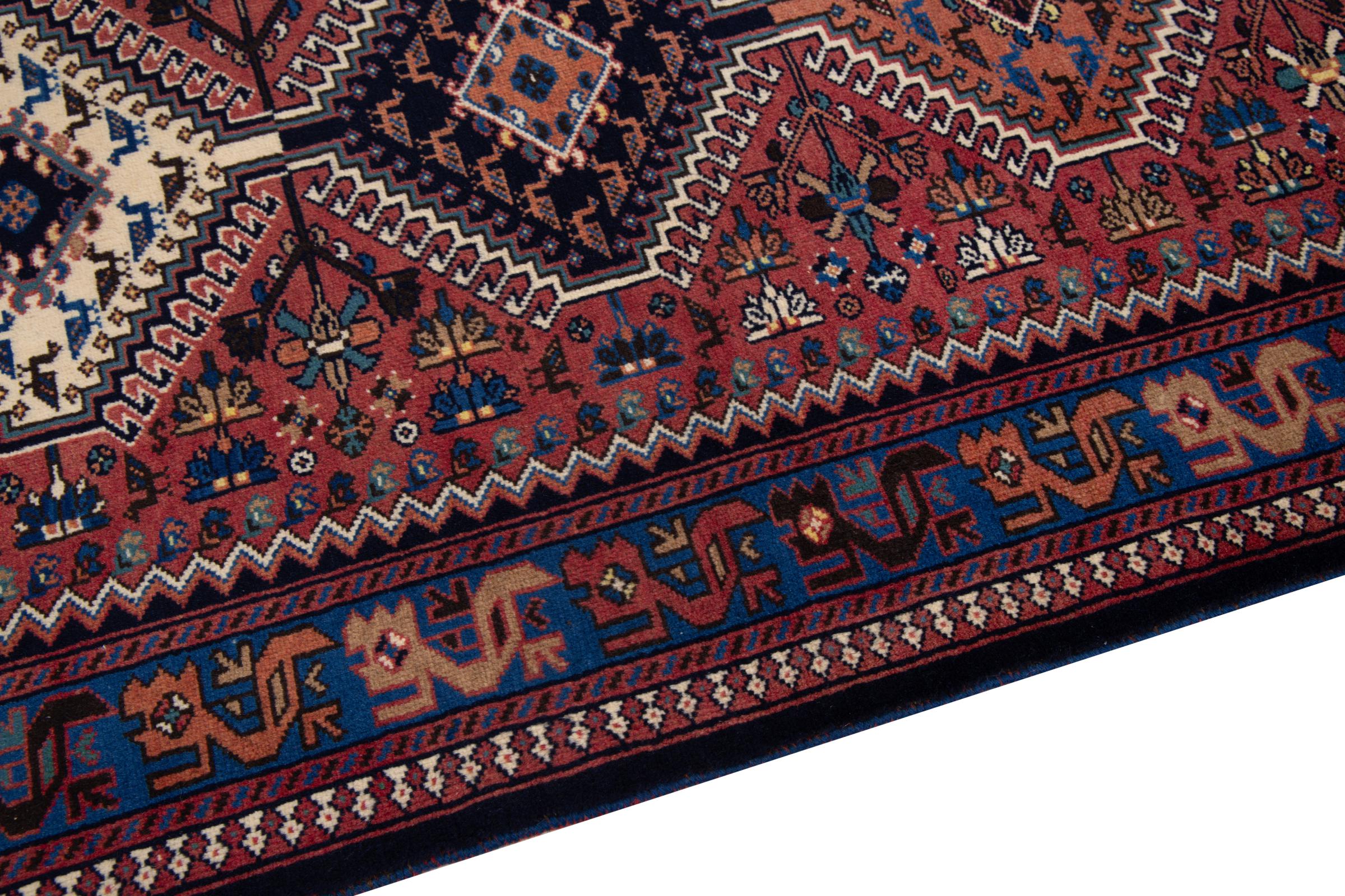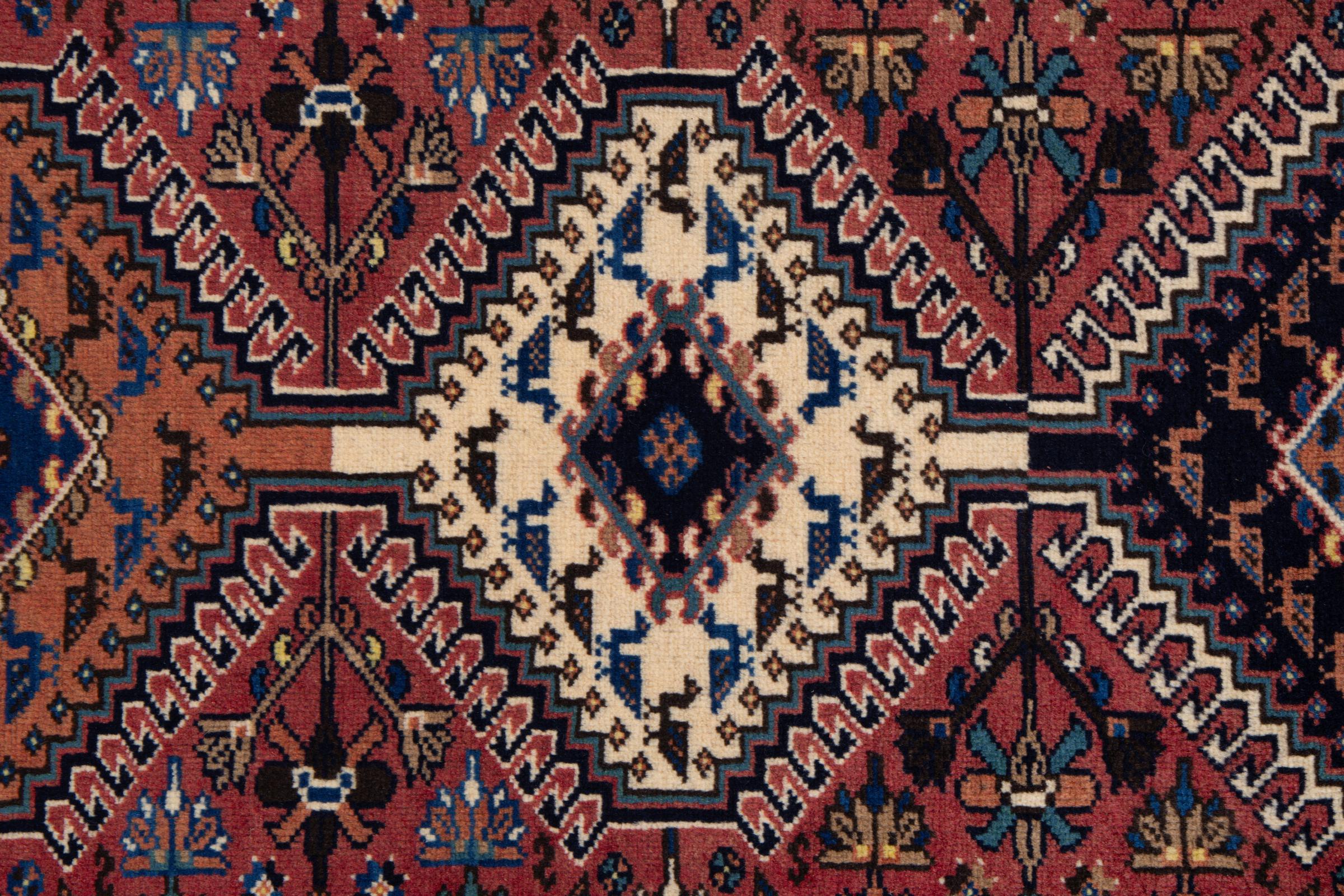 This rug belongs to village and nomadic rugs from Iran, formerly Persia. This type of rug is knotted by hand in smaller towns and villages in old tradition. Even nomads still knot Persian rugs in the open air. The rugs are knotted without a draft and completely from the mind. They are characterized by classical ornaments, which are arranged in straight and geometrical patterns. Thanks to their cultural-traditional origin, these rugs have a unique character that embodies ancient Persia.