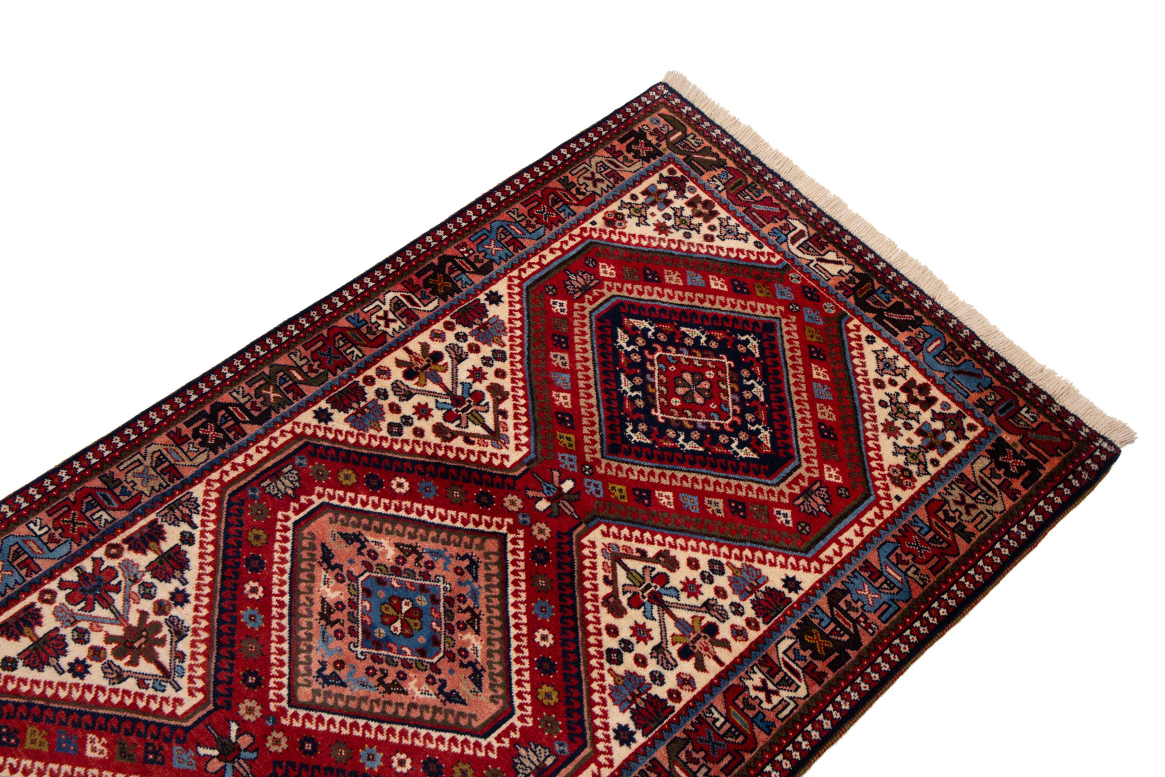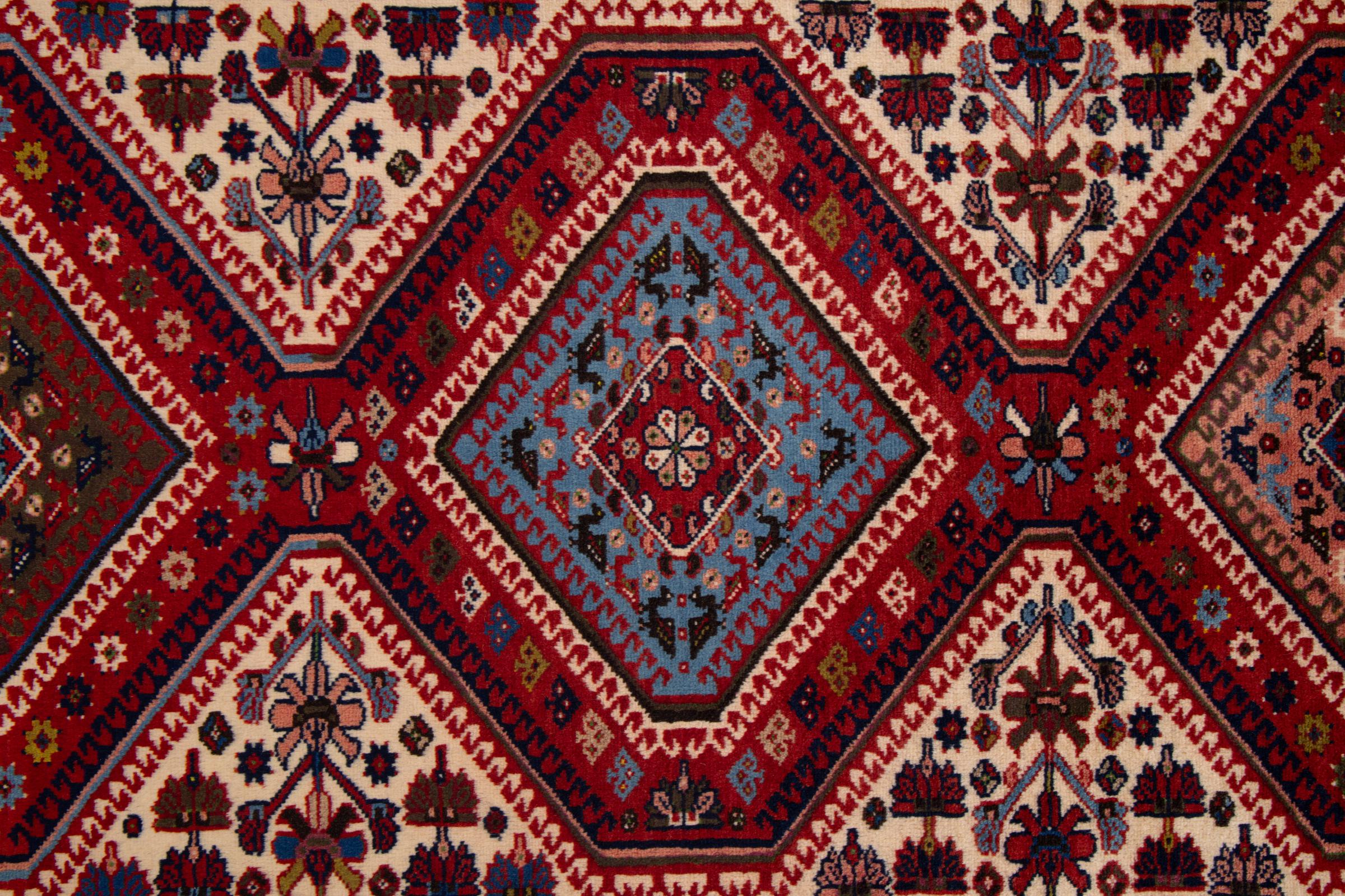 This rug belongs to village and nomadic rugs from Iran, formerly Persia. This type of rug is knotted by hand in smaller towns and villages in old tradition. Even nomads still knot Persian rugs in the open air. The rugs are knotted without a draft and completely from the mind. They are characterized by classical ornaments, which are arranged in straight and geometrical patterns. Thanks to their cultural-traditional origin, these rugs have a unique character that embodies ancient Persia.