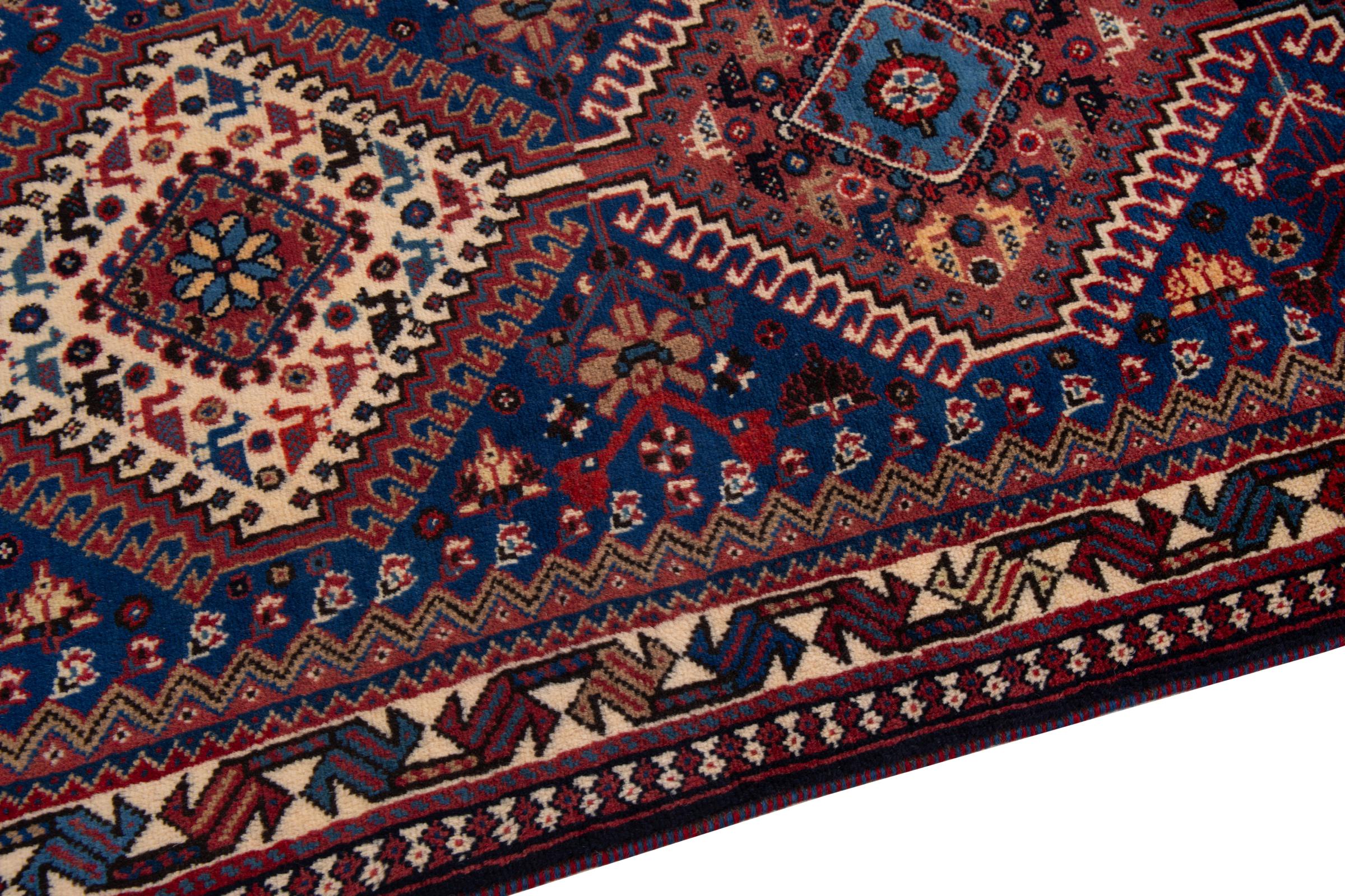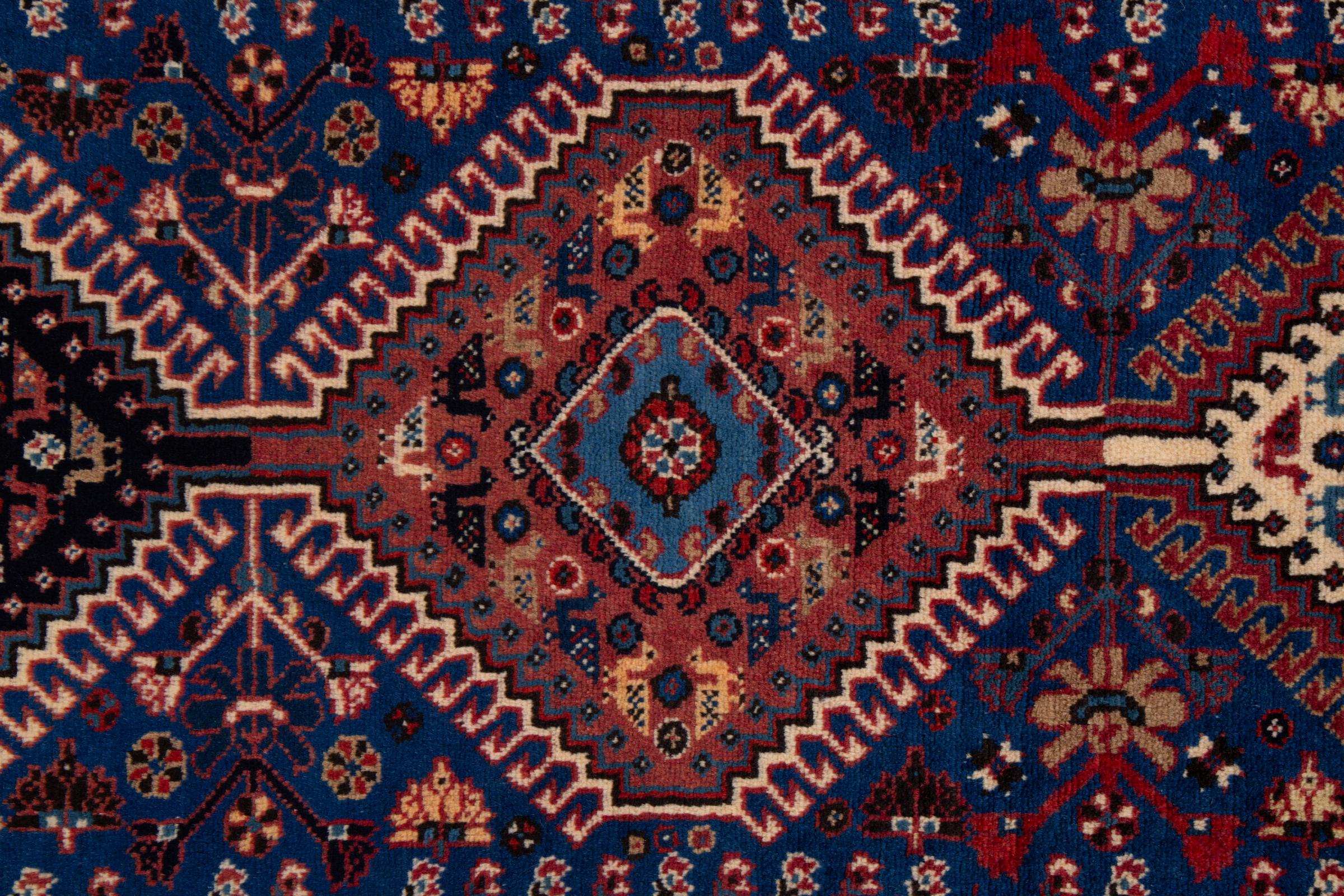 This rug belongs to village and nomadic rugs from Iran, formerly Persia. This type of rug is knotted by hand in smaller towns and villages in old tradition. Even nomads still knot Persian rugs in the open air. The rugs are knotted without a draft and completely from the mind. They are characterized by classical ornaments, which are arranged in straight and geometrical patterns. Thanks to their cultural-traditional origin, these rugs have a unique character that embodies ancient Persia.