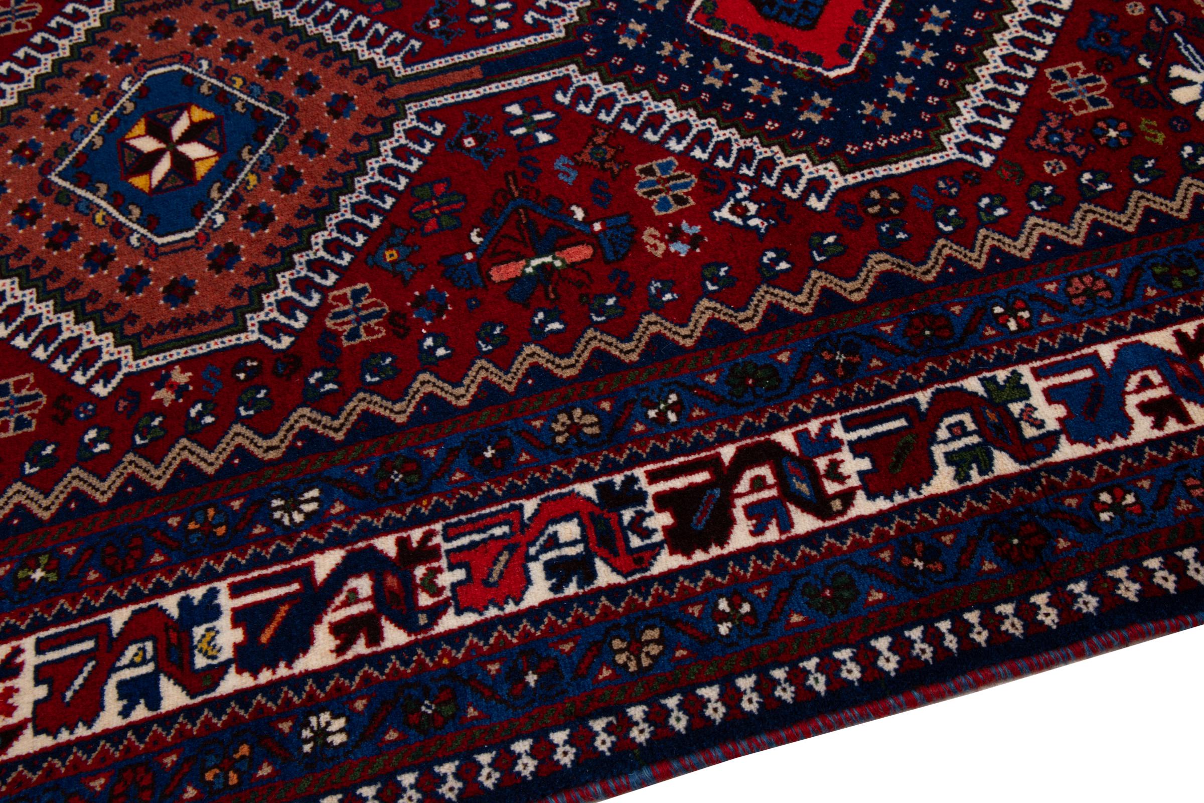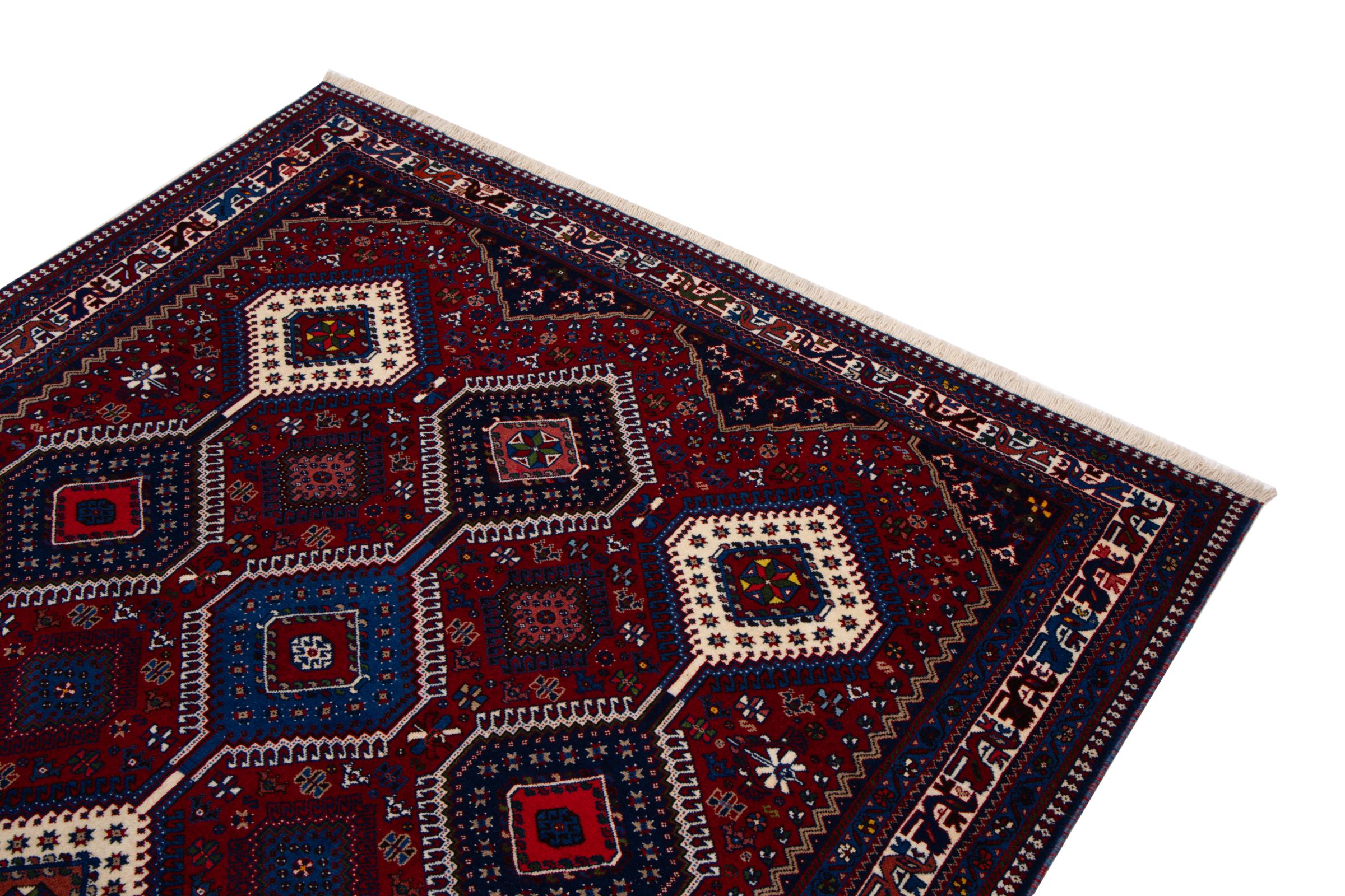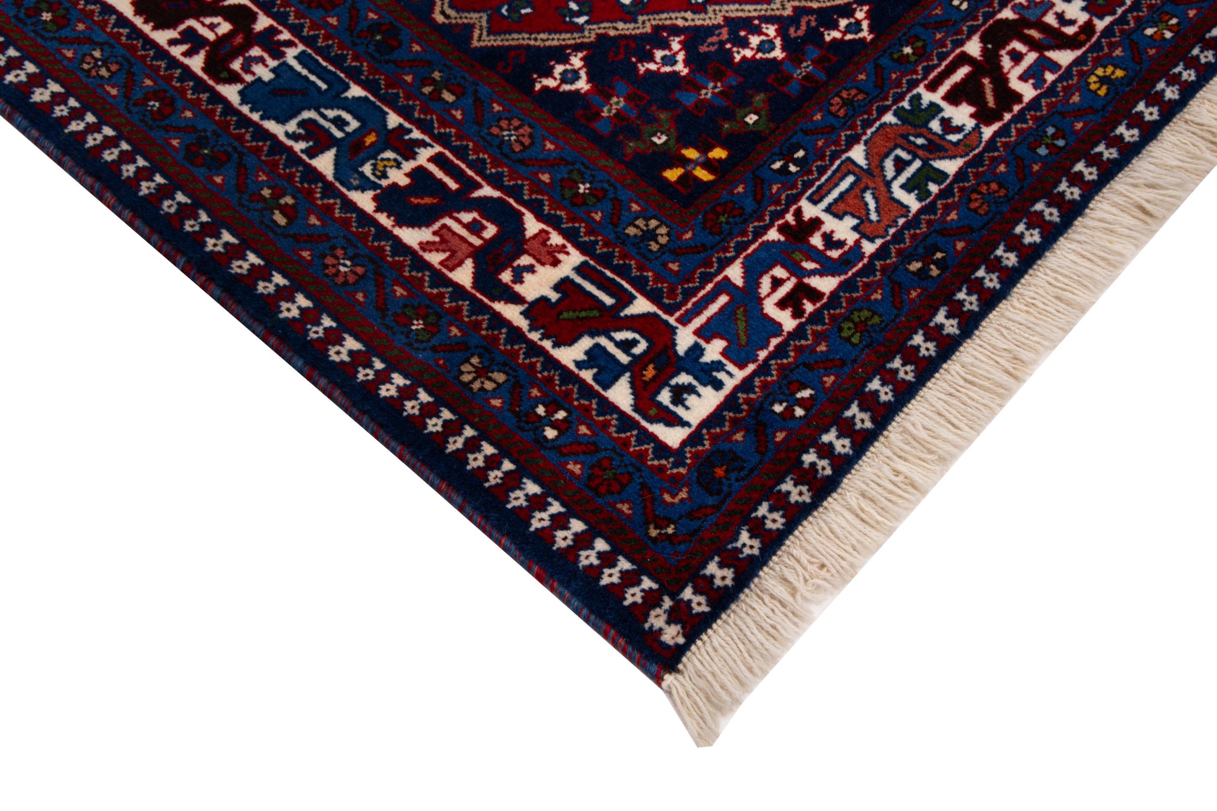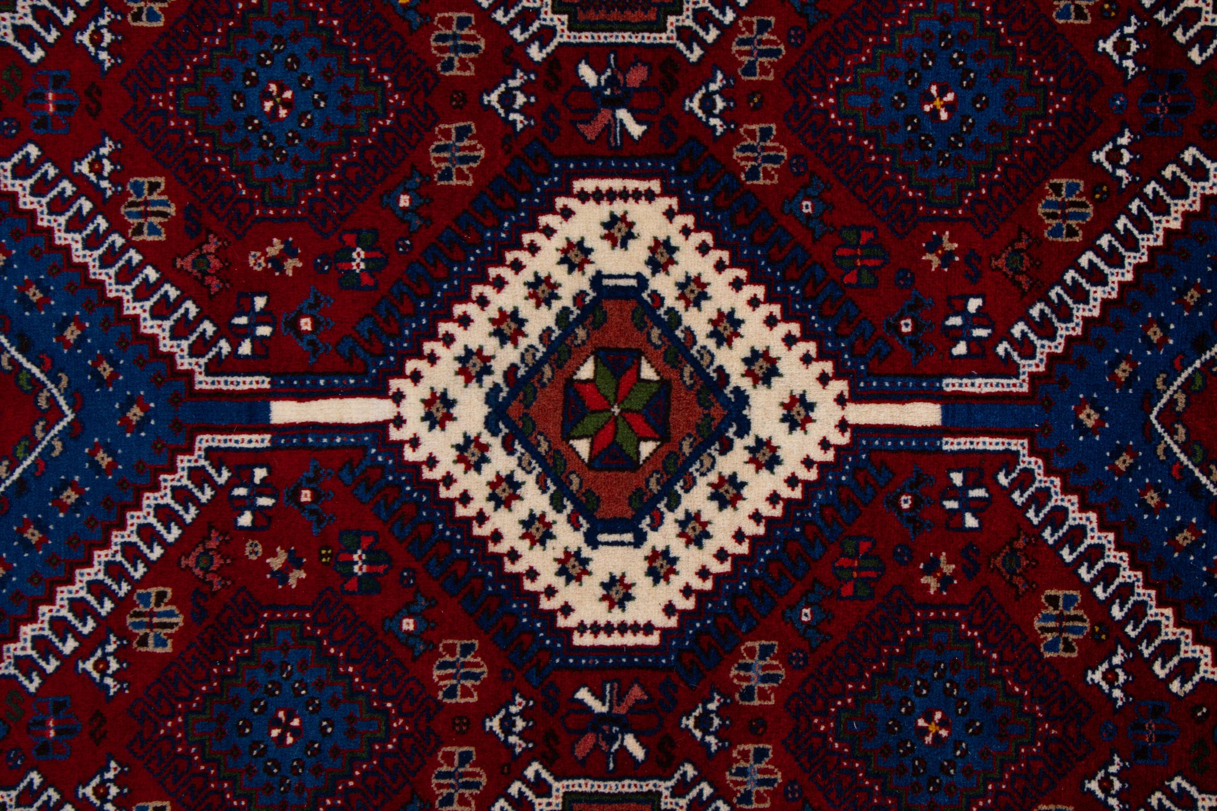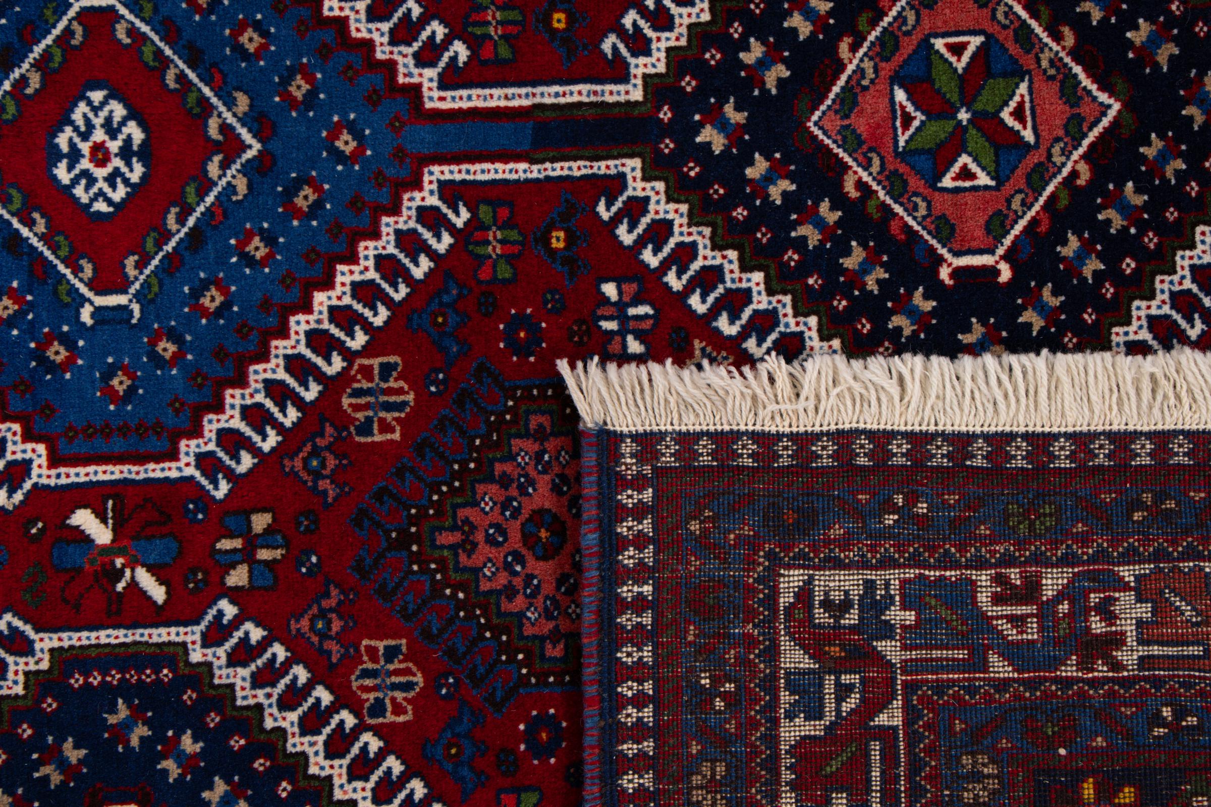 This rug belongs to village and nomadic rugs from Iran, formerly Persia. This type of rug is knotted by hand in smaller towns and villages in old tradition. Even nomads still knot Persian rugs in the open air. The rugs are knotted without a draft and completely from the mind. They are characterized by classical ornaments, which are arranged in straight and geometrical patterns. Thanks to their cultural-traditional origin, these rugs have a unique character that embodies ancient Persia.