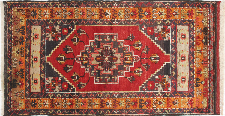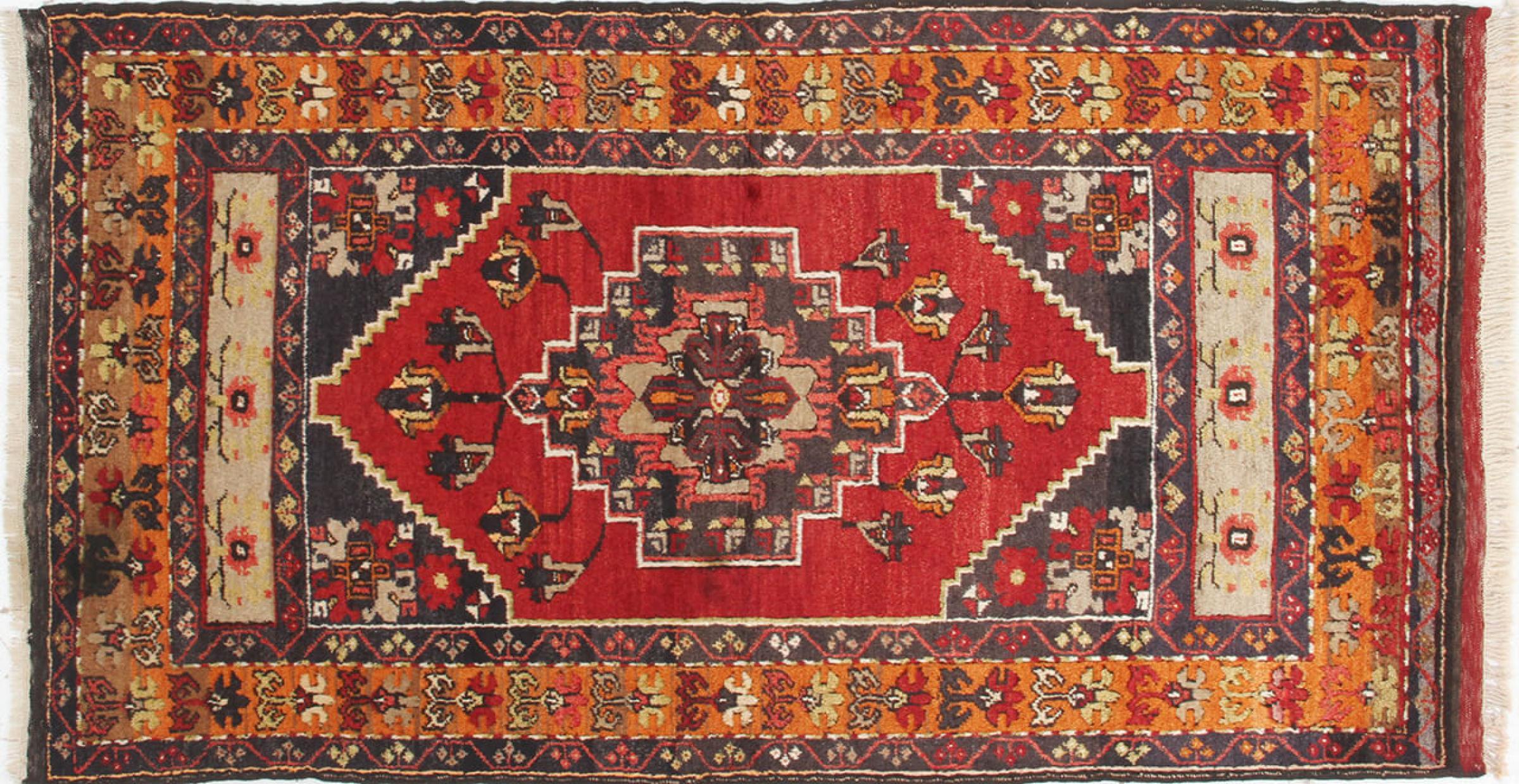 Carpet ID: 310067004012947 Size: 196x114 cm Thickness: ap. 5 mm Knot density: 200 000 - 250 000 / m² Manufacturing: Knotted by hand Pile: Handspun wool Warp: Cotton Condition / Conservation Perfect Origin: Turkey Age: Antique, over 80 years Weight: ap. 8 kg In stock: Unique - Only 1 in stock