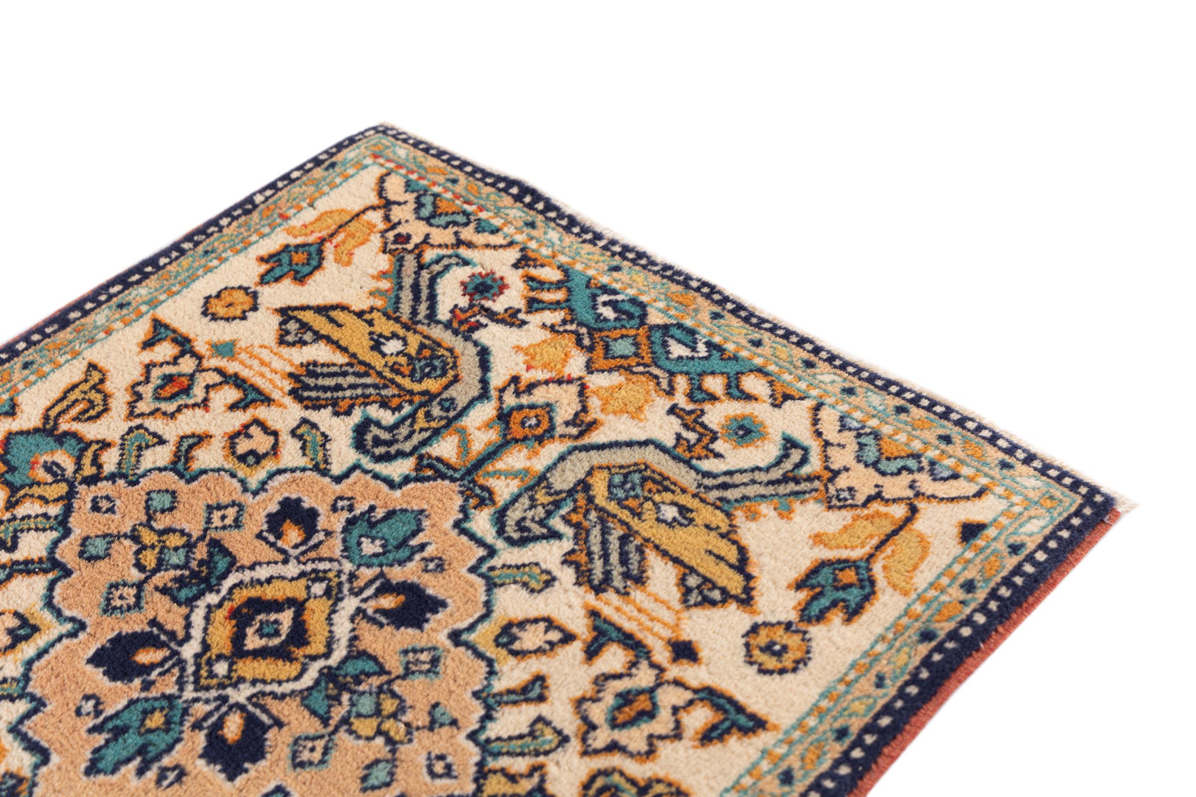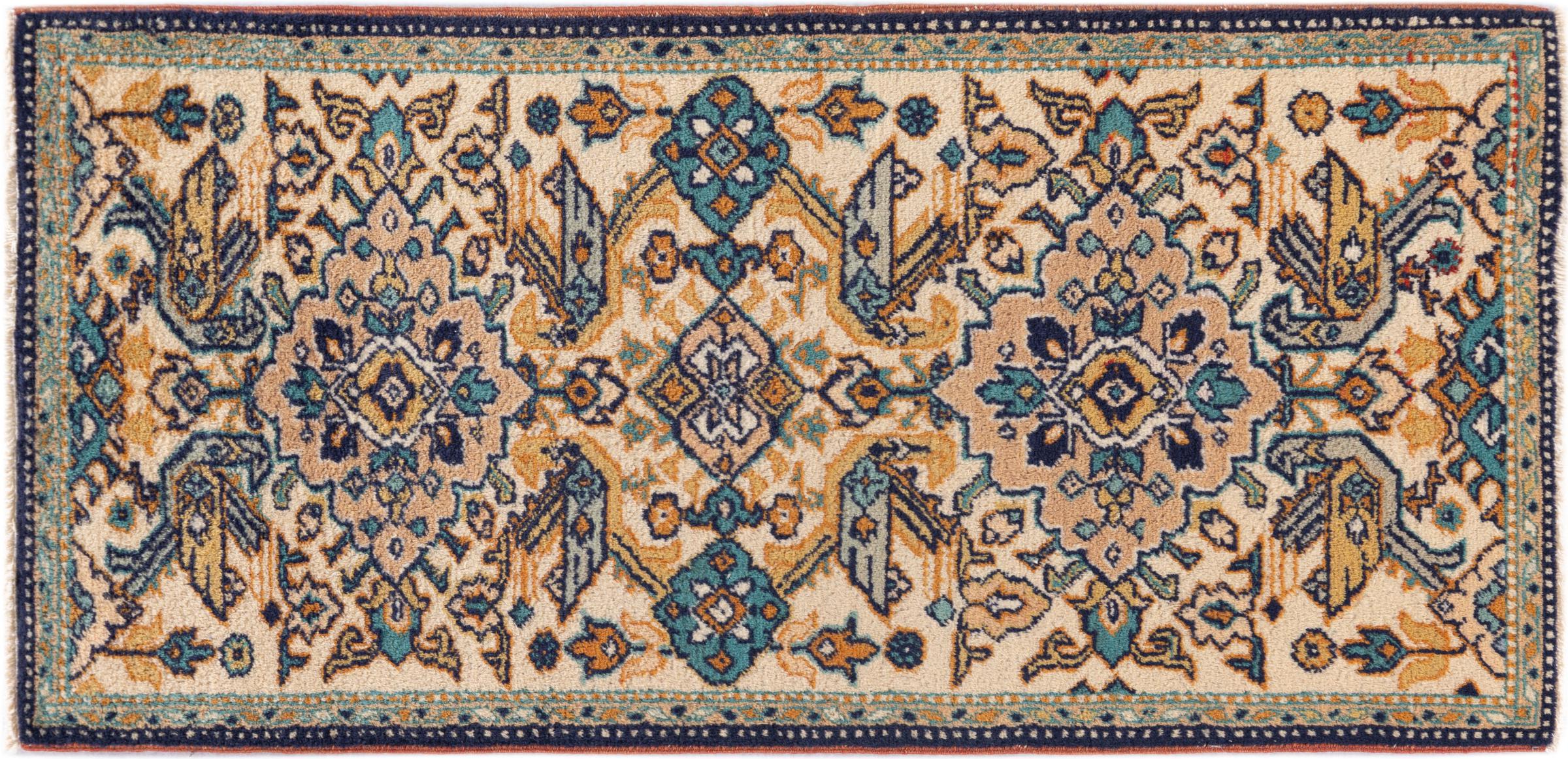 Carpet ID: 297904009097 Size: 125x60 cm Thickness: ap. 10 mm Knot density: 128 000 - 160 000 / m² Manufacturing: Knotted by hand Pile: Handspun wool Warp: Cotton Origin: Persia Age: New Weight: ap. 3 kg In stock: Unique - Only 1 in stock