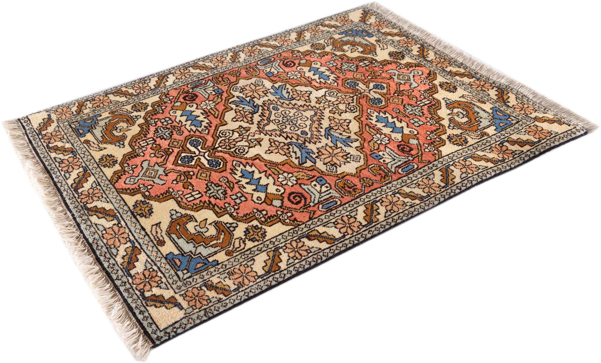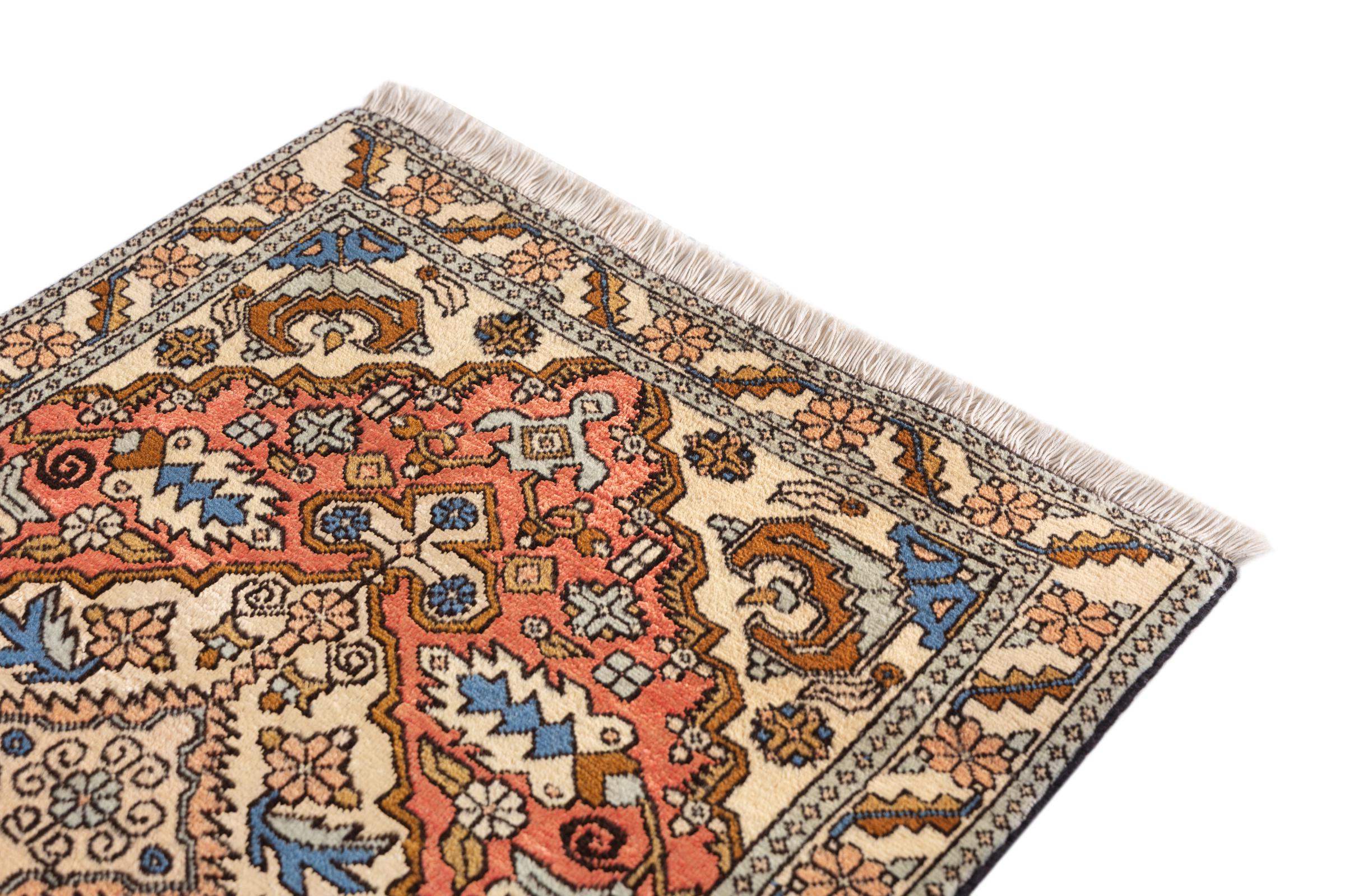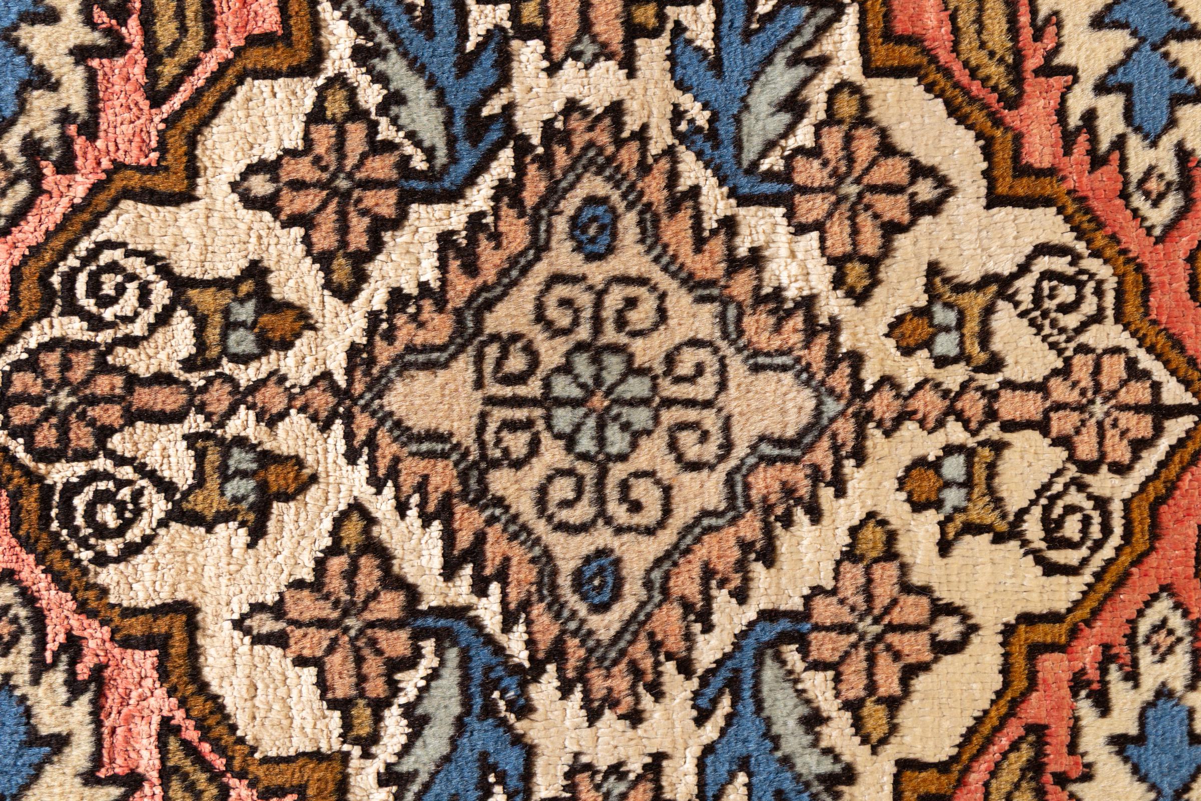 This Heriz carpet is a beautiful example of Persian carpet craftsmanship. Its rustic design is a testament to its durability. It was hand-knotted in the city of Heriz, which is located near Tabriz in north-west Iran. Anyone looking for a Persian rug that will give pleasure for a long time and is highly modern will love this Heriz. The ornaments of Heriz rugs are extremely popular today and are seen as very modern. You will never give up a rug like this again.