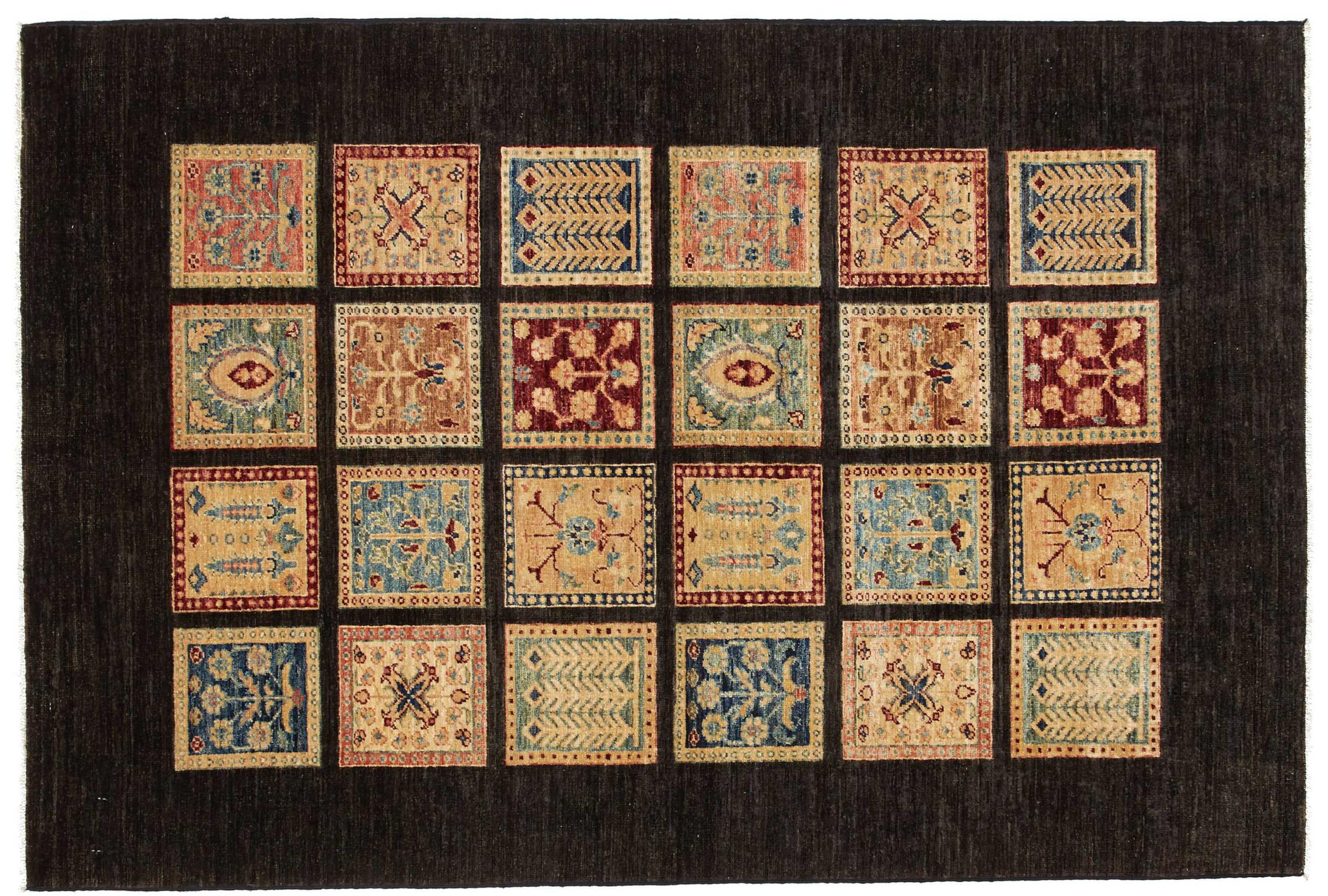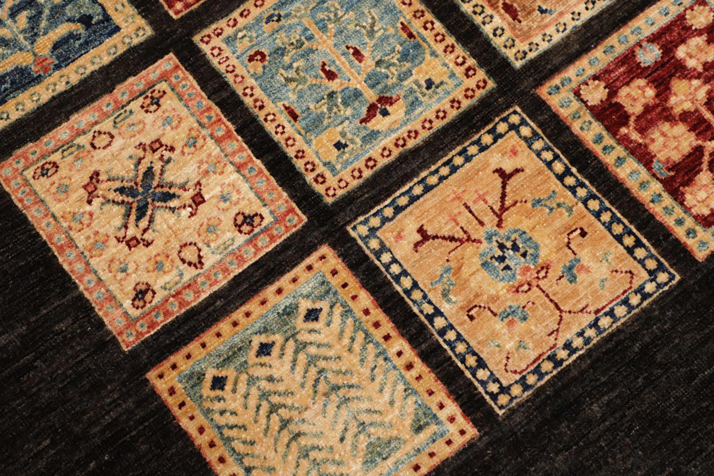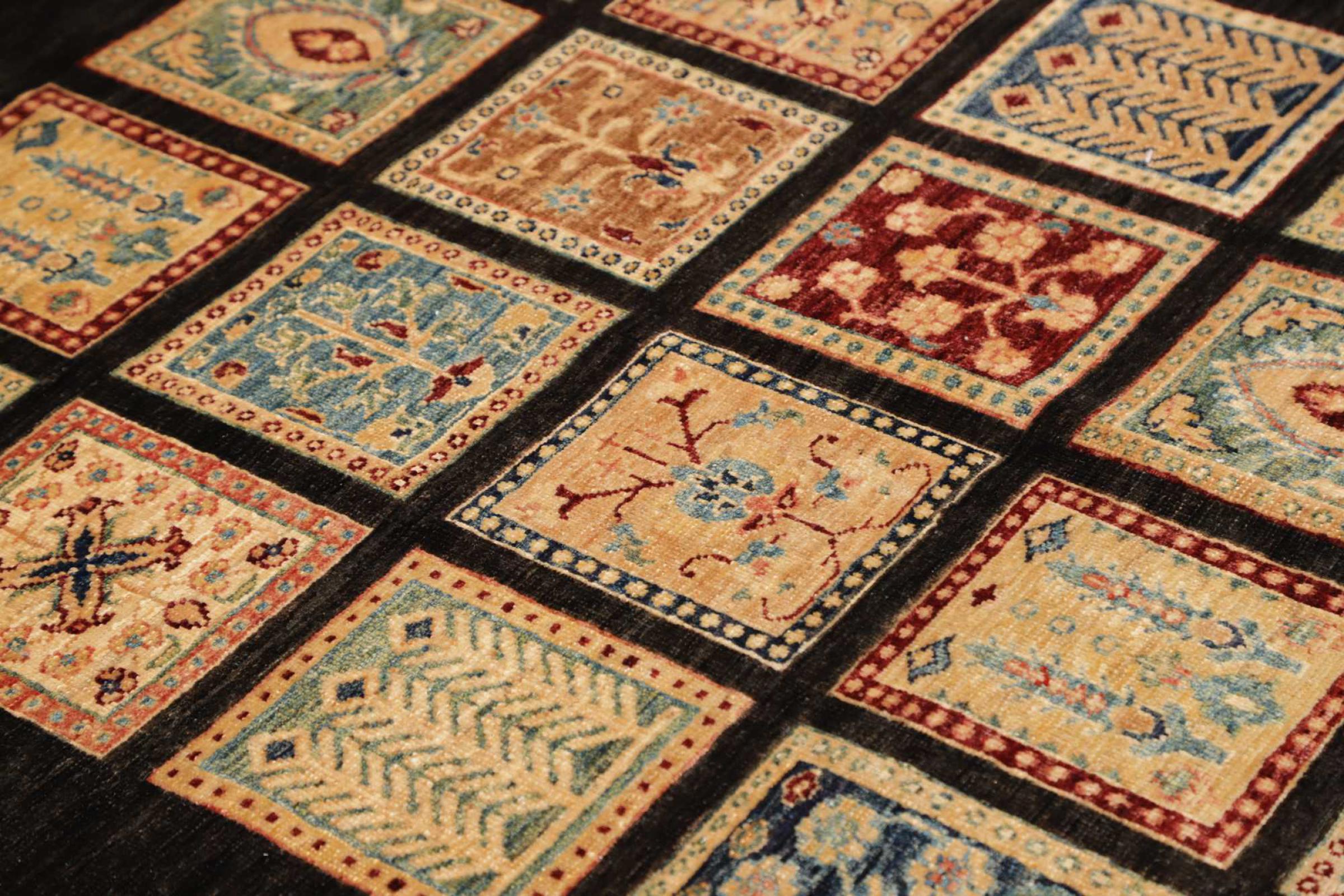 A large part of Pakistani rug production takes place in and around the cities of Lahore and Karachi. Many of the rug knotters of that time fled to Pakistan during the war with India and settled there. Today, especially hand-knotted Pakistan Bukhara rugs are well-known. Similar to the Afghan oriental rugs, Pakistani rugs are also made in dark colours and mostly have shades of red. Even the well-known elephant foot pattern (repeating octagonal pattern) can be found on a Pakistani.