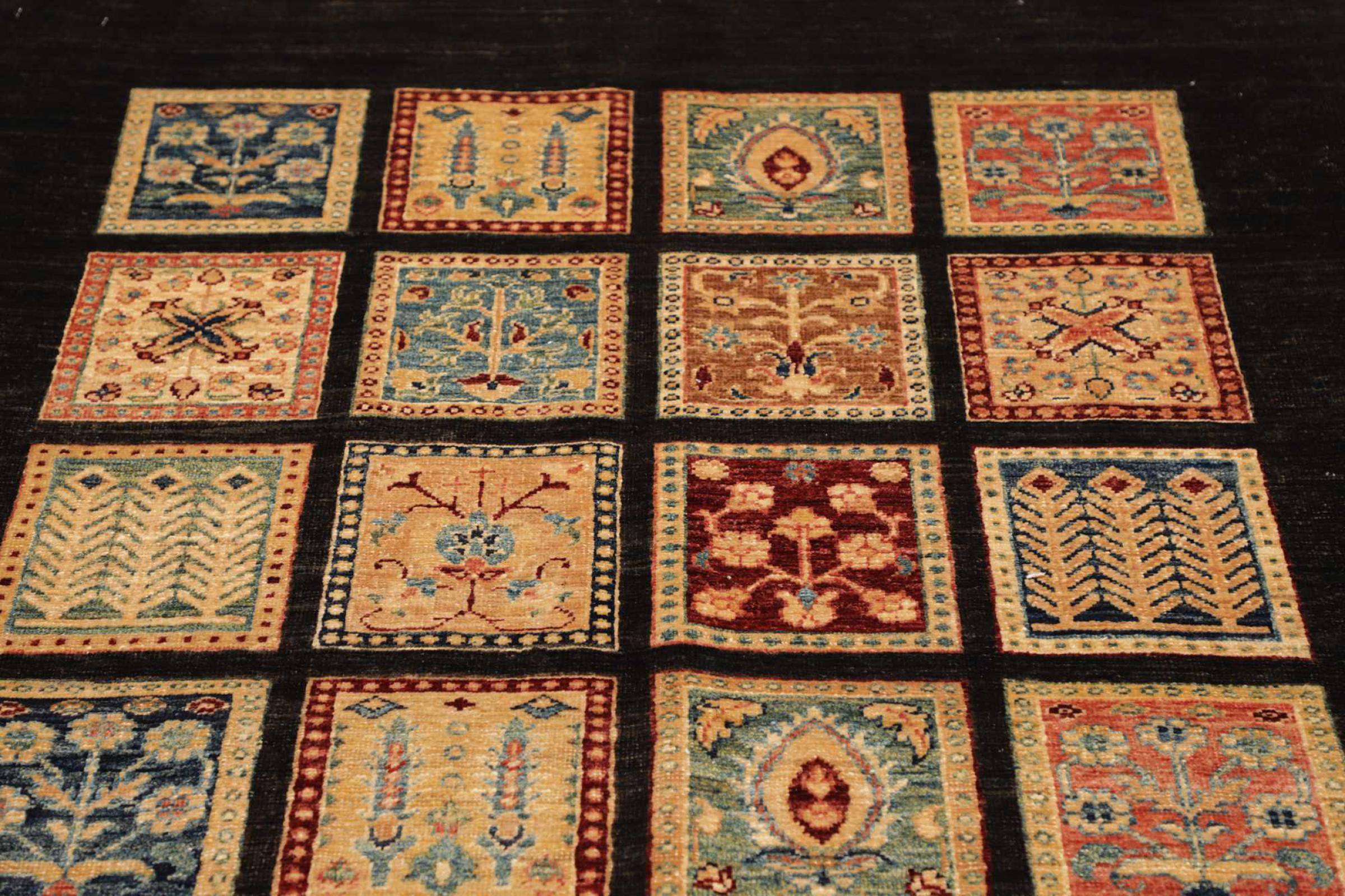 This Arijana Bakhtiari carpet brings nature into your home. The traditional garden design from Persian gardens inspires immediately. The traditional garden motifs have always been popular in the oriental culture and can be found on various Persian carpets. This oriental carpet was handmade in Pakistan from high quality sheep wool. Hand knotted quality is appreciated when you touch this soft handicraft.