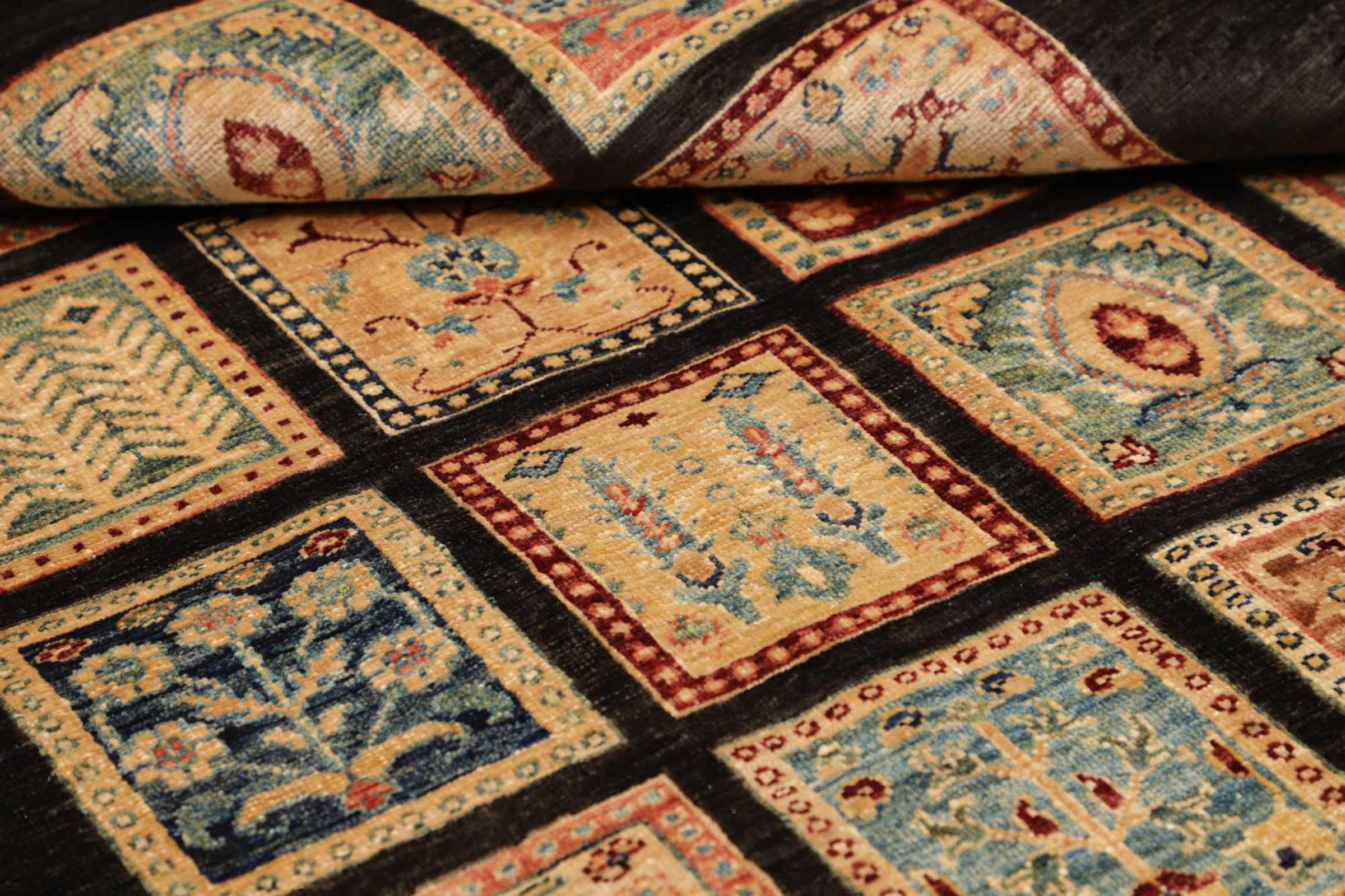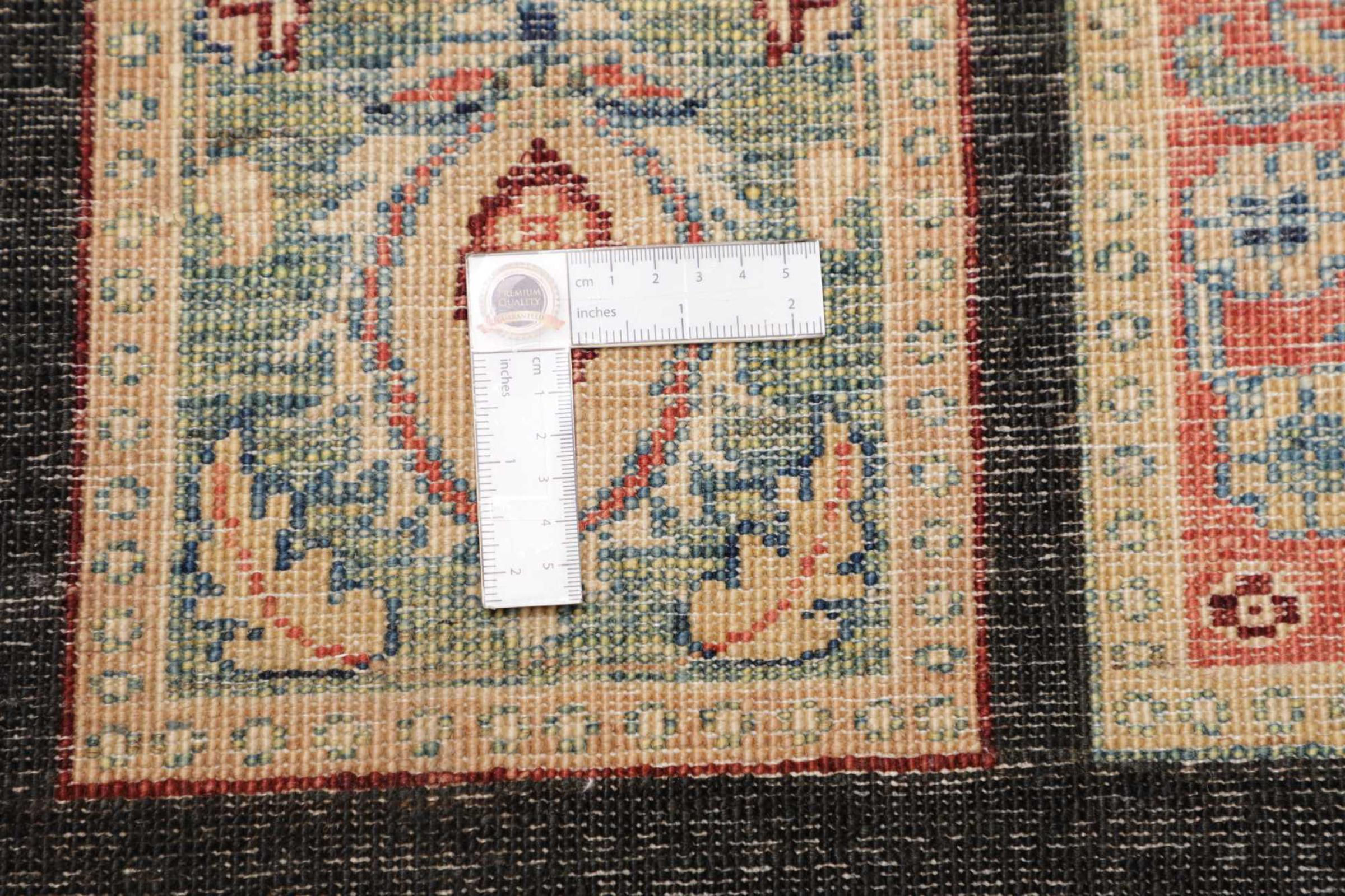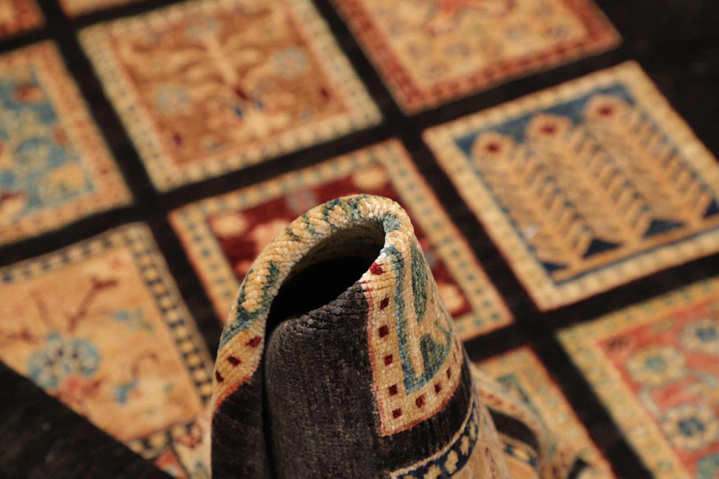 This rug is made of hand spun sheep wool of the highest quality. Especially in Iran (former Persia), Afghanistan and Pakistan wool is still spun by hand before the actual knotting of the rug begins. Wool has proven itself as a natural and extremely hard-wearing material over centuries. Among other things, it has dirt-repellent and heat-insulating properties. At the same time, wool is incomparably soft and has a natural shine.