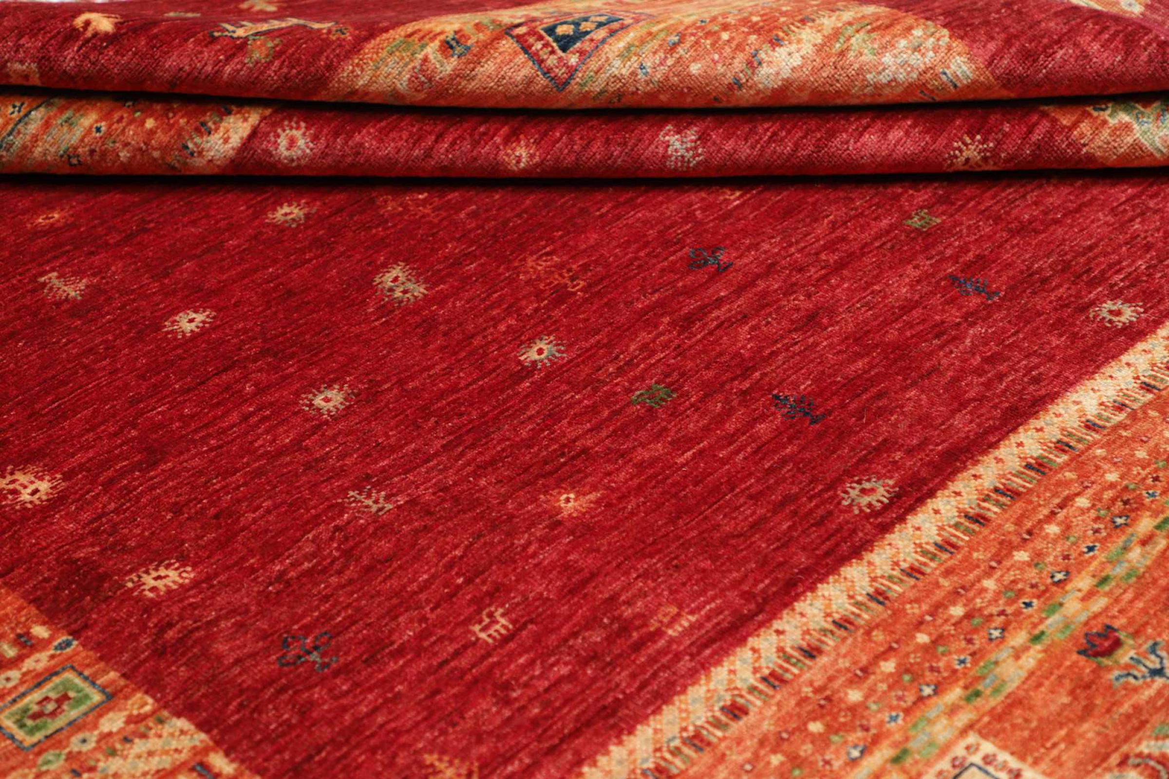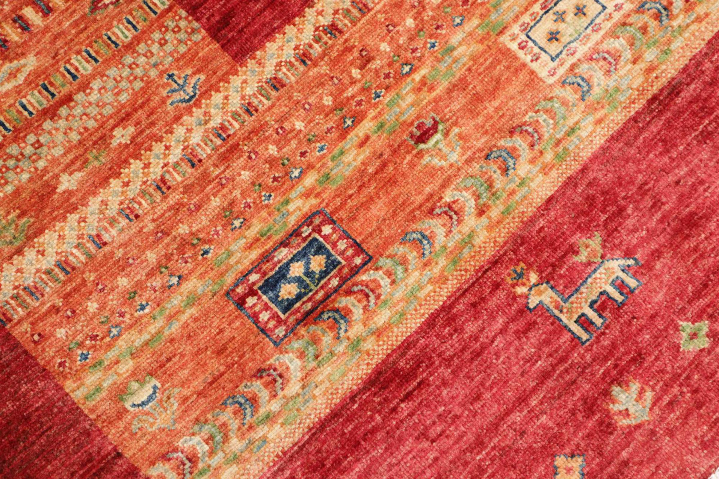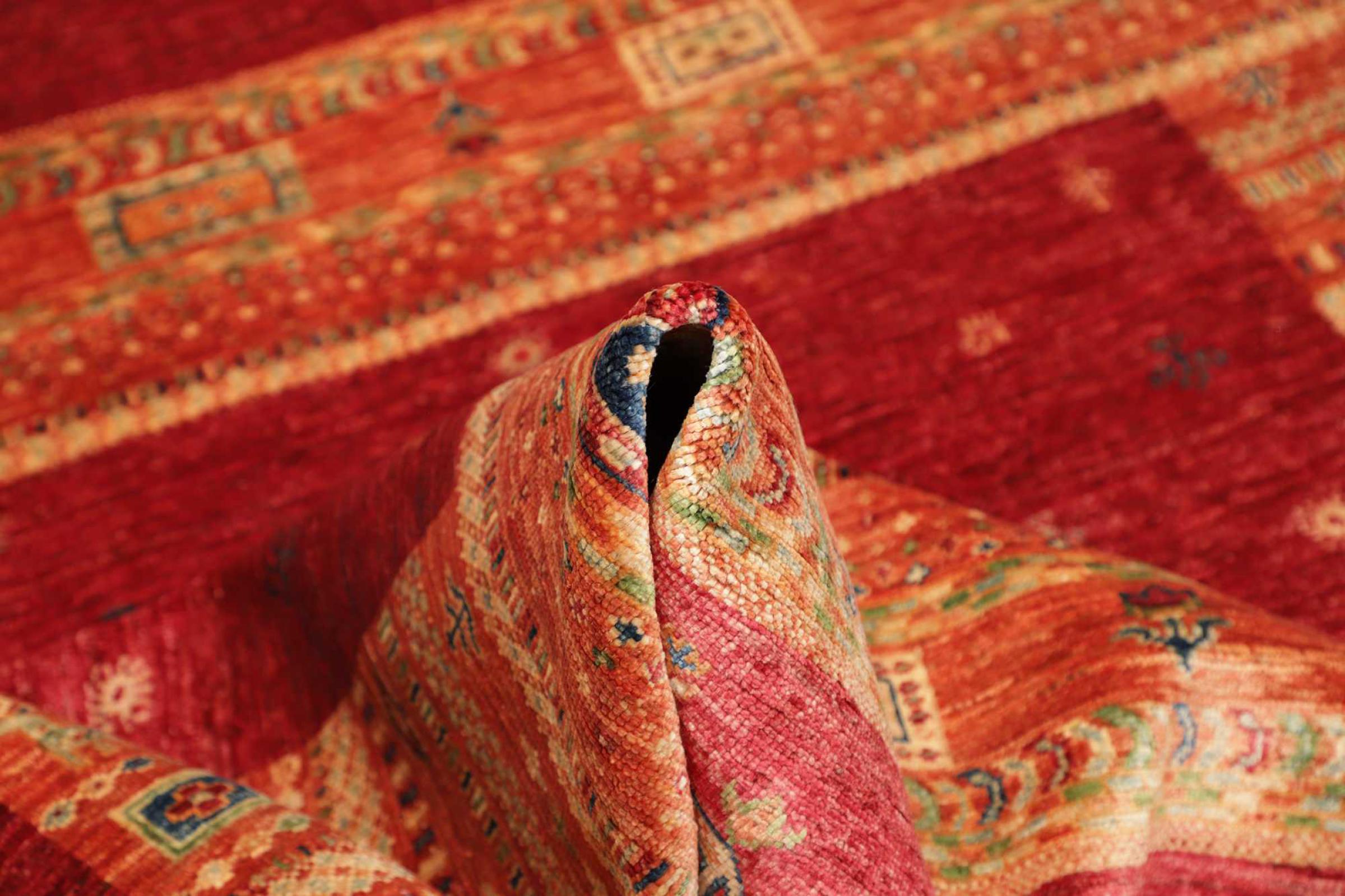 This vibrant oriental rug was hand-knotted in Pakistan - in one of the most far-reaching knotting cultures in the world. Here, the vibrant color spectrum of the Orient comes into its own. A rug like this brings joie de vivre at any time of year. The designer rug has its very own character, as it has only been hand-knotted once over a period of months.
