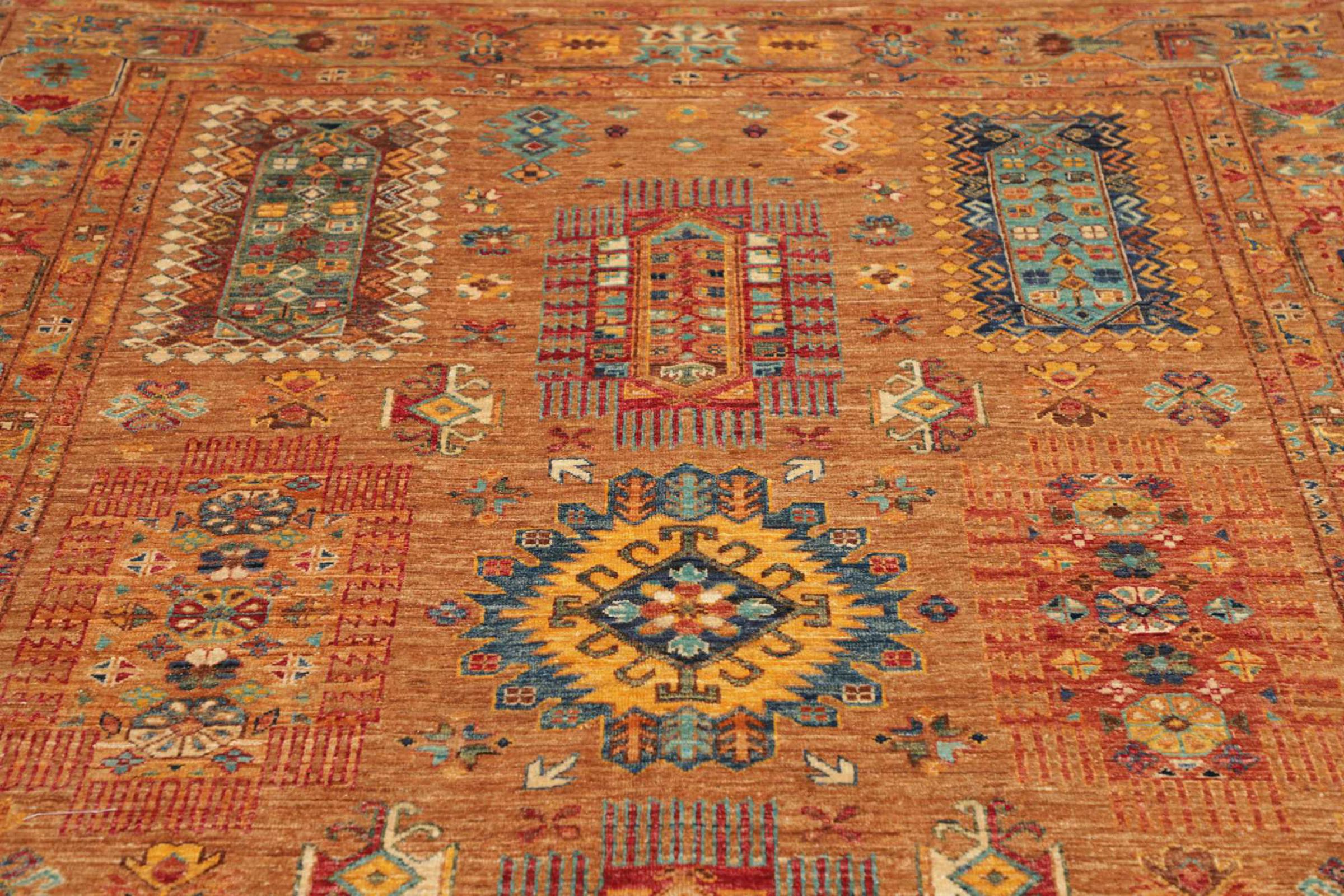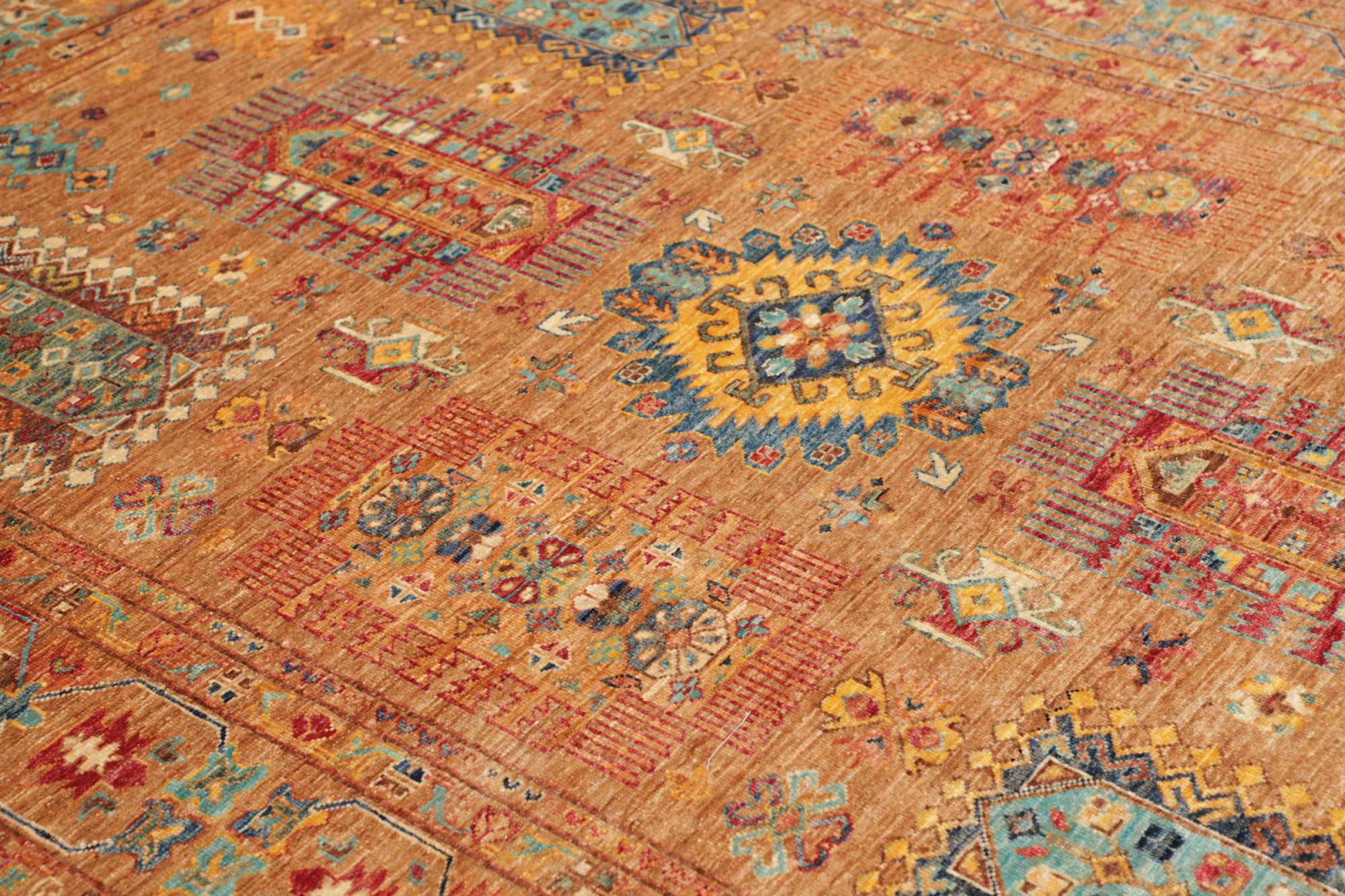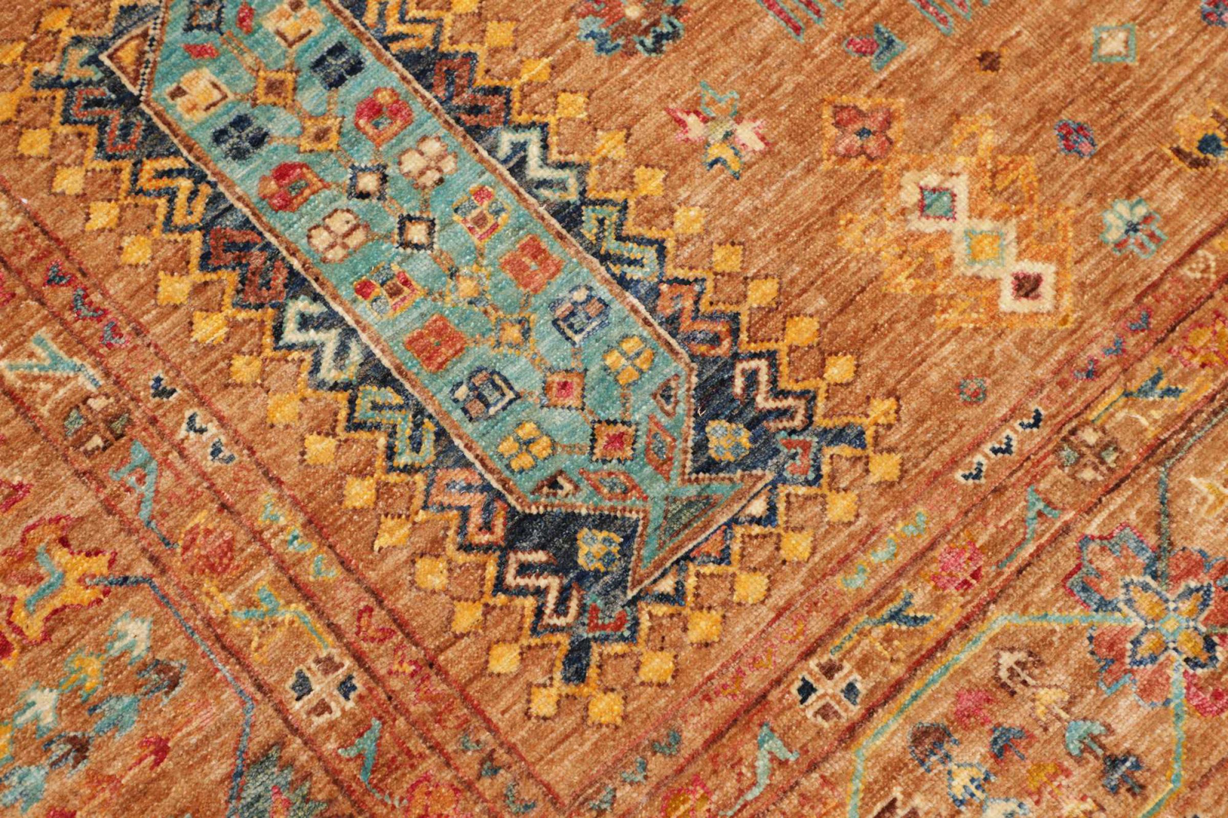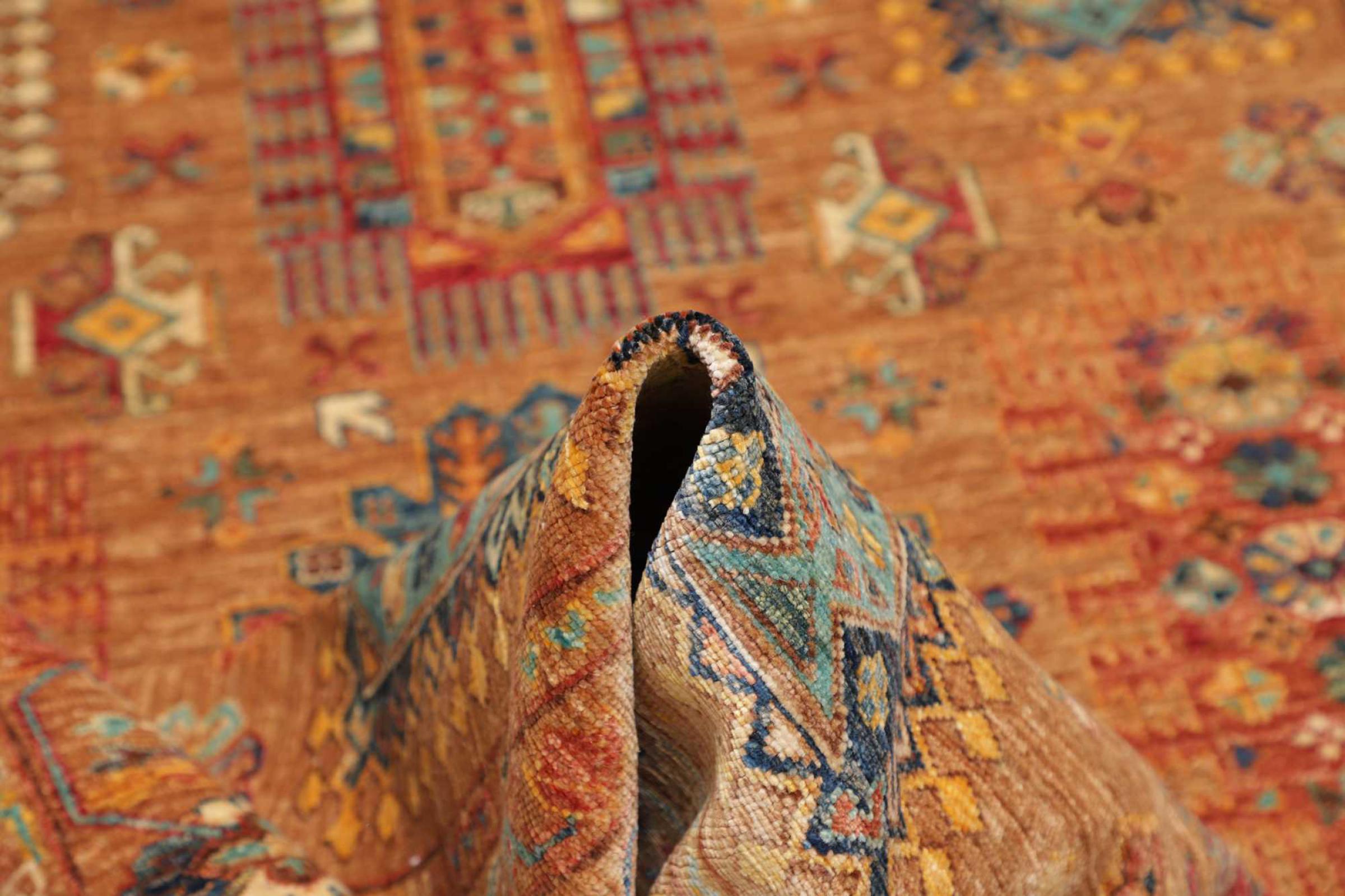This rug is made of hand spun sheep wool of the highest quality. Especially in Iran (former Persia), Afghanistan and Pakistan wool is still spun by hand before the actual knotting of the rug begins. Wool has proven itself as a natural and extremely hard-wearing material over centuries. Among other things, it has dirt-repellent and heat-insulating properties. At the same time, wool is incomparably soft and has a natural shine.