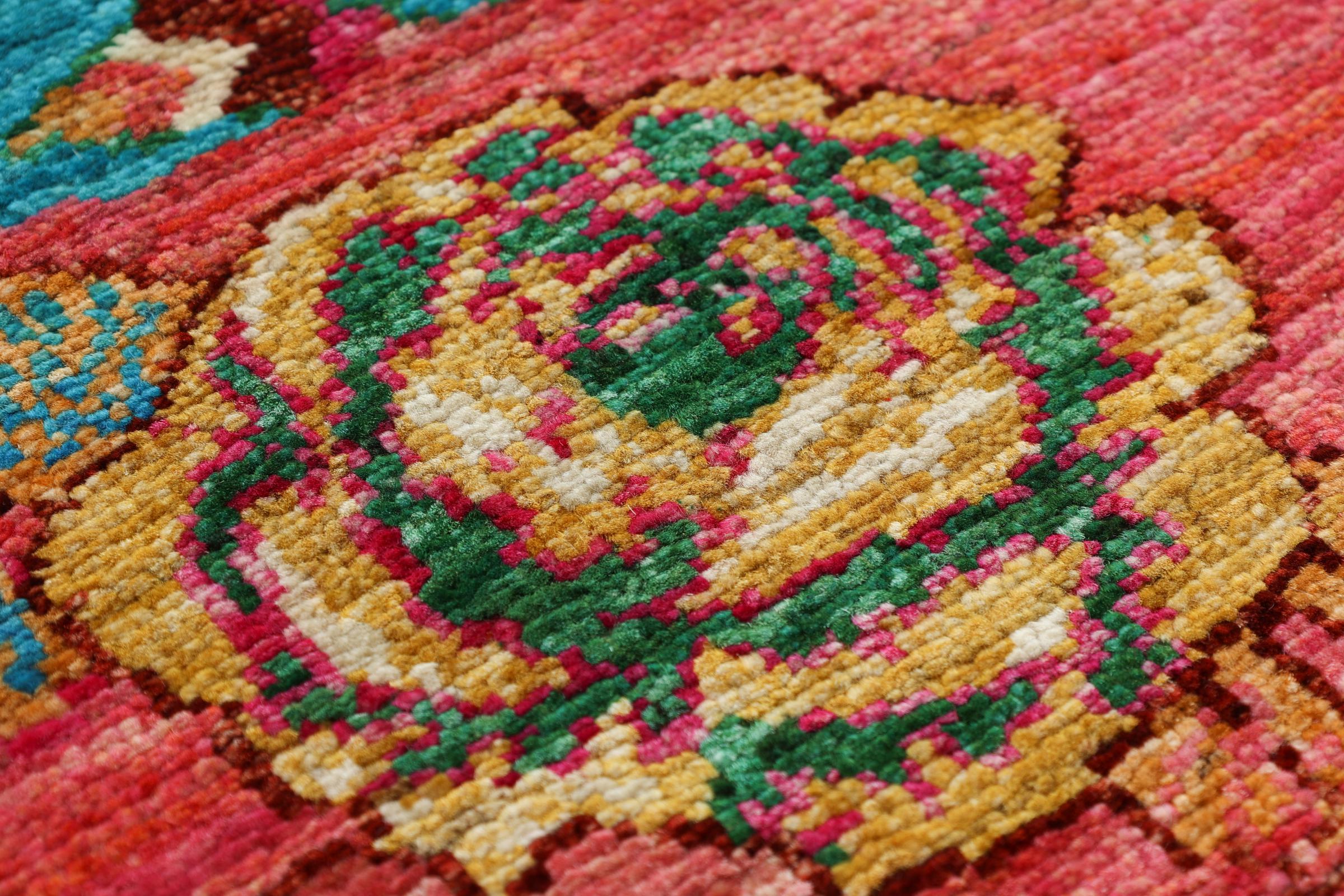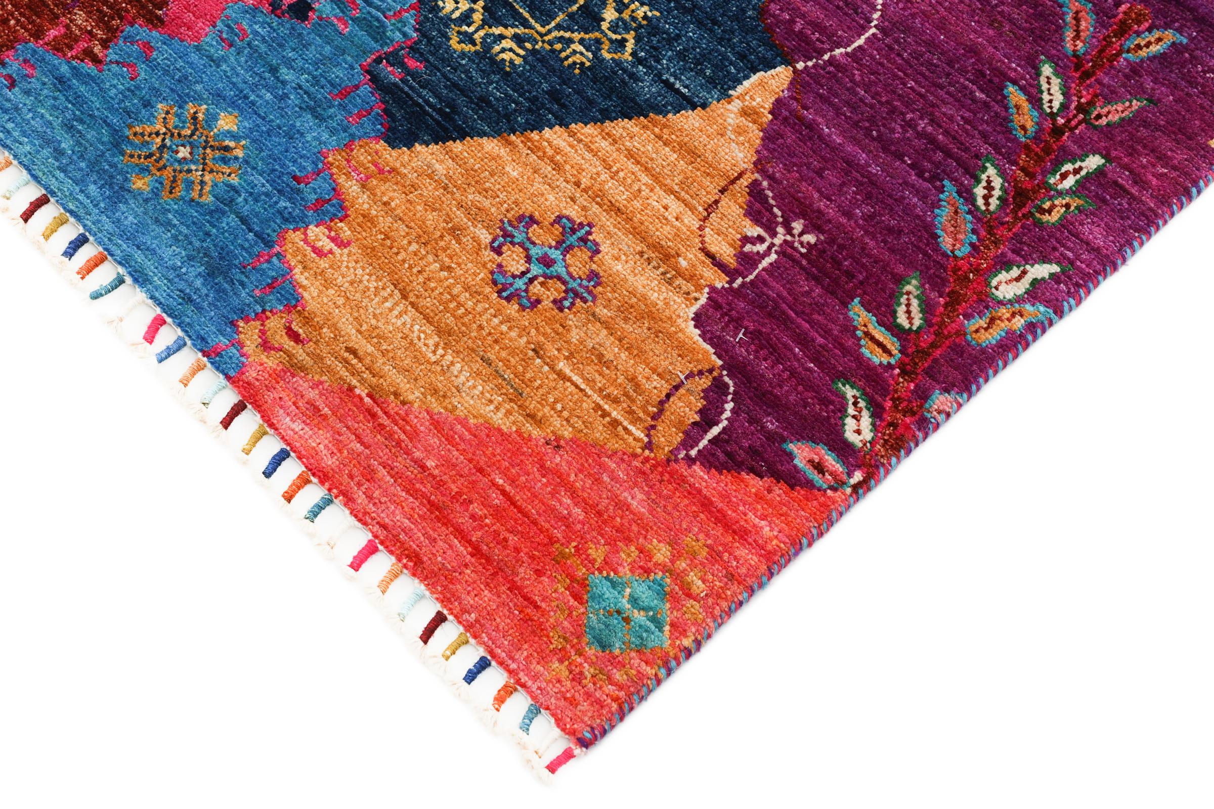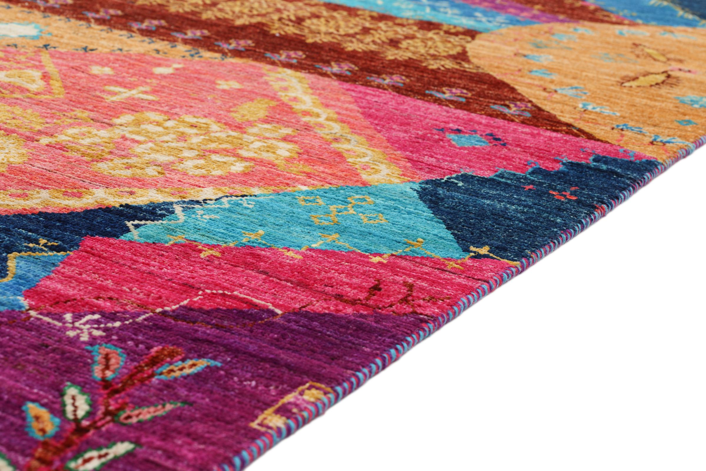 This vibrant oriental rug was hand-knotted in Pakistan - in one of the most far-reaching knotting cultures in the world. Here, the vibrant color spectrum of the Orient comes into its own. A rug like this brings joie de vivre at any time of year. The designer rug has its very own character, as it has only been hand-knotted once over a period of months.