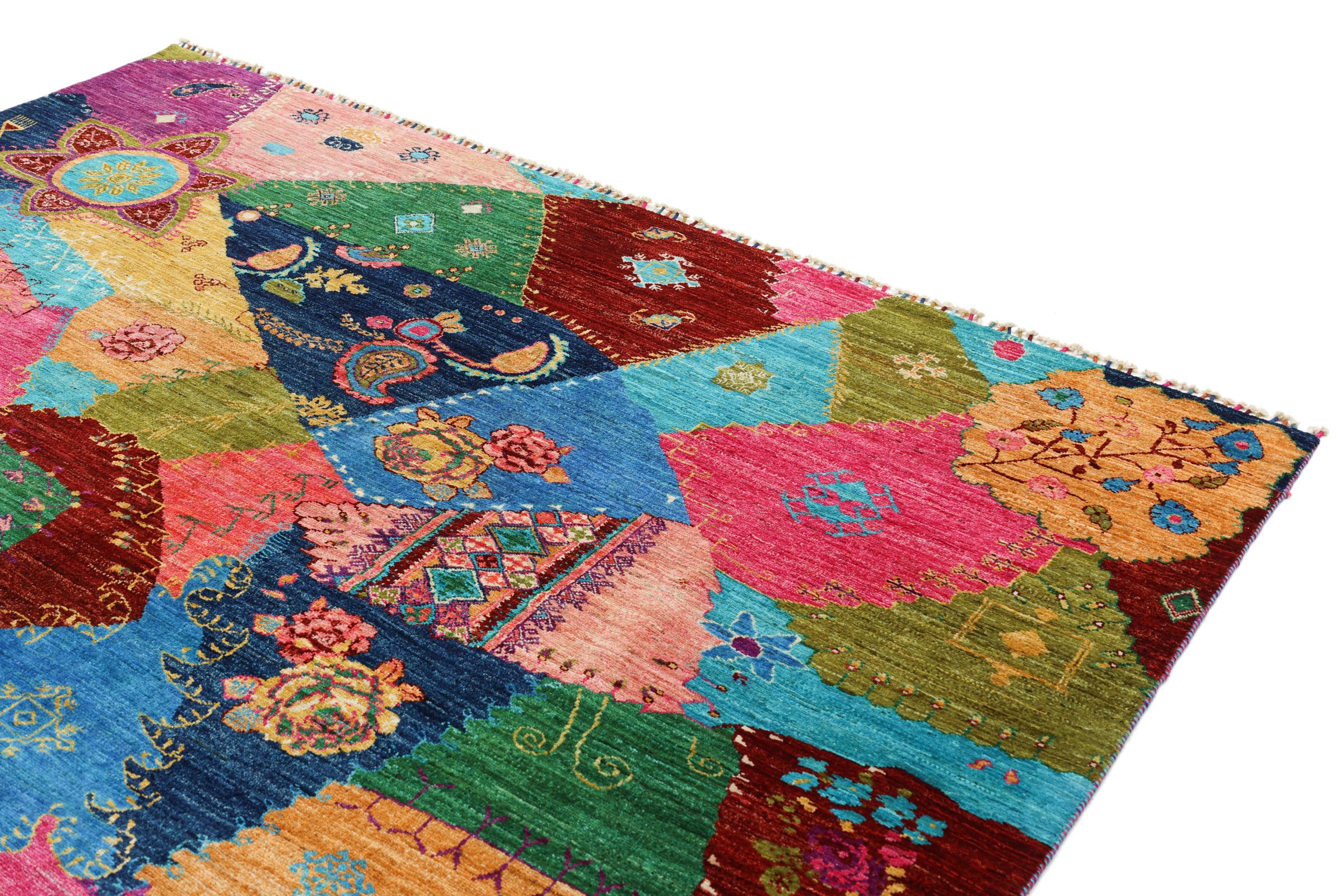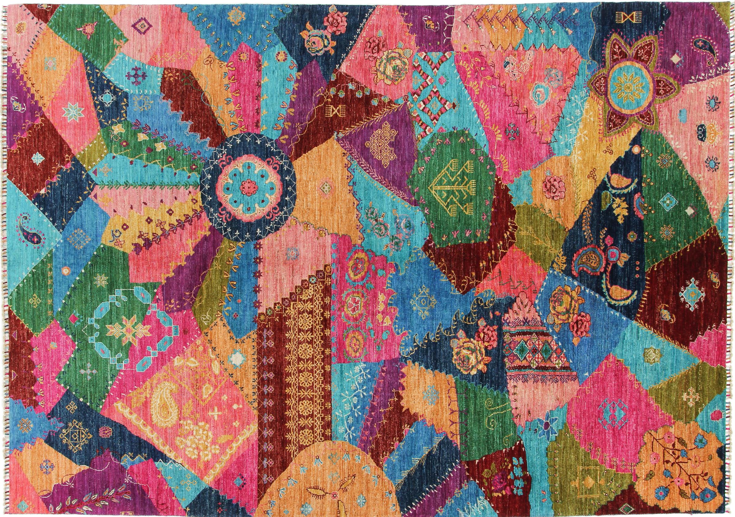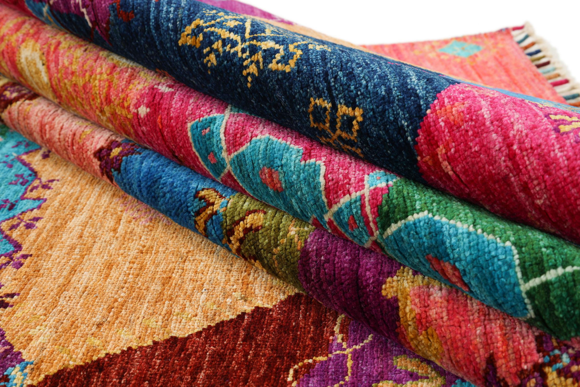 This vibrant oriental rug was hand-knotted in Pakistan - in one of the most far-reaching knotting cultures in the world. Here, the vibrant color spectrum of the Orient comes into its own. A rug like this brings joie de vivre at any time of year. The designer rug has its very own character, as it has only been hand-knotted once over a period of months.