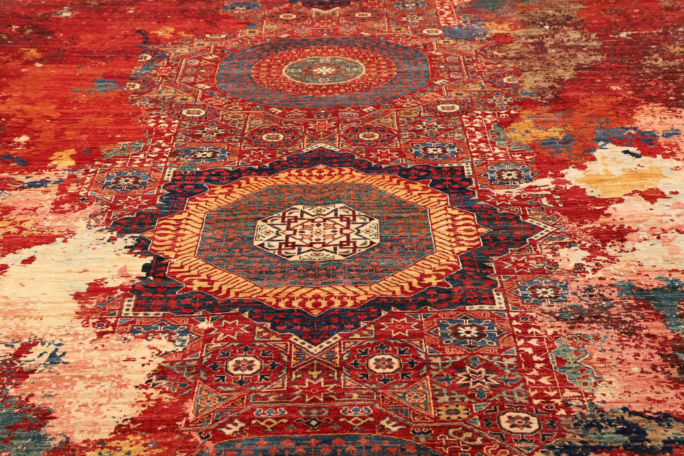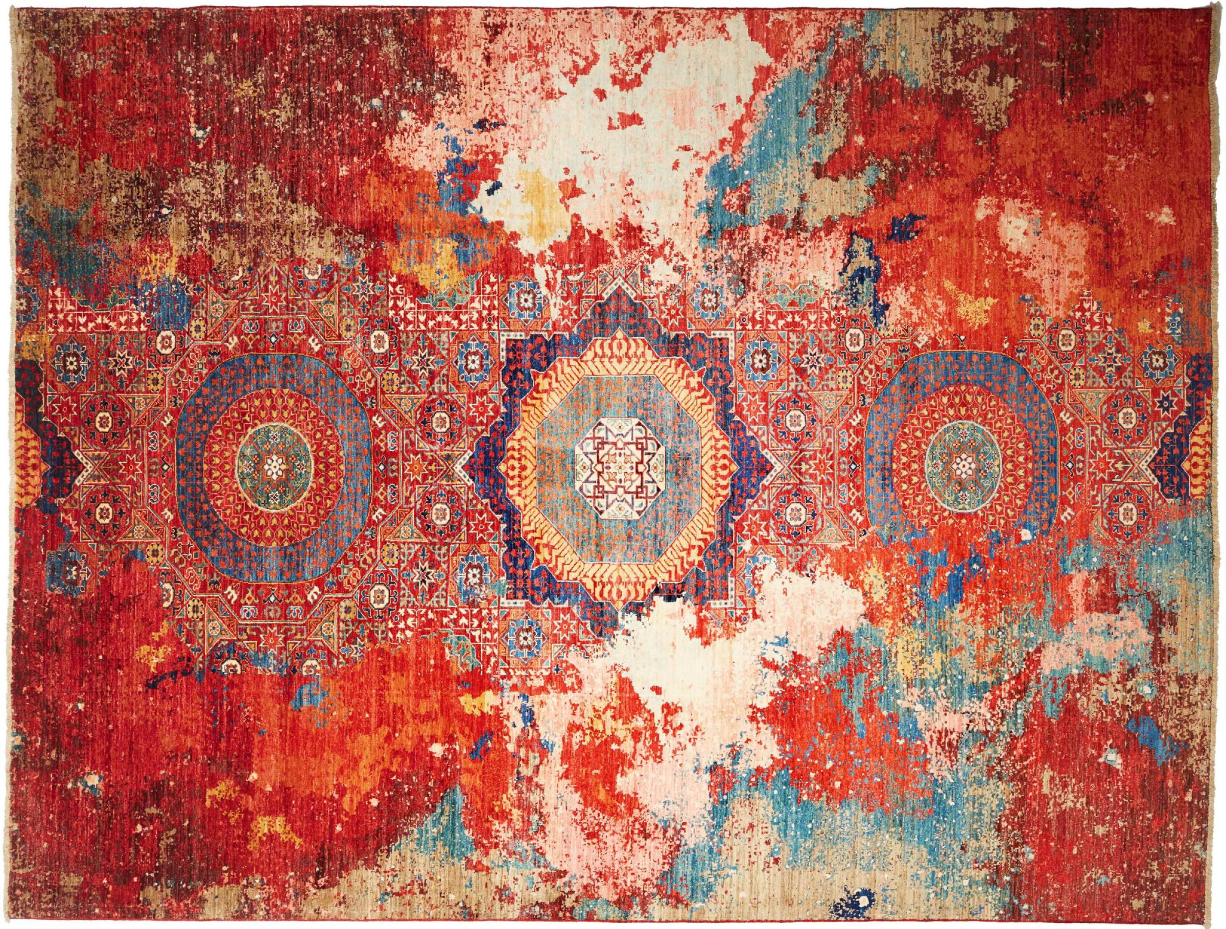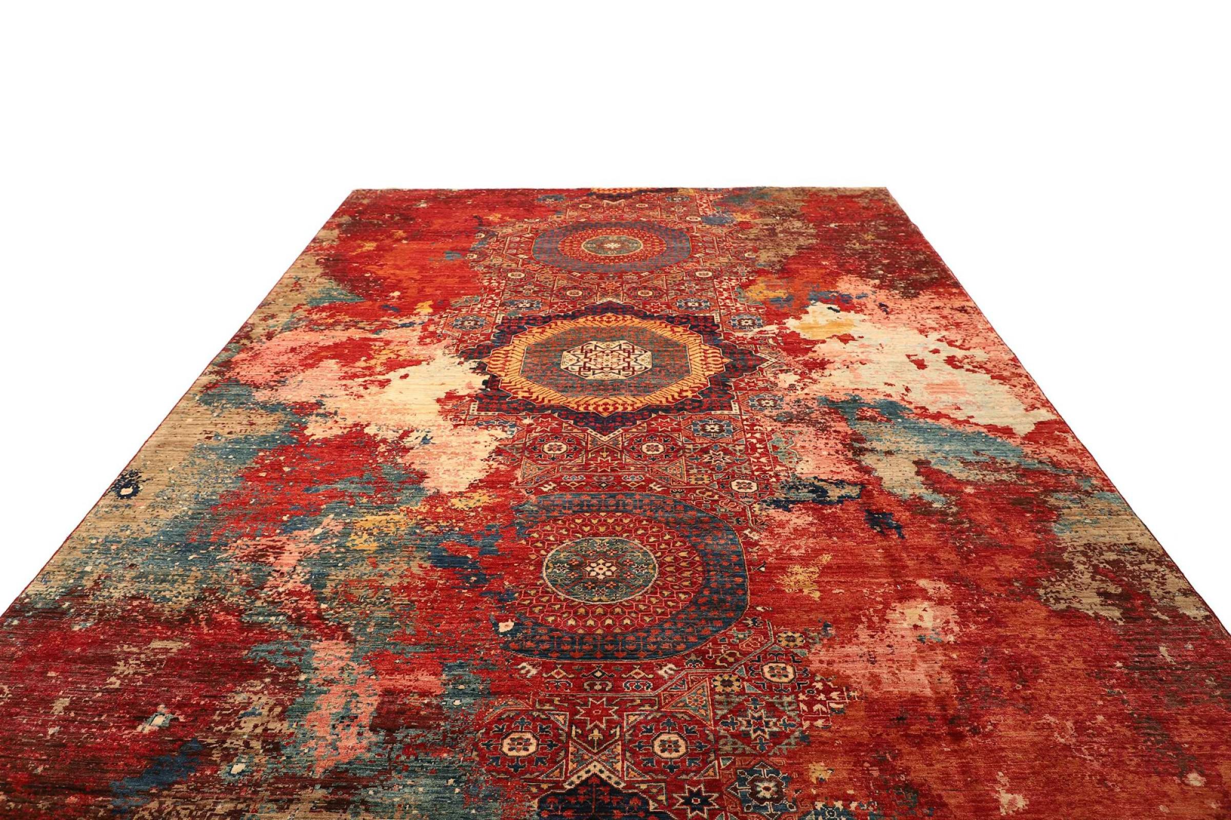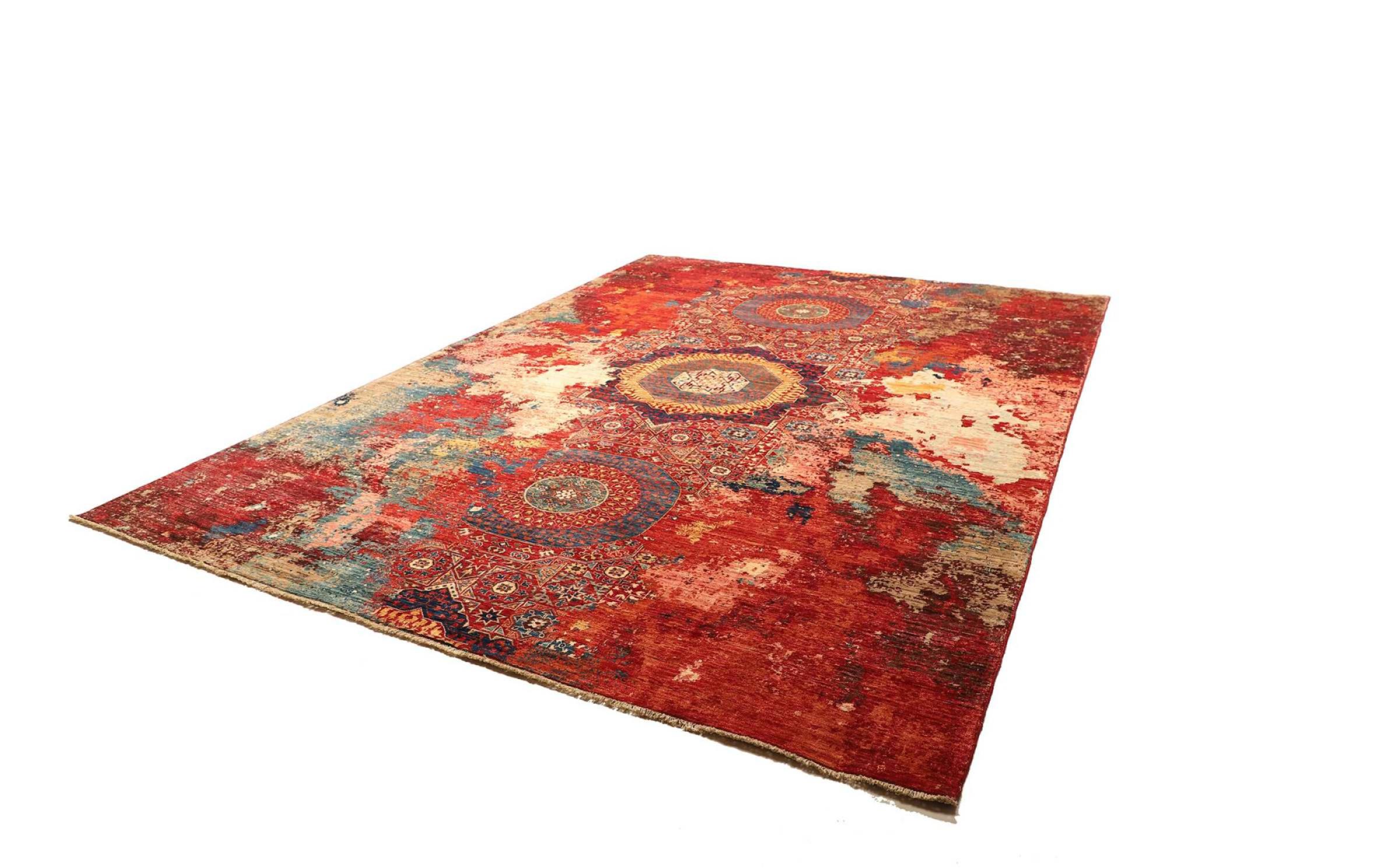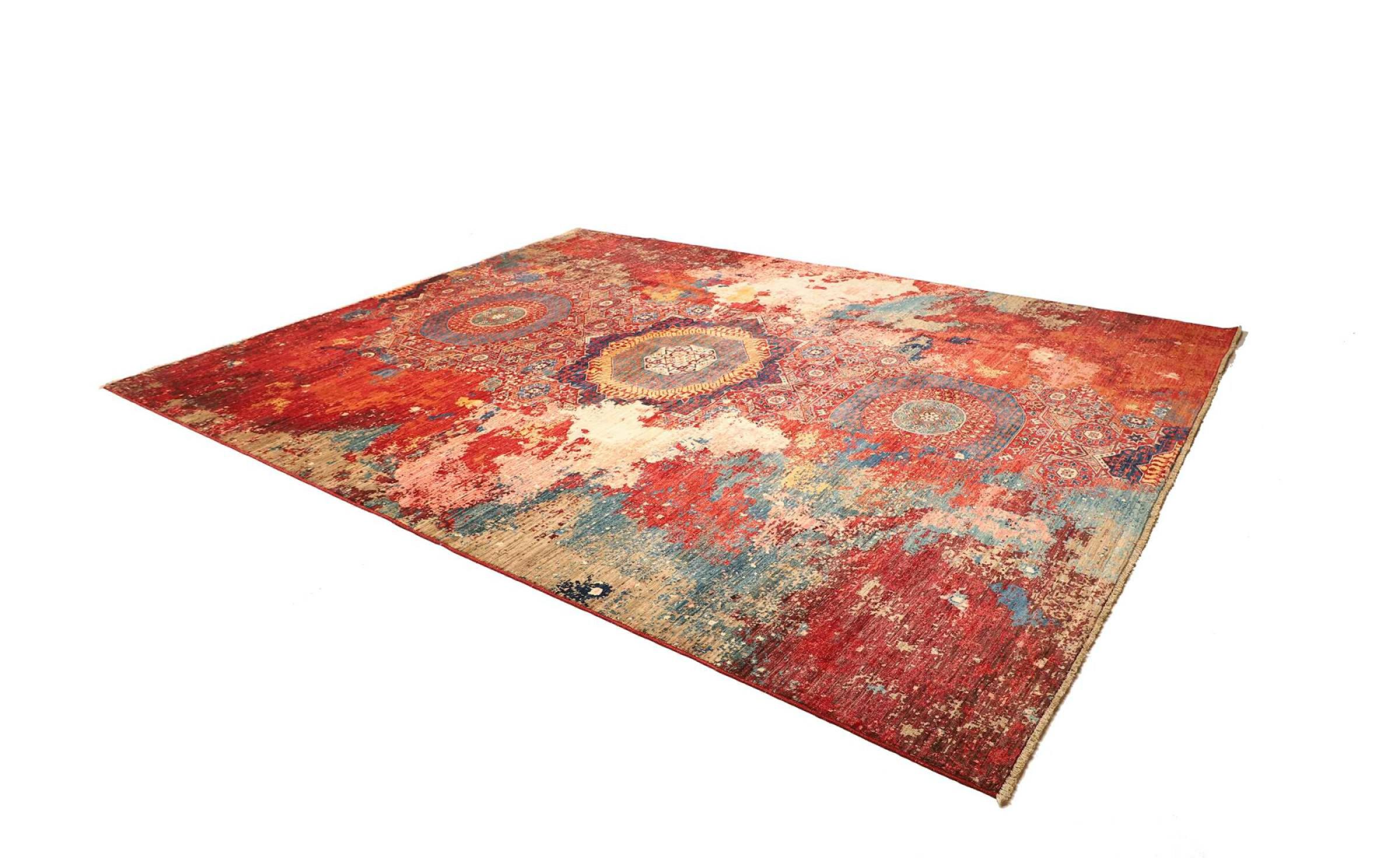 This vibrant oriental rug was hand-knotted in Pakistan - in one of the most far-reaching knotting cultures in the world. Here, the vibrant color spectrum of the Orient comes into its own. A rug like this brings joie de vivre at any time of year. The designer rug has its very own character, as it has only been hand-knotted once over a period of months.