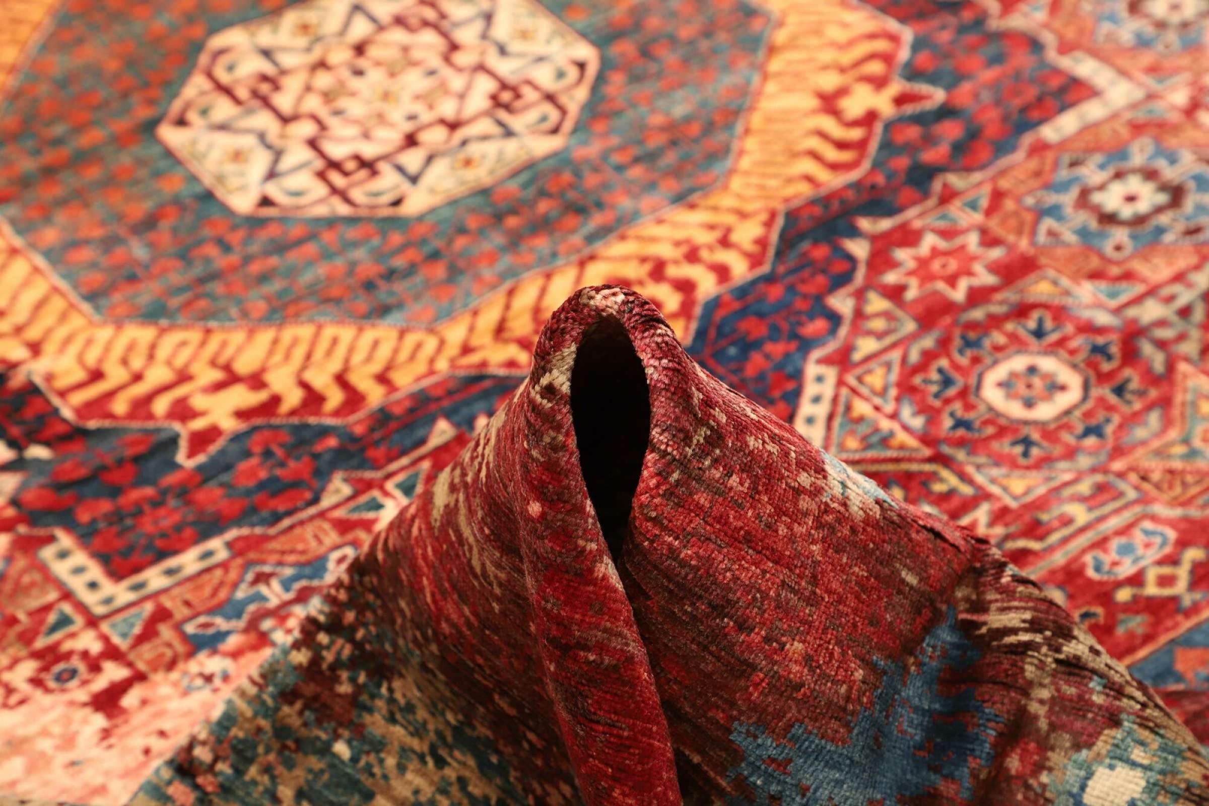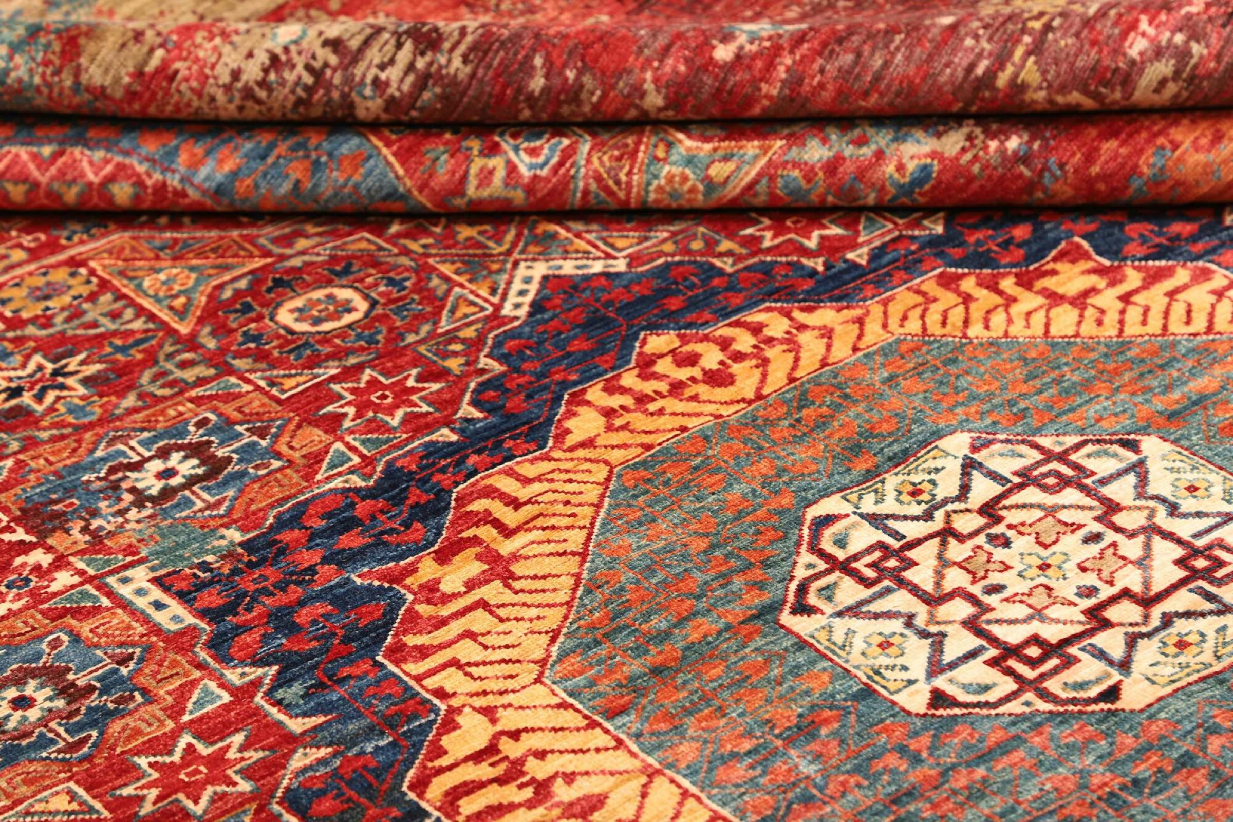 This rug is made of hand spun sheep wool of the highest quality. Especially in Iran (former Persia), Afghanistan and Pakistan wool is still spun by hand before the actual knotting of the rug begins. Wool has proven itself as a natural and extremely hard-wearing material over centuries. Among other things, it has dirt-repellent and heat-insulating properties. At the same time, wool is incomparably soft and has a natural shine.