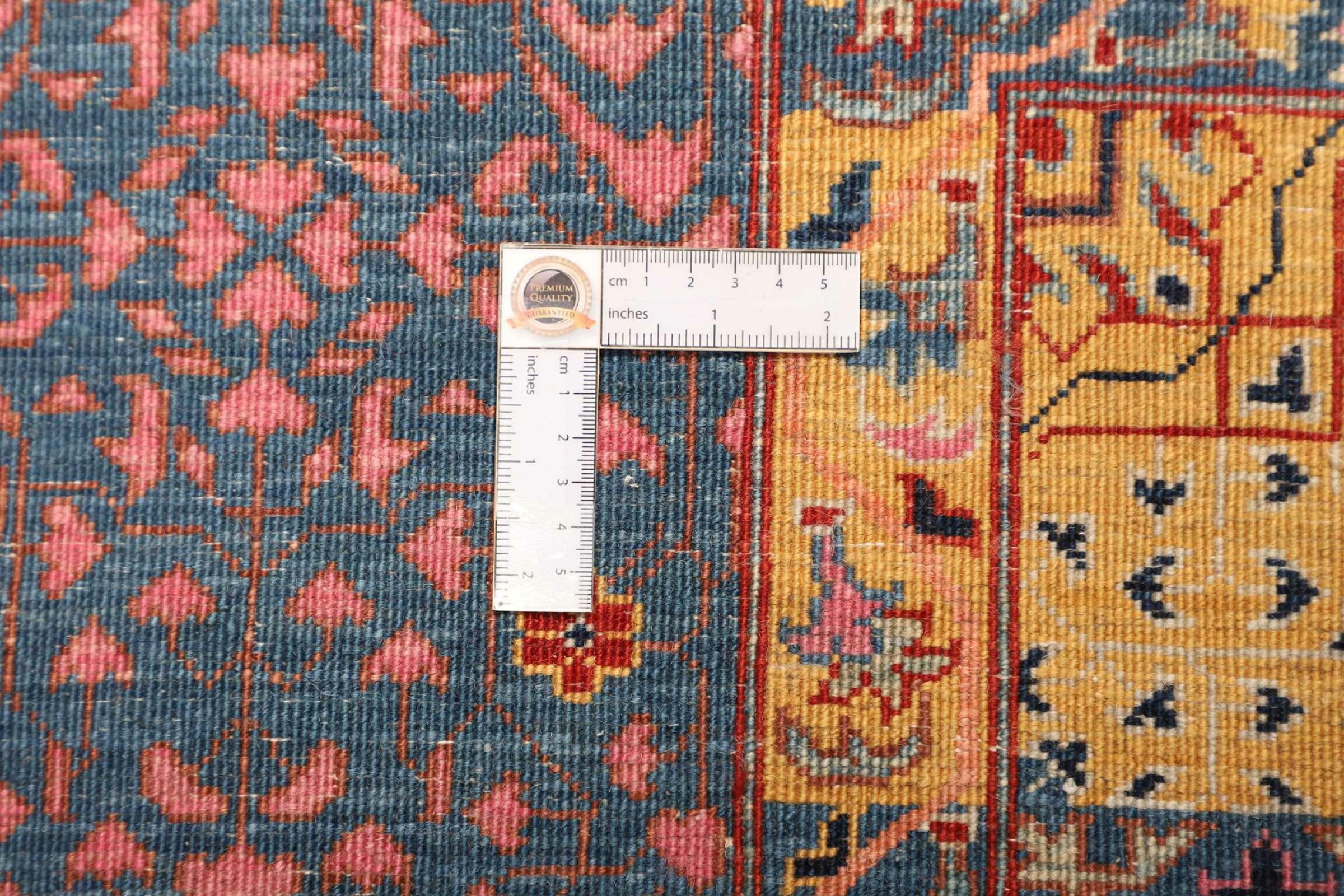 Carpet ID: 270066007227815 Size: 362x276 cm Thickness: ap. 5 mm Knot density: 160 000 - 200 000 / m² Manufacturing: Knotted by hand Pile: Handspun wool Warp: Cotton Origin: Pakistan Age: New Weight: ap. 35 kg In stock: Unique - Only 1 in stock