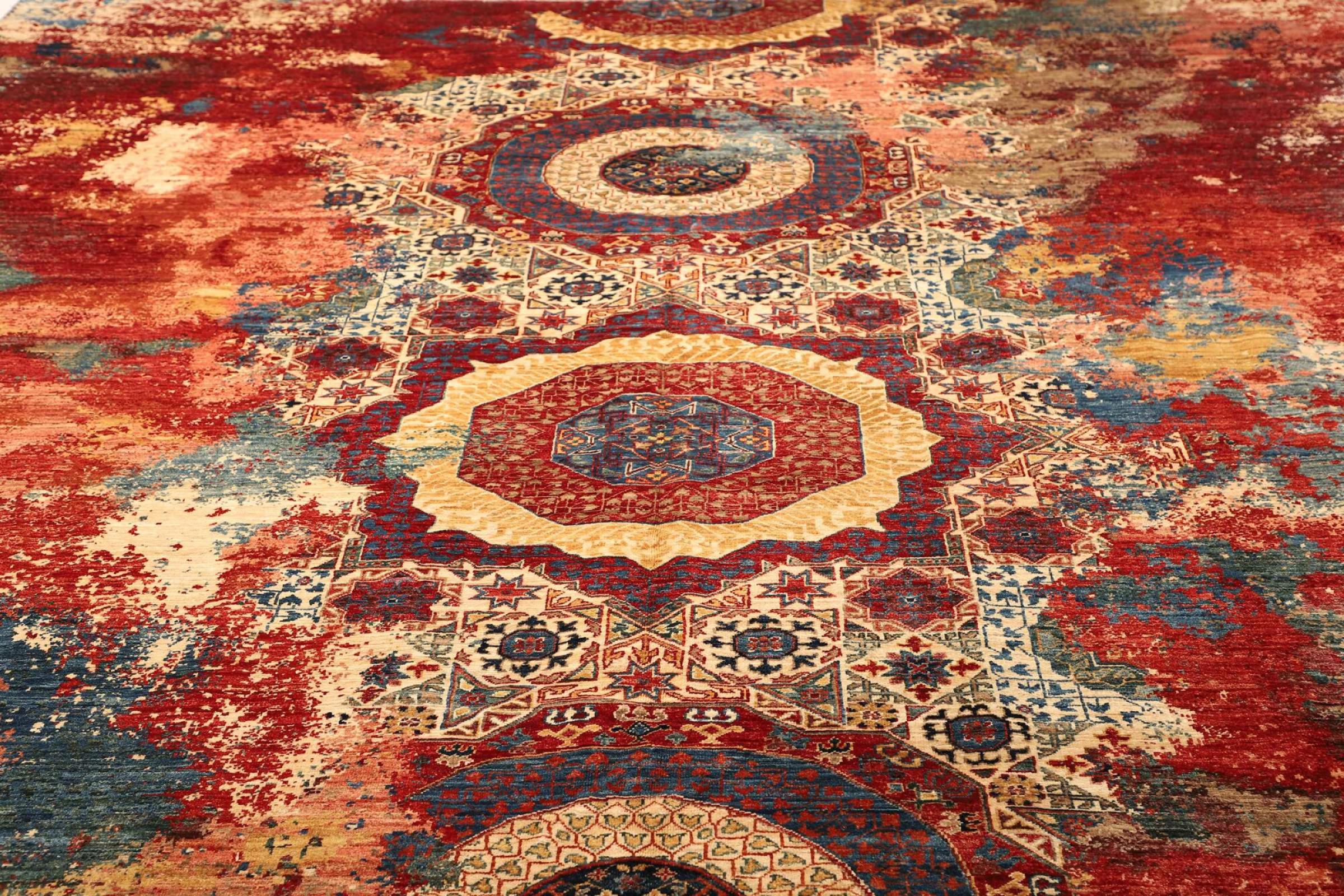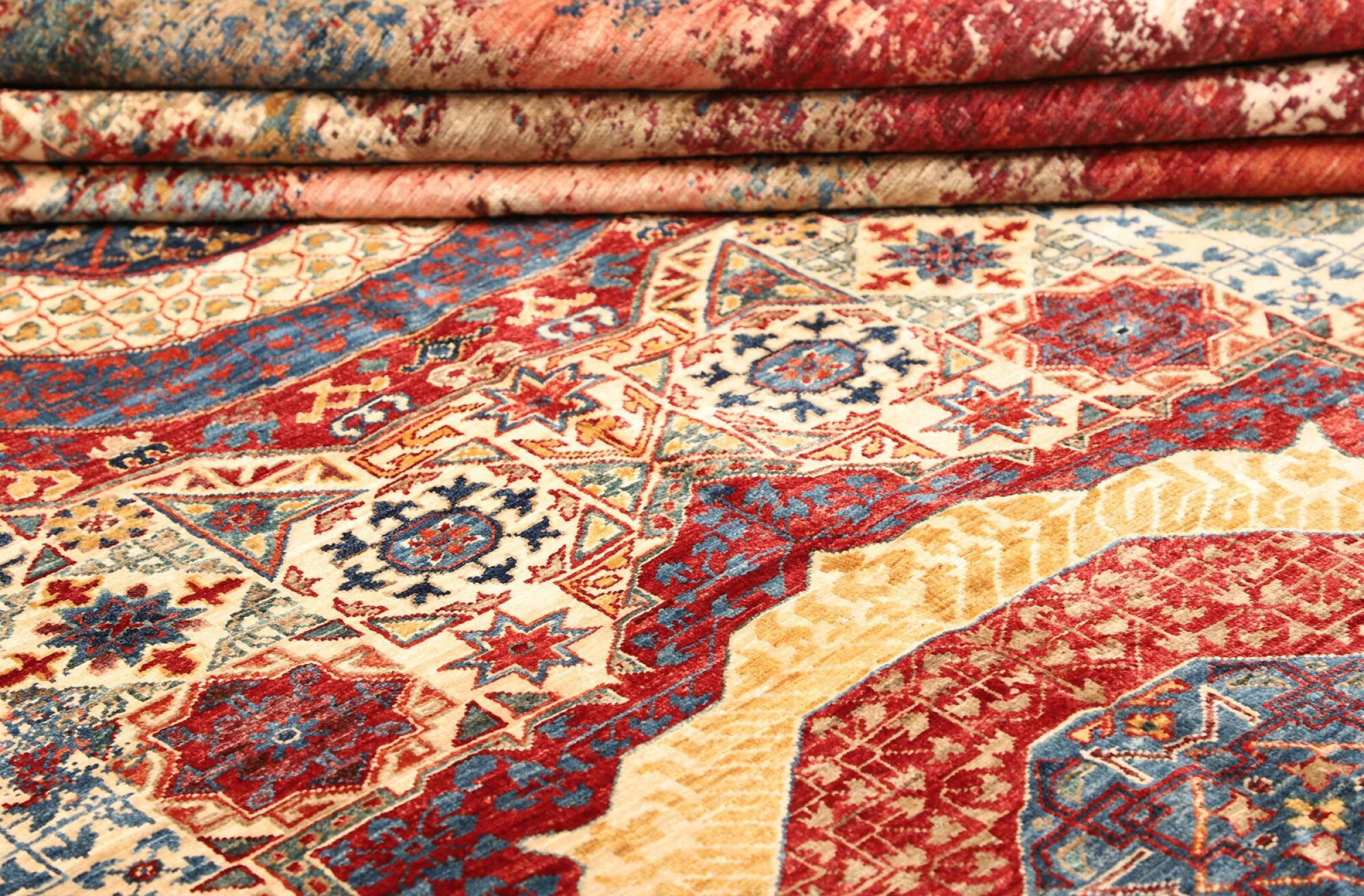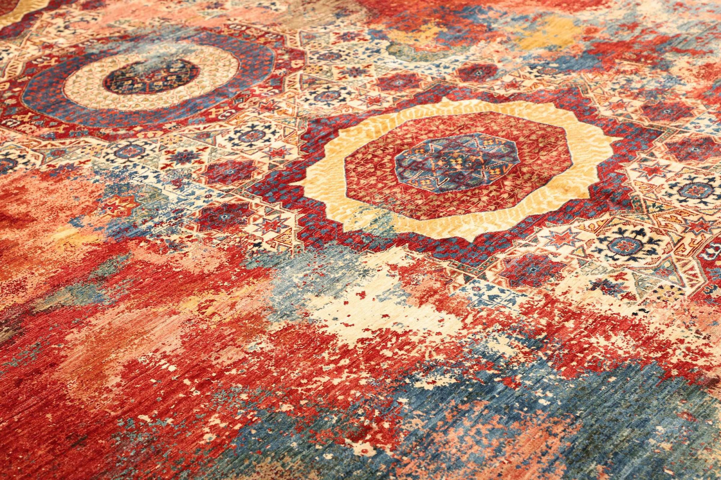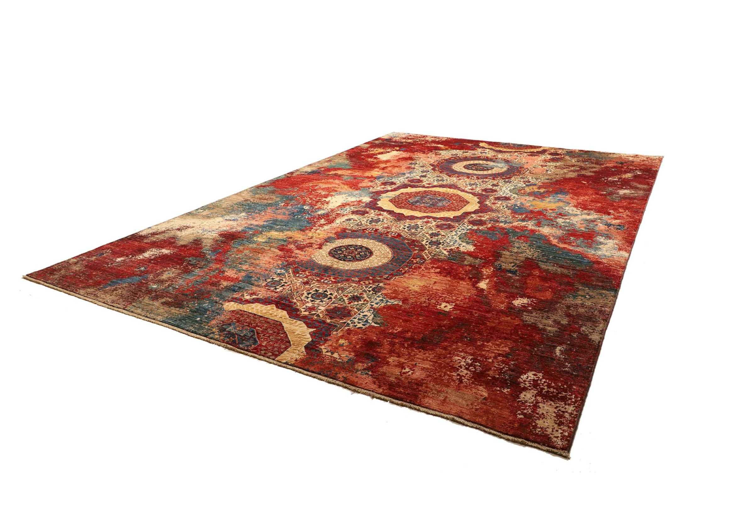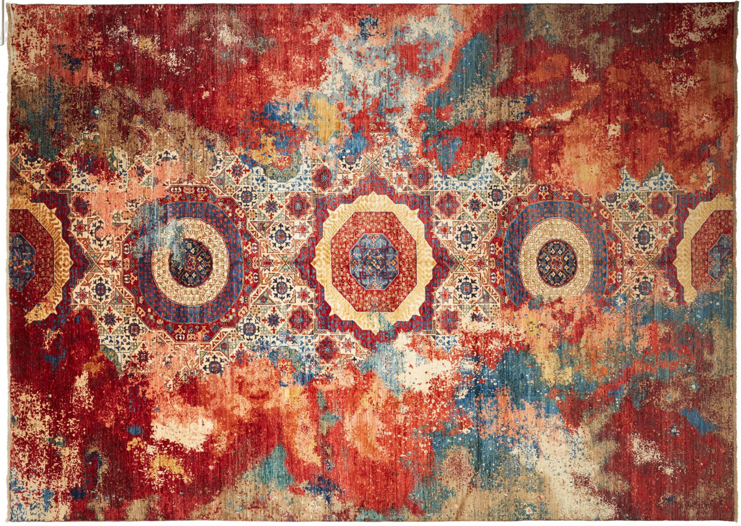 This vibrant oriental rug was hand-knotted in Pakistan - in one of the most far-reaching knotting cultures in the world. Here, the vibrant color spectrum of the Orient comes into its own. A rug like this brings joie de vivre at any time of year. The designer rug has its very own character, as it has only been hand-knotted once over a period of months.