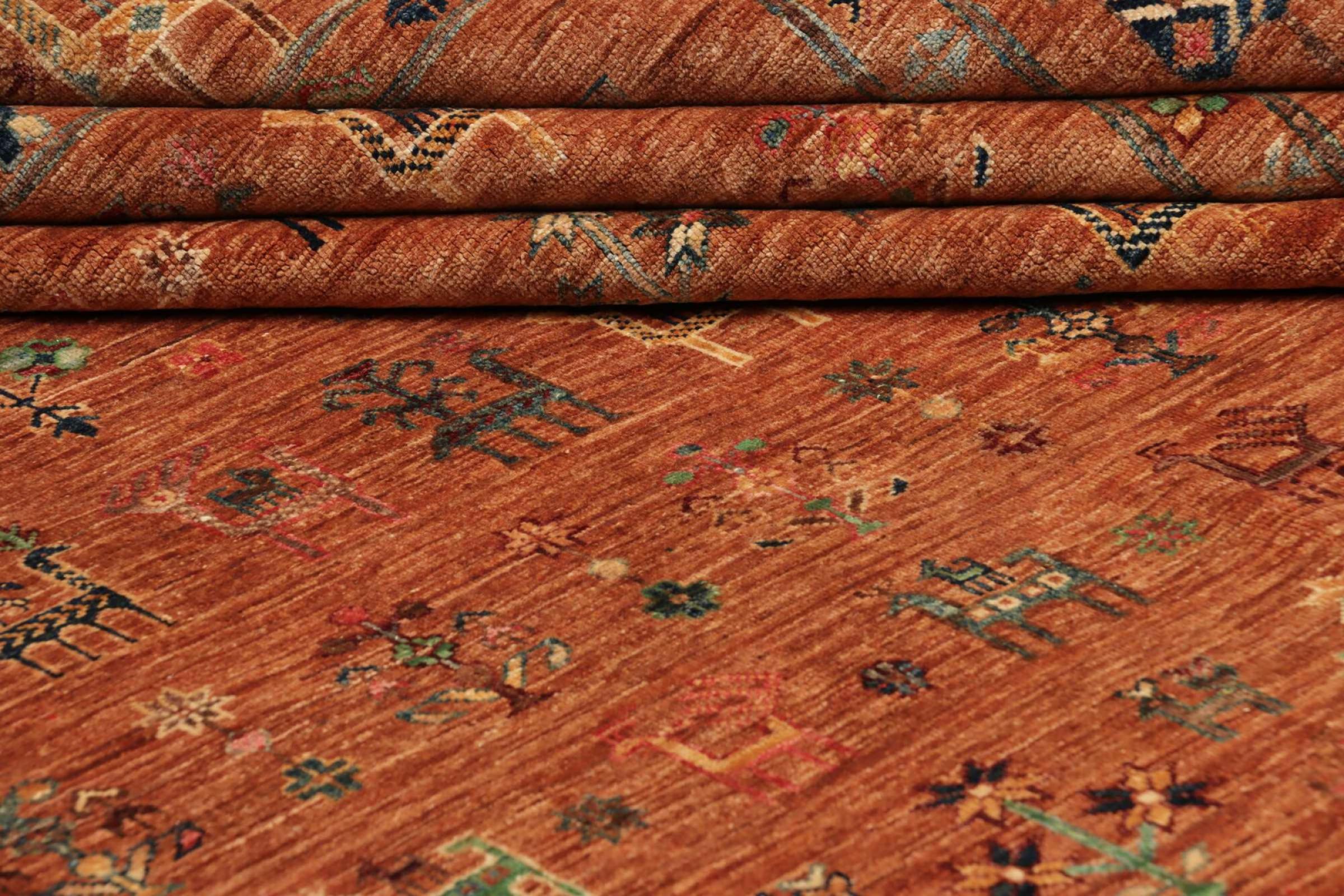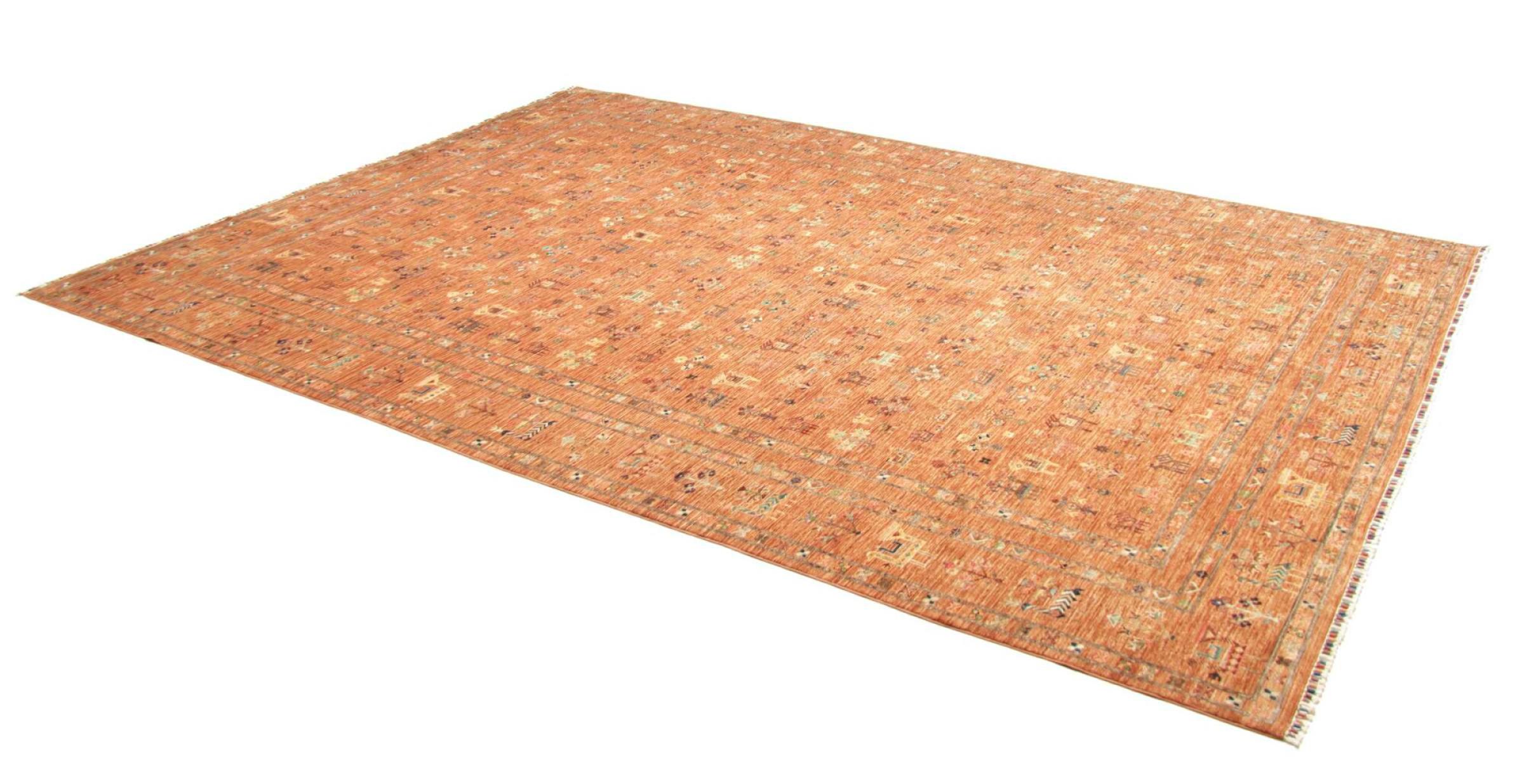 This vibrant oriental rug was hand-knotted in Pakistan - in one of the most far-reaching knotting cultures in the world. Here, the vibrant color spectrum of the Orient comes into its own. A rug like this brings joie de vivre at any time of year. The designer rug has its very own character, as it has only been hand-knotted once over a period of months.