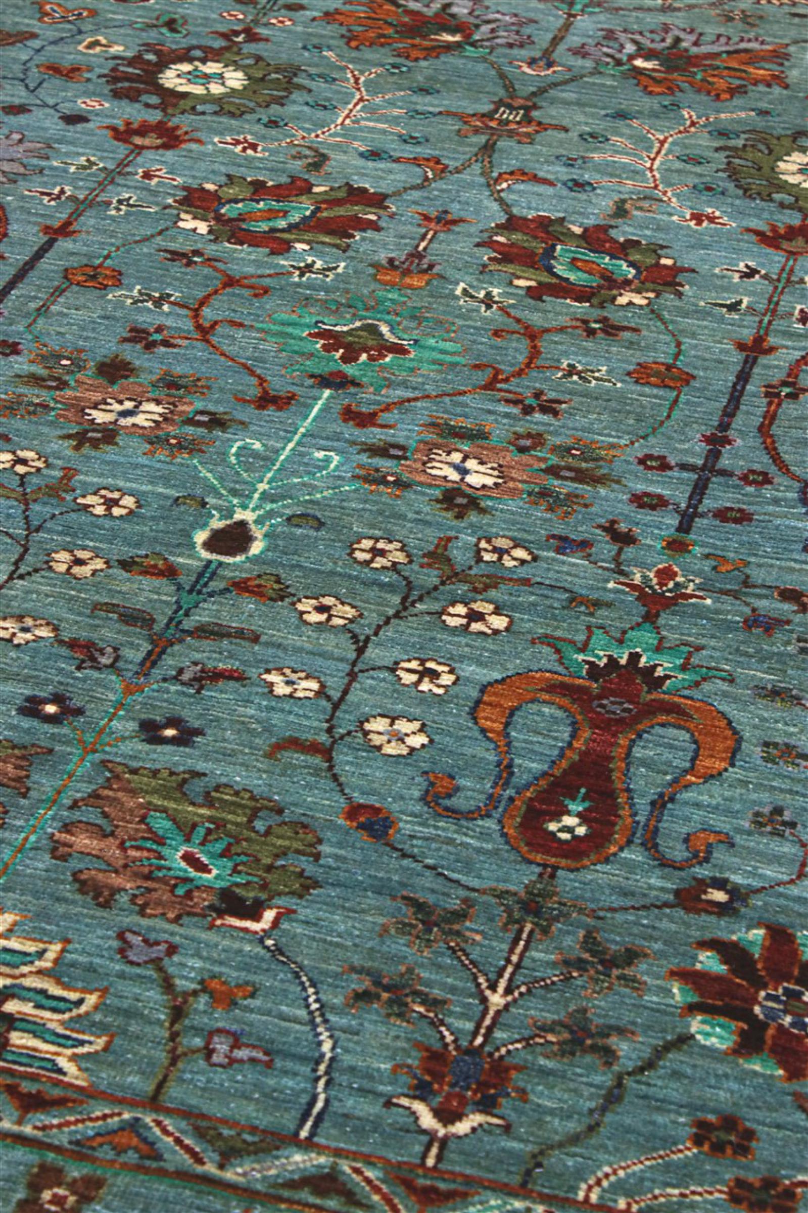 This rug is made of hand spun sheep wool of the highest quality. Especially in Iran (former Persia), Afghanistan and Pakistan wool is still spun by hand before the actual knotting of the rug begins. Wool has proven itself as a natural and extremely hard-wearing material over centuries. Among other things, it has dirt-repellent and heat-insulating properties. At the same time, wool is incomparably soft and has a natural shine.