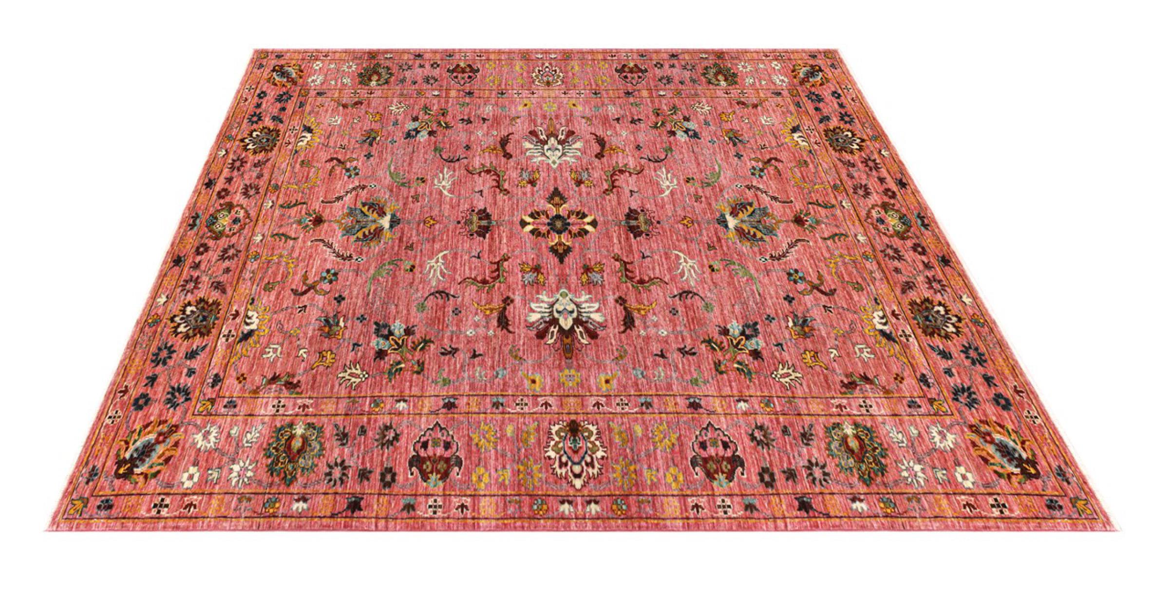 This Arijana carpet comes in a classic design. The carpet is modelled on the ornaments of traditional Persian carpets. Together with modern design elements and vivid colours it has been brought into the present day. The design is very popular today and guarantees an absolute highlight in your home. In addition: hand knotted carpets are simply unbeatable in their quality, durability and unique character.