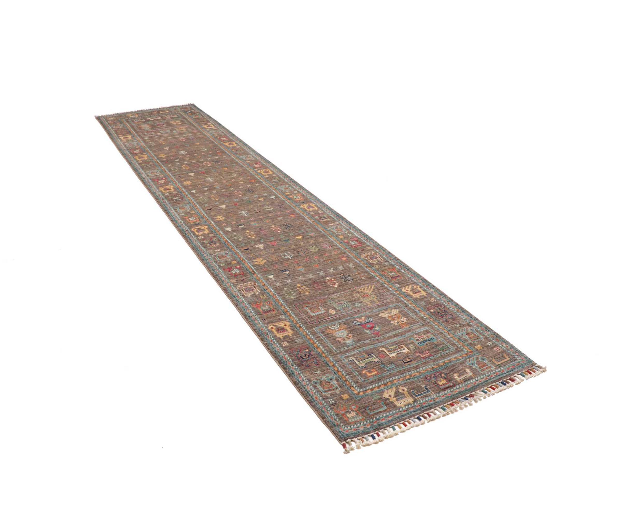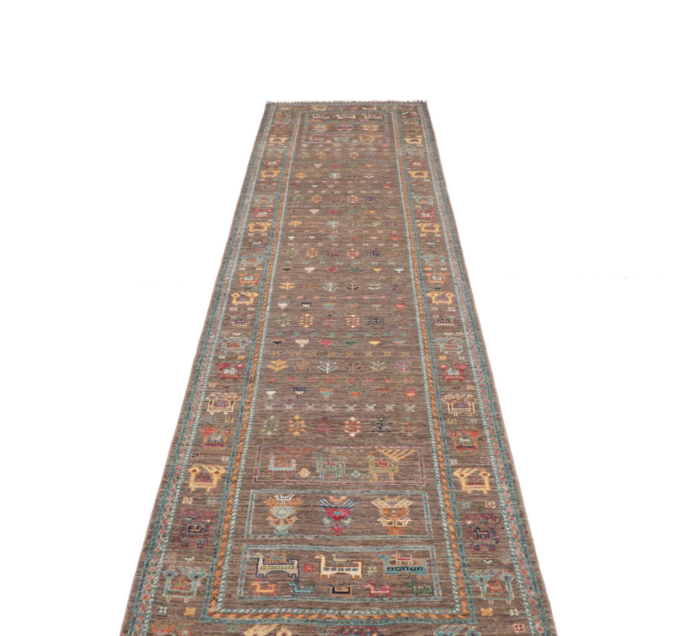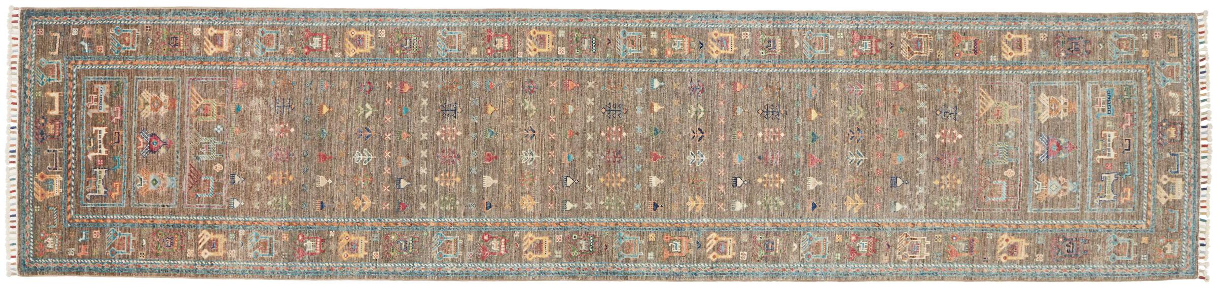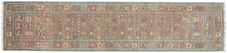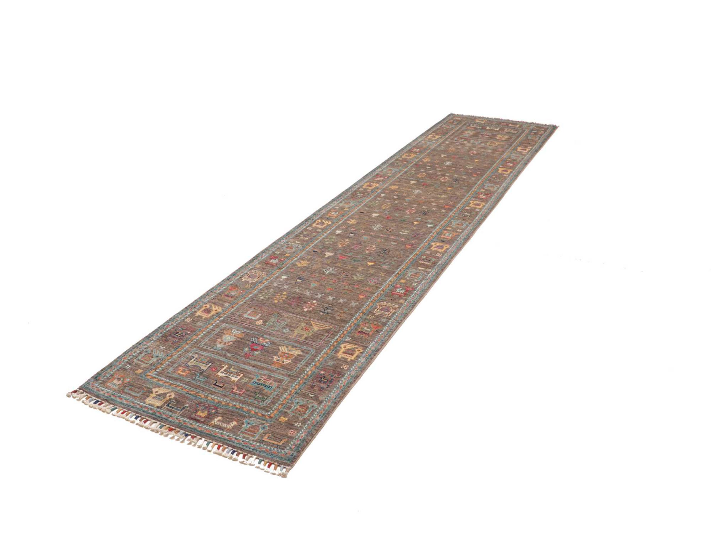 Carpet ID: 284804001297443 Size: 345x77 cm Thickness: ap. 5 mm Knot density: 160 000 - 200 000 / m² Manufacturing: Knotted by hand Pile: Handspun wool Warp: Cotton Origin: Pakistan Age: New Weight: ap. 9 kg In stock: Unique - Only 1 in stock