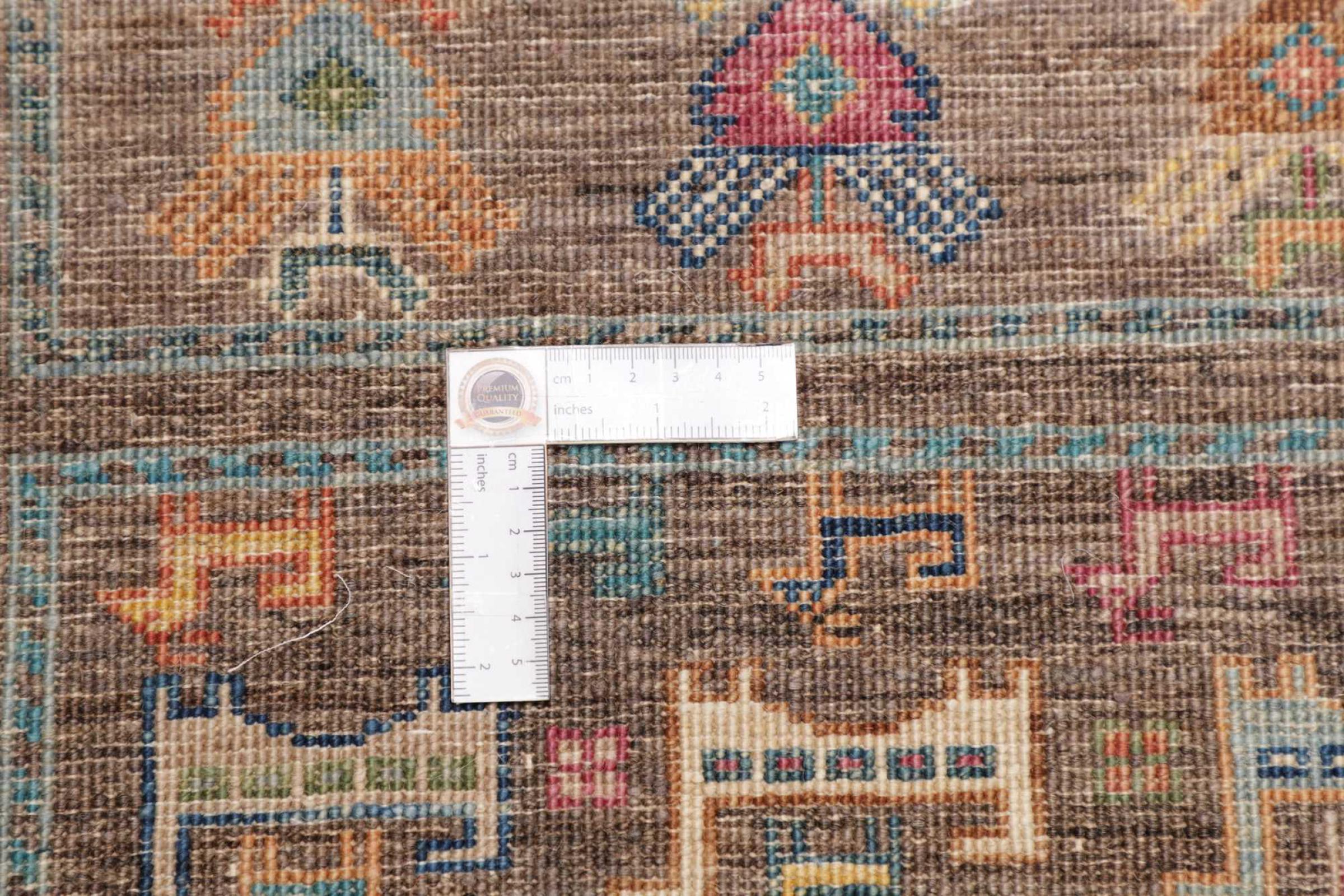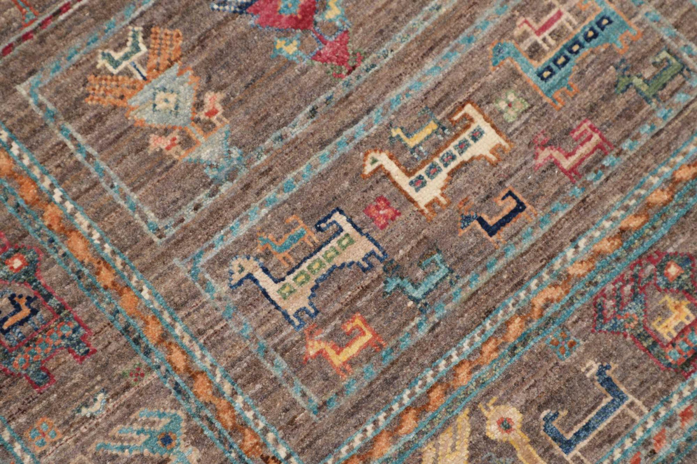 This rug is made of hand spun sheep wool of the highest quality. Especially in Iran (former Persia), Afghanistan and Pakistan wool is still spun by hand before the actual knotting of the rug begins. Wool has proven itself as a natural and extremely hard-wearing material over centuries. Among other things, it has dirt-repellent and heat-insulating properties. At the same time, wool is incomparably soft and has a natural shine.