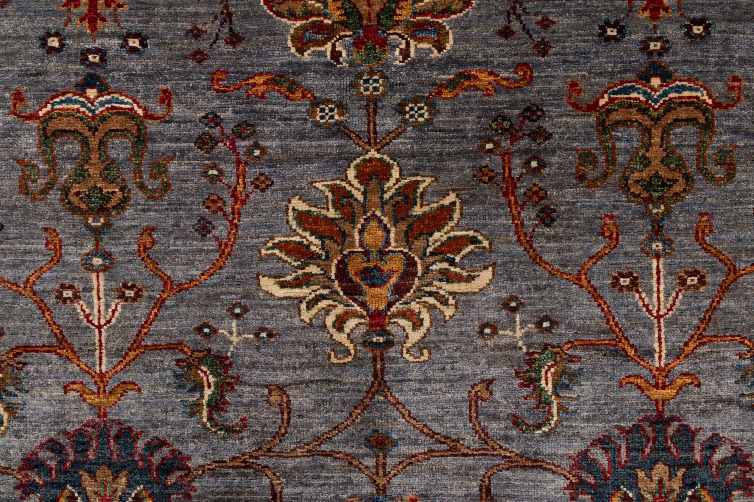This rug is made of hand spun sheep wool of the highest quality. Especially in Iran (former Persia), Afghanistan and Pakistan wool is still spun by hand before the actual knotting of the rug begins. Wool has proven itself as a natural and extremely hard-wearing material over centuries. Among other things, it has dirt-repellent and heat-insulating properties. At the same time, wool is incomparably soft and has a natural shine.