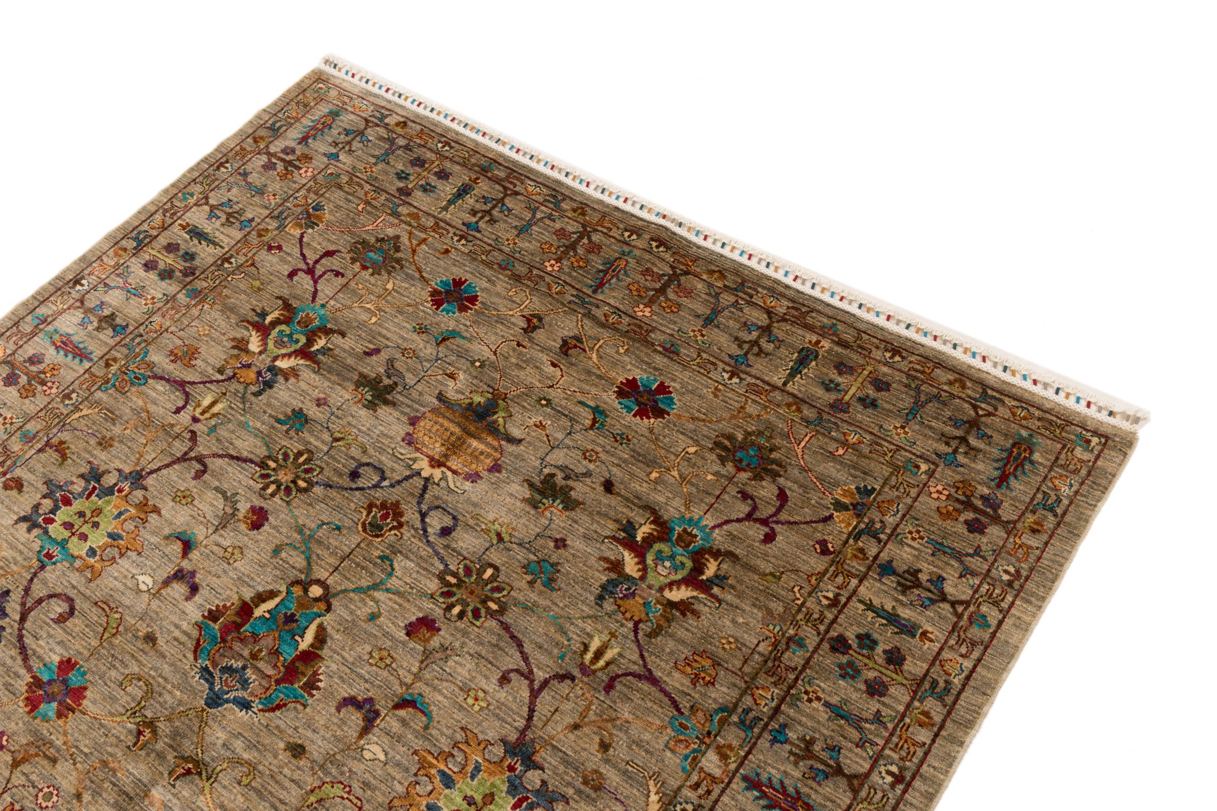 This rug is made of hand spun sheep wool of the highest quality. Especially in Iran (former Persia), Afghanistan and Pakistan wool is still spun by hand before the actual knotting of the rug begins. Wool has proven itself as a natural and extremely hard-wearing material over centuries. Among other things, it has dirt-repellent and heat-insulating properties. At the same time, wool is incomparably soft and has a natural shine.