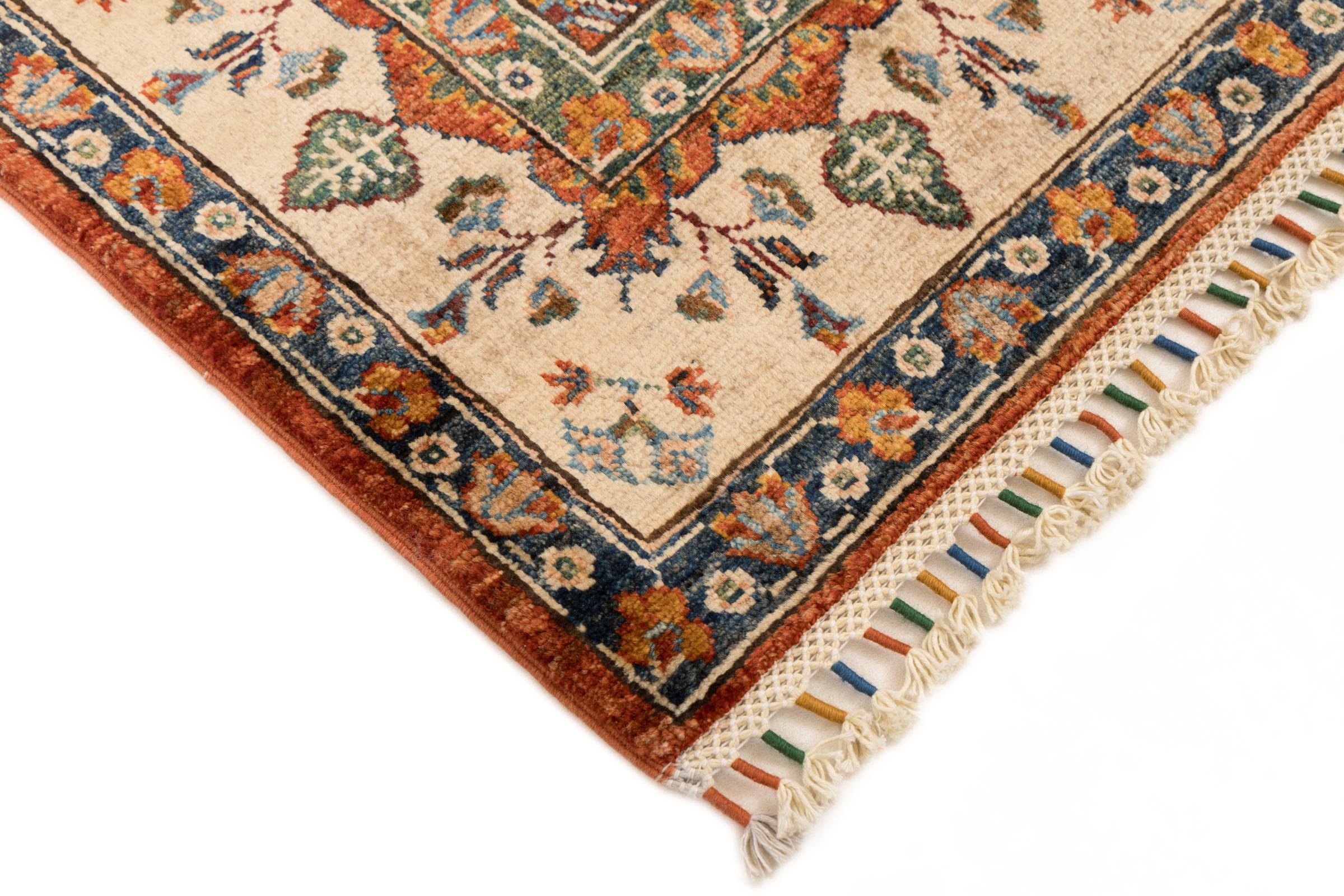 This rug is made of hand spun sheep wool of the highest quality. Especially in Iran (former Persia), Afghanistan and Pakistan wool is still spun by hand before the actual knotting of the rug begins. Wool has proven itself as a natural and extremely hard-wearing material over centuries. Among other things, it has dirt-repellent and heat-insulating properties. At the same time, wool is incomparably soft and has a natural shine.