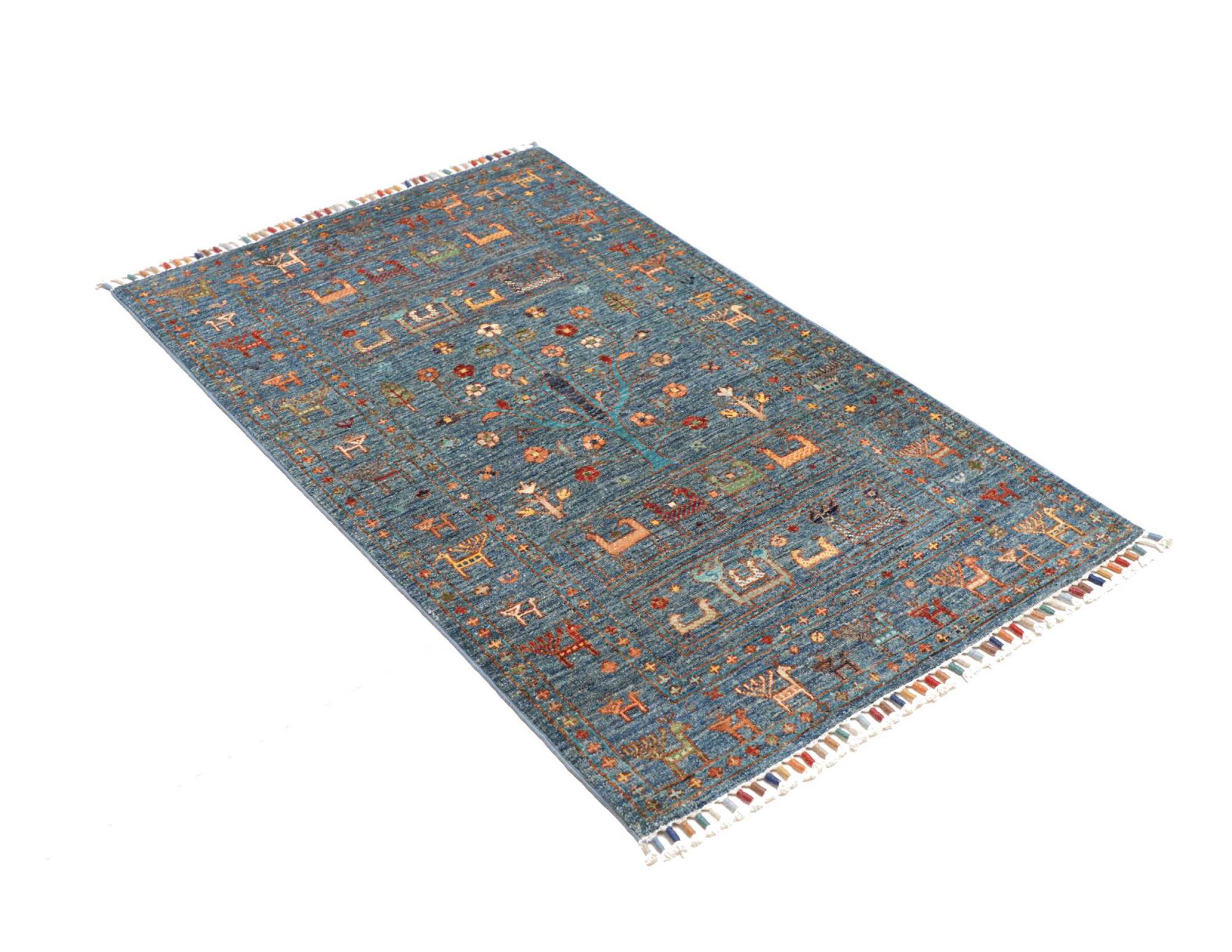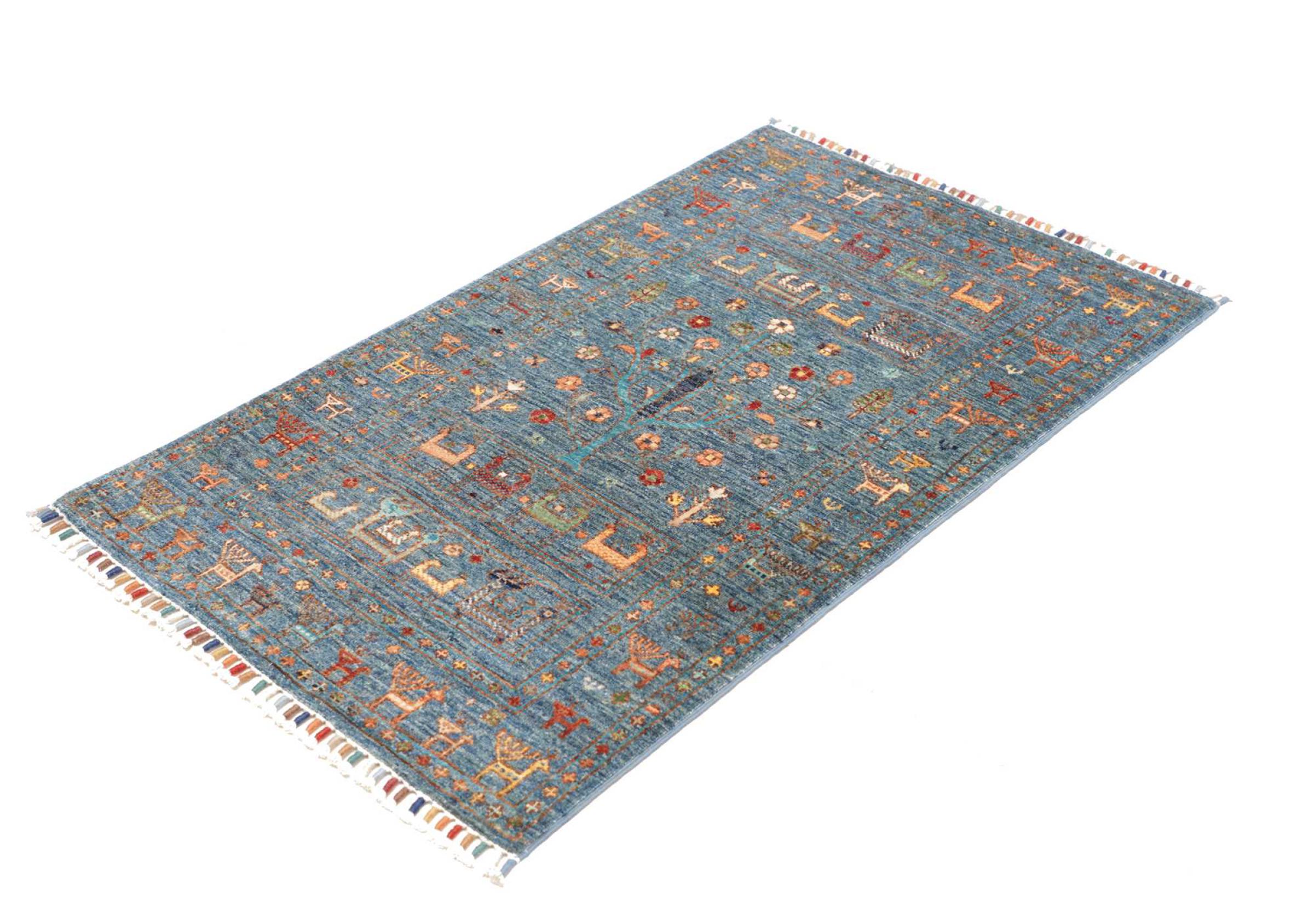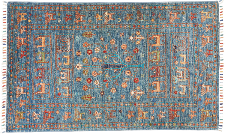 Carpet ID: 286826008991525 Size: 126x76 cm Thickness: ap. 5 mm Knot density: 128 000 - 160 000 / m² Manufacturing: Knotted by hand Pile: Handspun wool Warp: Cotton Origin: Pakistan Age: New Weight: ap. 3 kg In stock: Unique - Only 1 in stock