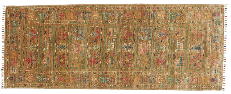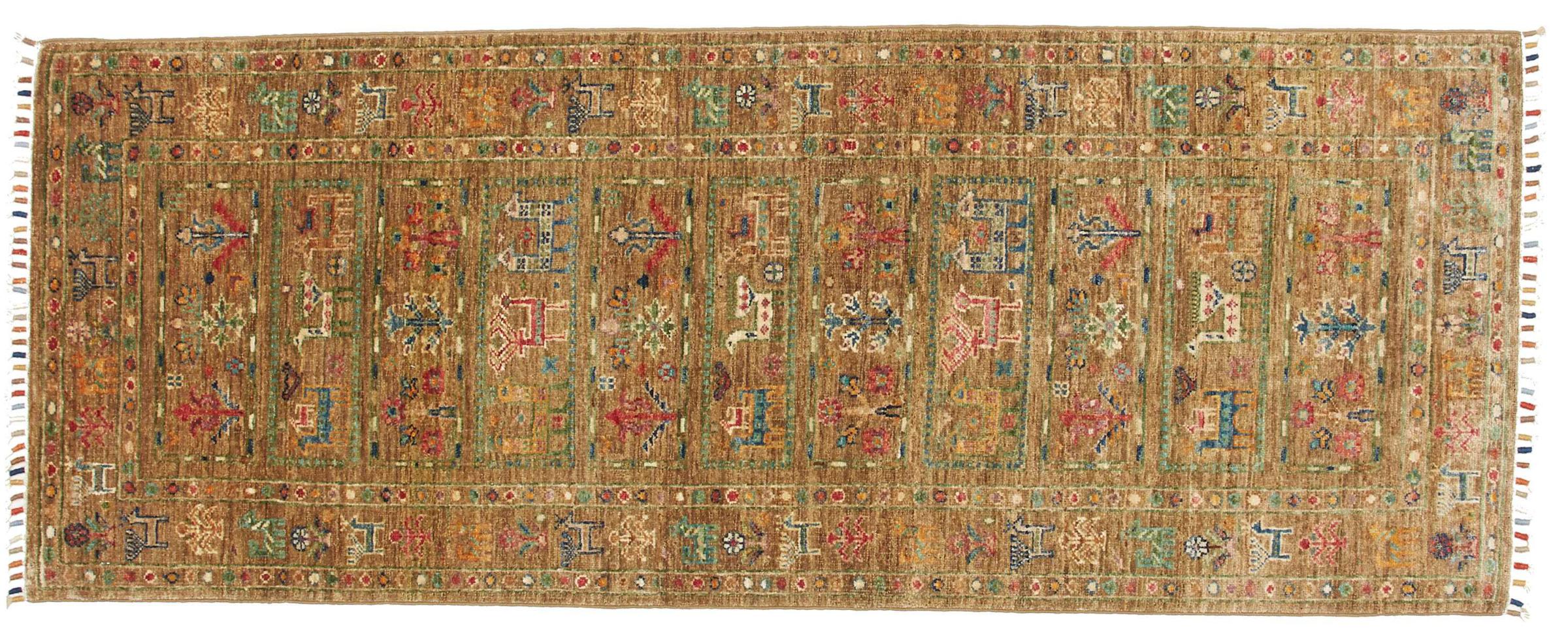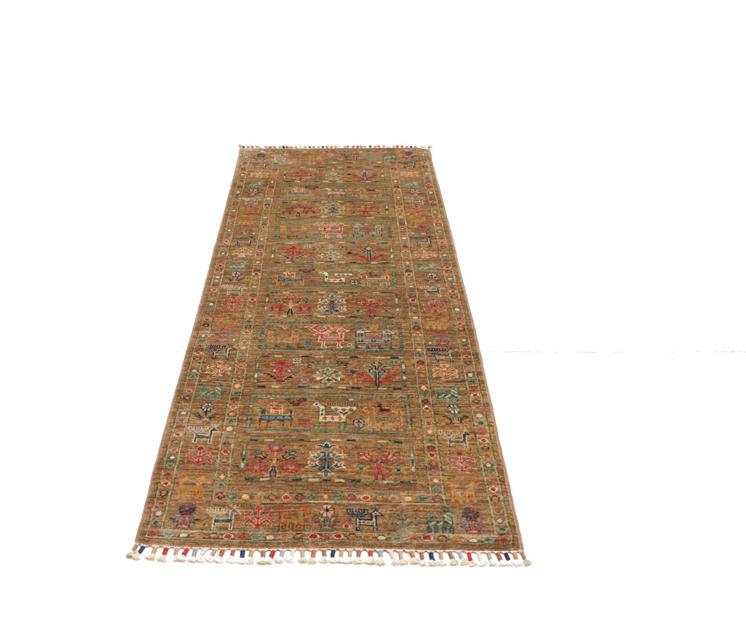 Carpet ID: 286522004694690 Size: 186x73 cm Thickness: ap. 5 mm Knot density: 128 000 - 160 000 / m² Manufacturing: Knotted by hand Pile: Handspun wool Warp: Cotton Origin: Pakistan Age: New Weight: ap. 5 kg In stock: Unique - Only 1 in stock