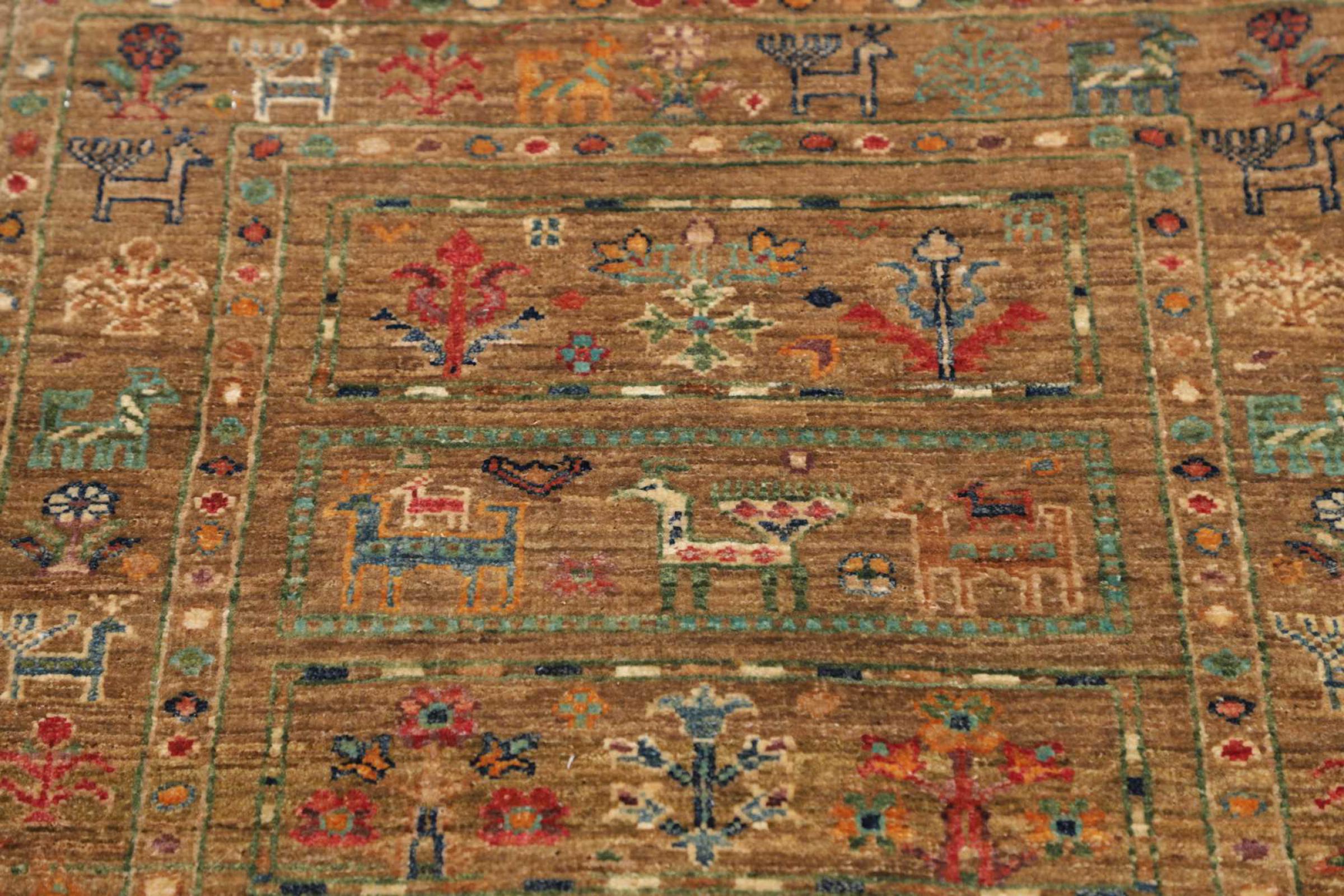 This rug is made of hand spun sheep wool of the highest quality. Especially in Iran (former Persia), Afghanistan and Pakistan wool is still spun by hand before the actual knotting of the rug begins. Wool has proven itself as a natural and extremely hard-wearing material over centuries. Among other things, it has dirt-repellent and heat-insulating properties. At the same time, wool is incomparably soft and has a natural shine.