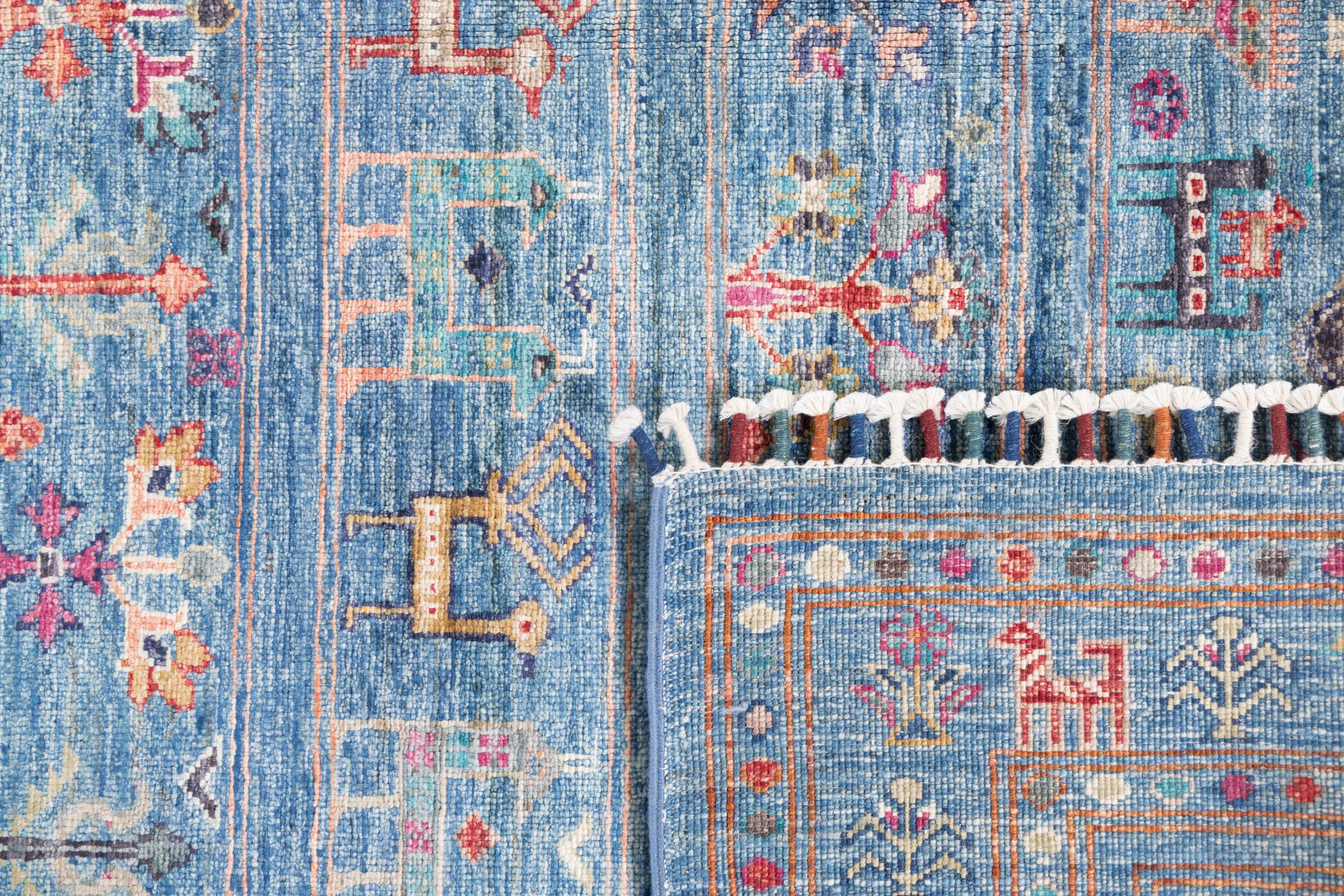 This rug is made of hand spun sheep wool of the highest quality. Especially in Iran (former Persia), Afghanistan and Pakistan wool is still spun by hand before the actual knotting of the rug begins. Wool has proven itself as a natural and extremely hard-wearing material over centuries. Among other things, it has dirt-repellent and heat-insulating properties. At the same time, wool is incomparably soft and has a natural shine.