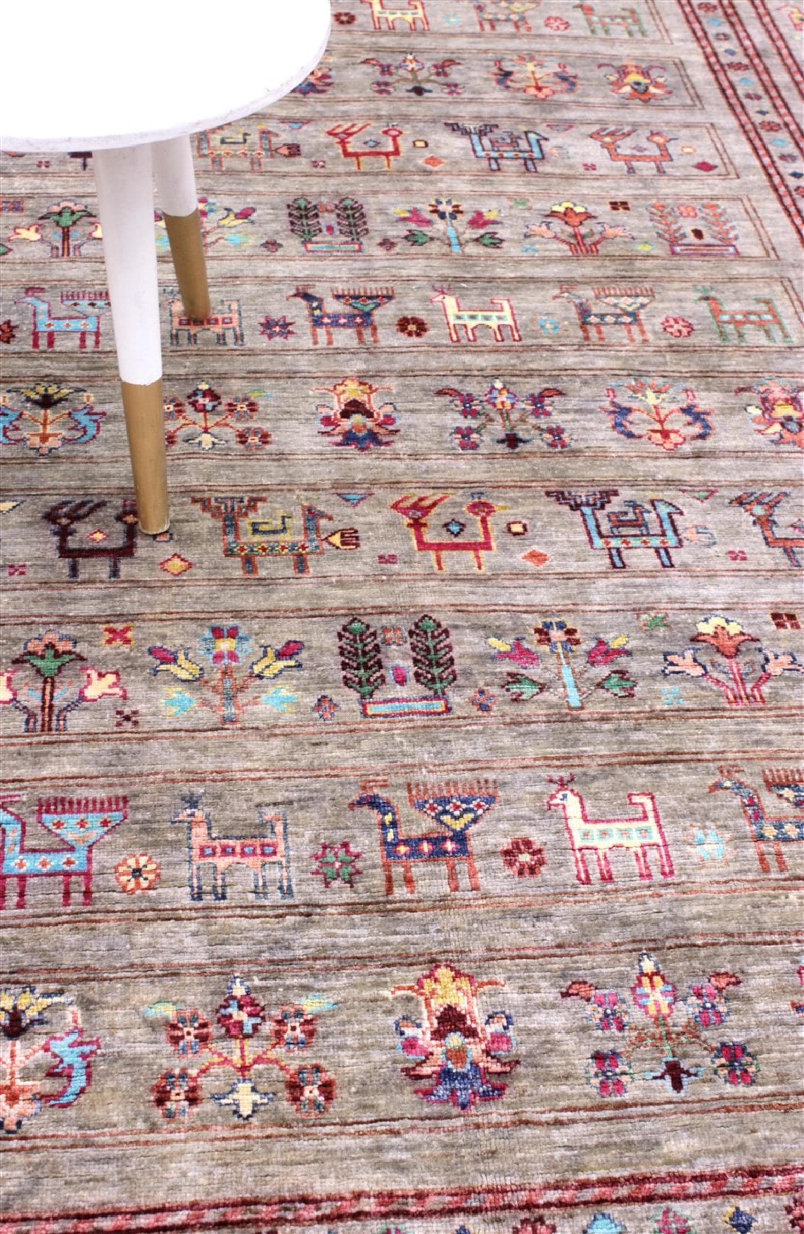 Carpet ID: 283195008954748 Size: 254x172 cm Thickness: ap. 5 mm Knot density: 160 000 - 200 000 / m² Manufacturing: Knotted by hand Pile: Handspun wool Warp: Cotton Origin: Afghanistan Age: New Weight: ap. 15 kg In stock: Unique - Only 1 in stock