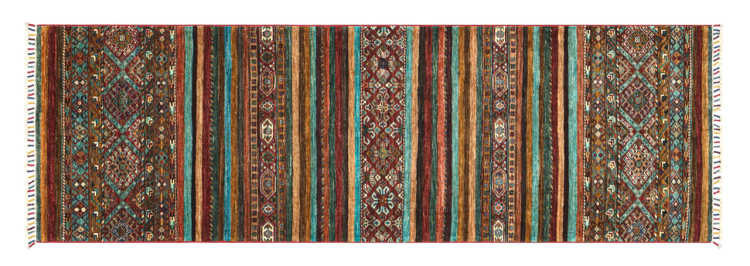 Carpet ID: 290641007627796 Size: 263x80 cm Thickness: ap. 5 mm Knot density: 160 000 - 200 000 / m² Manufacturing: Knotted by hand Pile: Handspun wool Warp: Cotton Origin: Pakistan Age: New Weight: ap. 7 kg In stock: Unique - Only 1 in stock