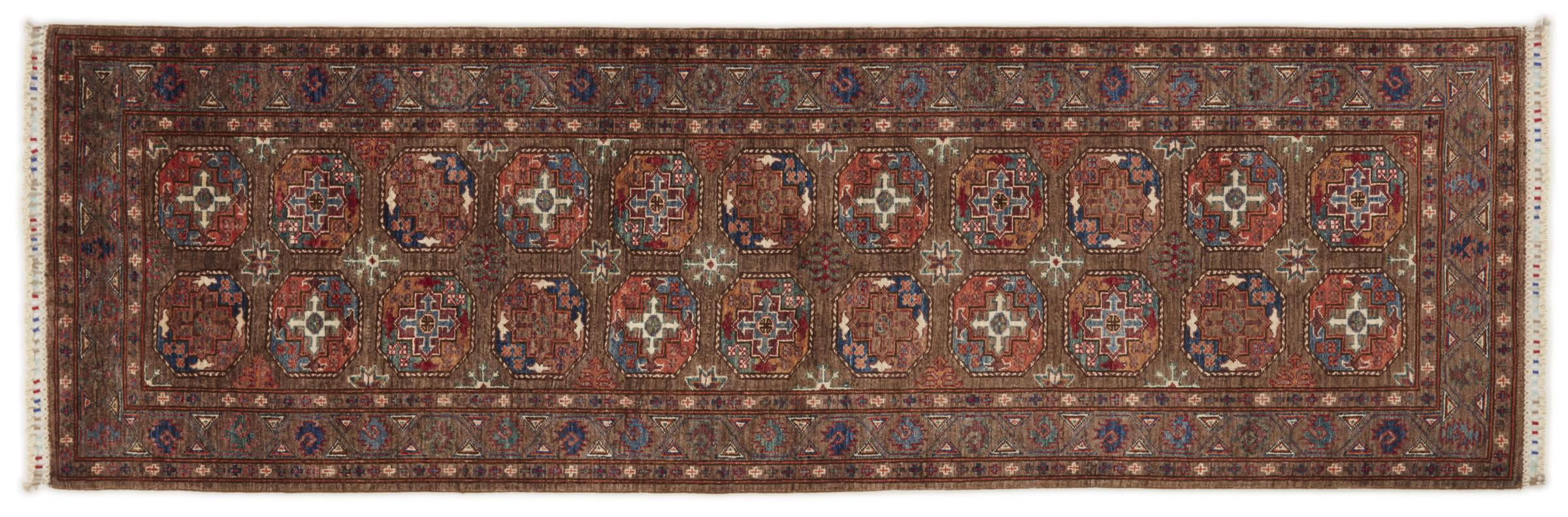 Carpet ID: 291859001984067 Size: 273x84 cm Thickness: ap. 5 mm Knot density: 160 000 - 200 000 / m² Manufacturing: Knotted by hand Pile: Handspun wool Warp: Cotton Origin: Afghanistan Age: New Weight: ap. 8 kg In stock: Unique - Only 1 in stock