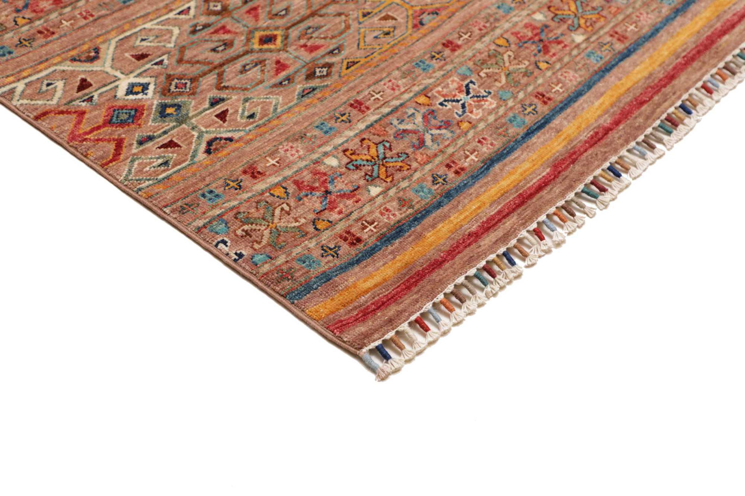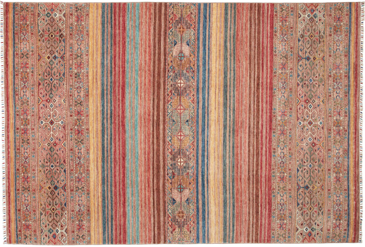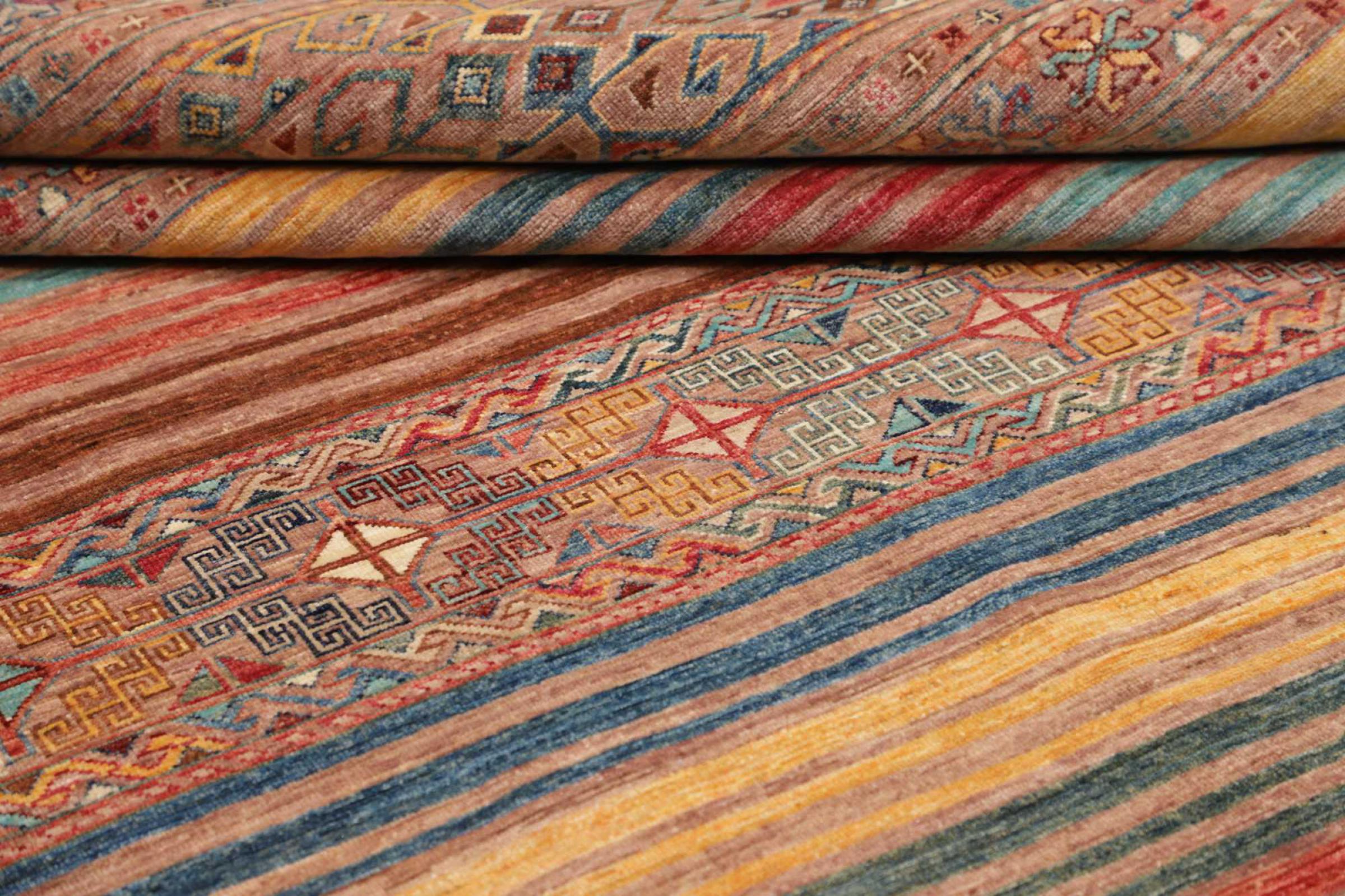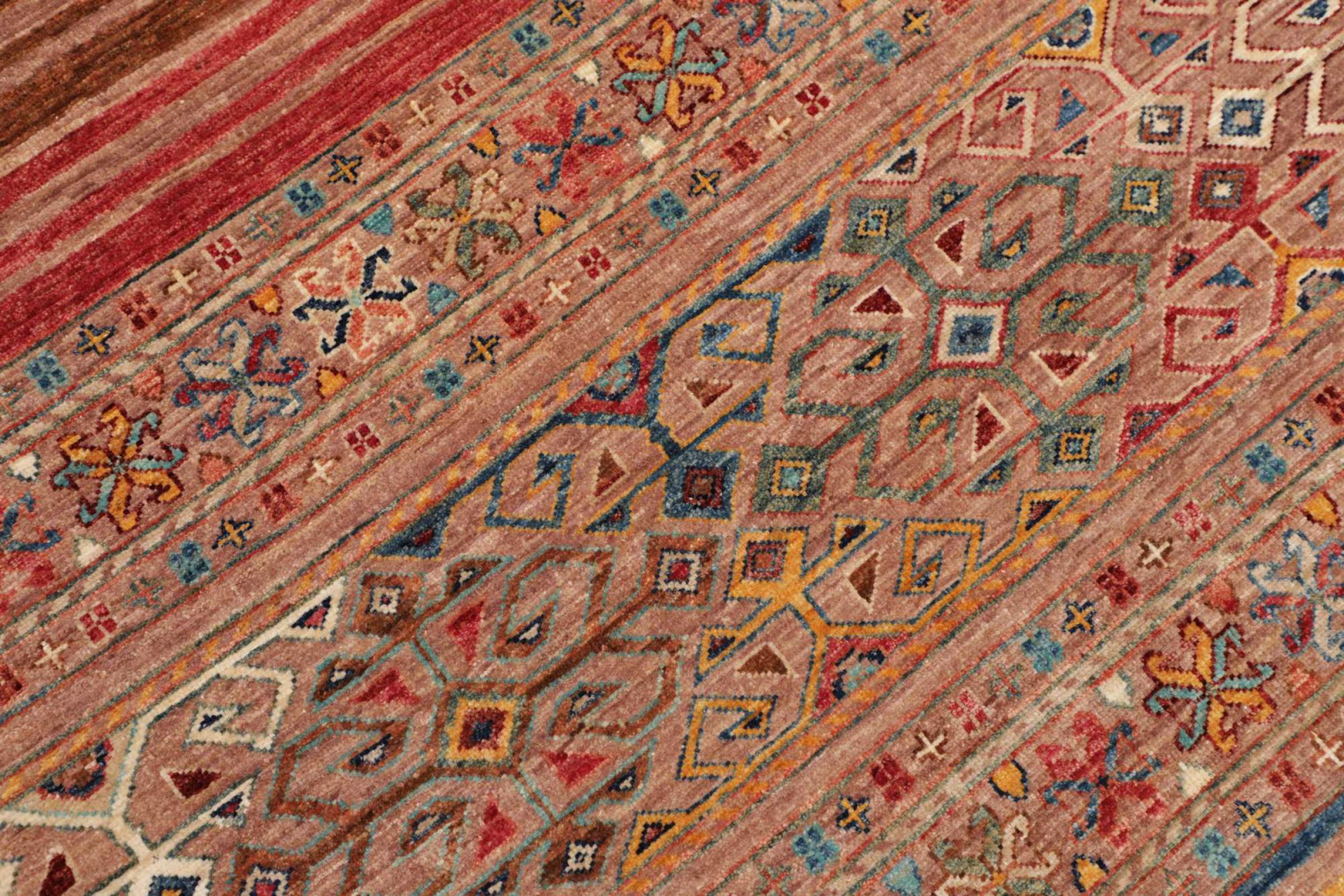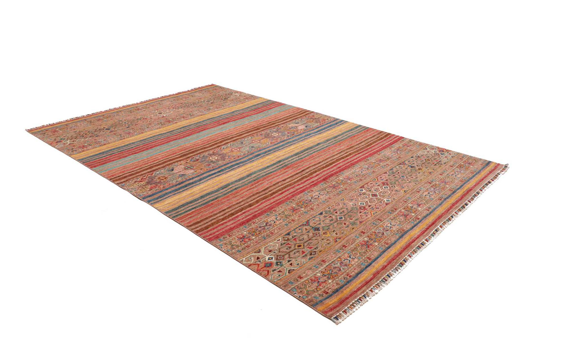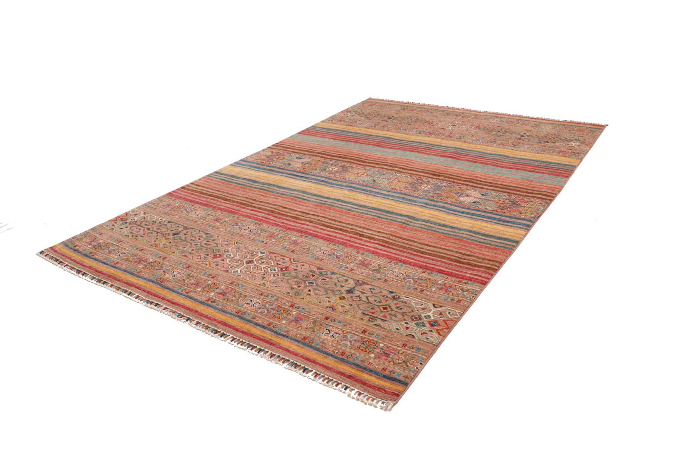 This Arijana Shaal carpet was knotted by hand in Pakistan. It promises a very high quality and thus offers long lasting pleasure. The pattern in stripes is varied and exciting. It was inspired by the well-known Moharamati design. If you find monochrome carpets too boring, you will certainly be delighted with this Arijana Shaal.