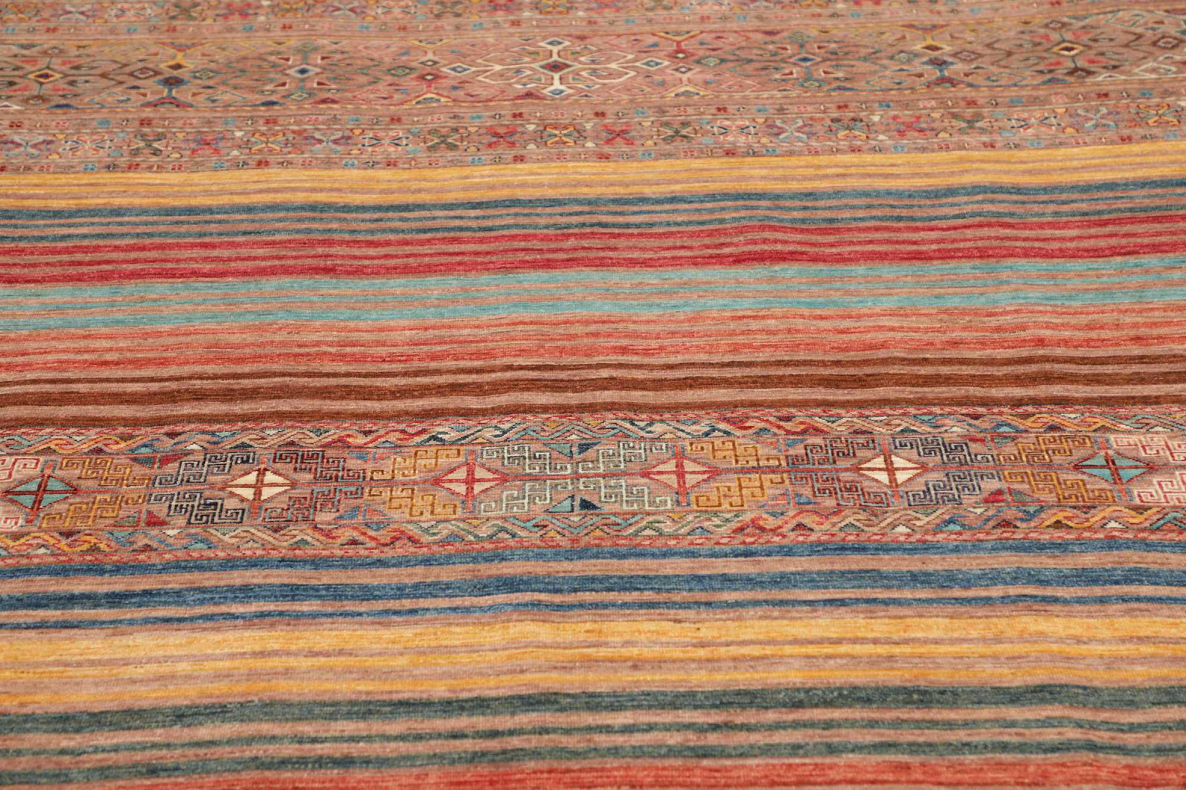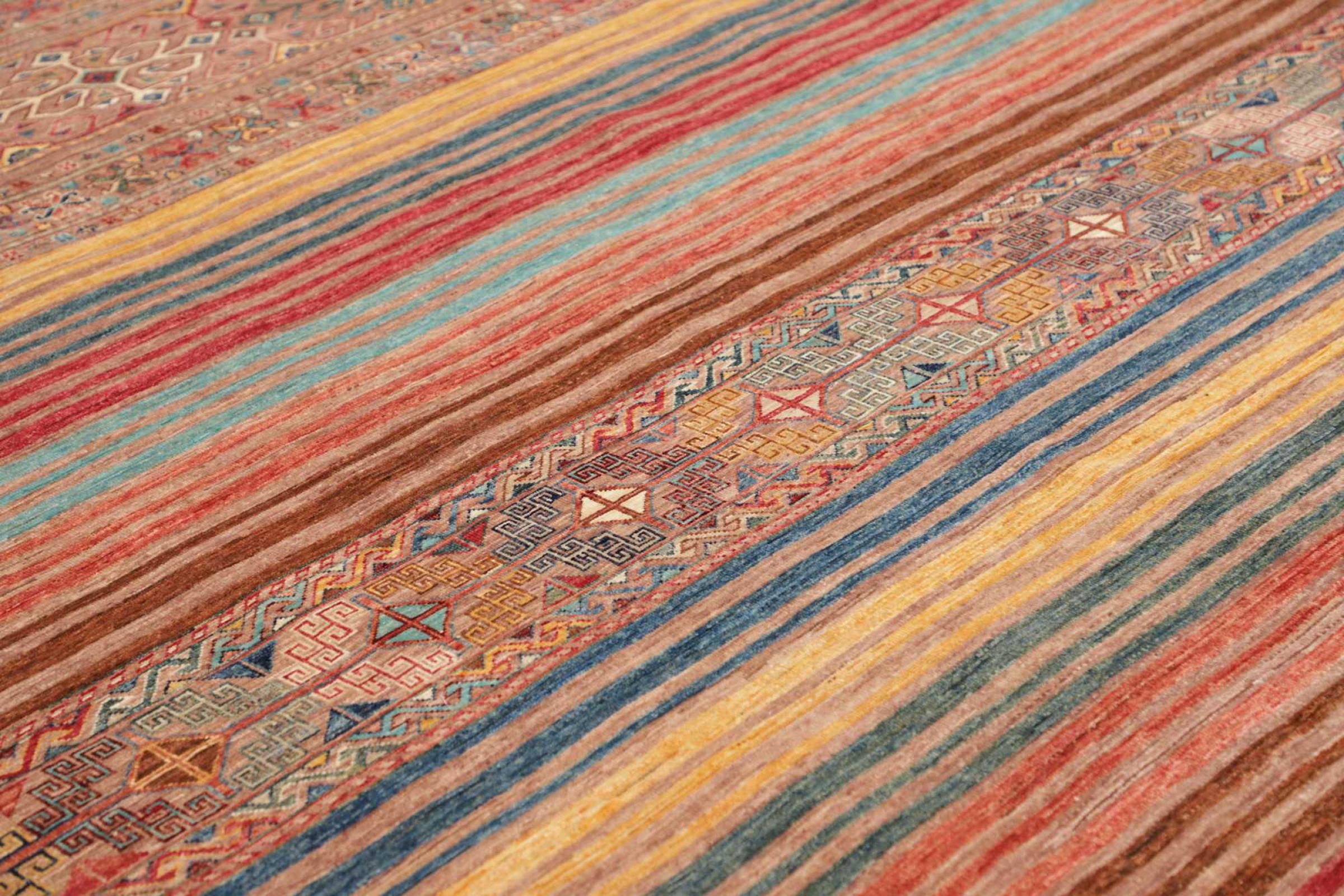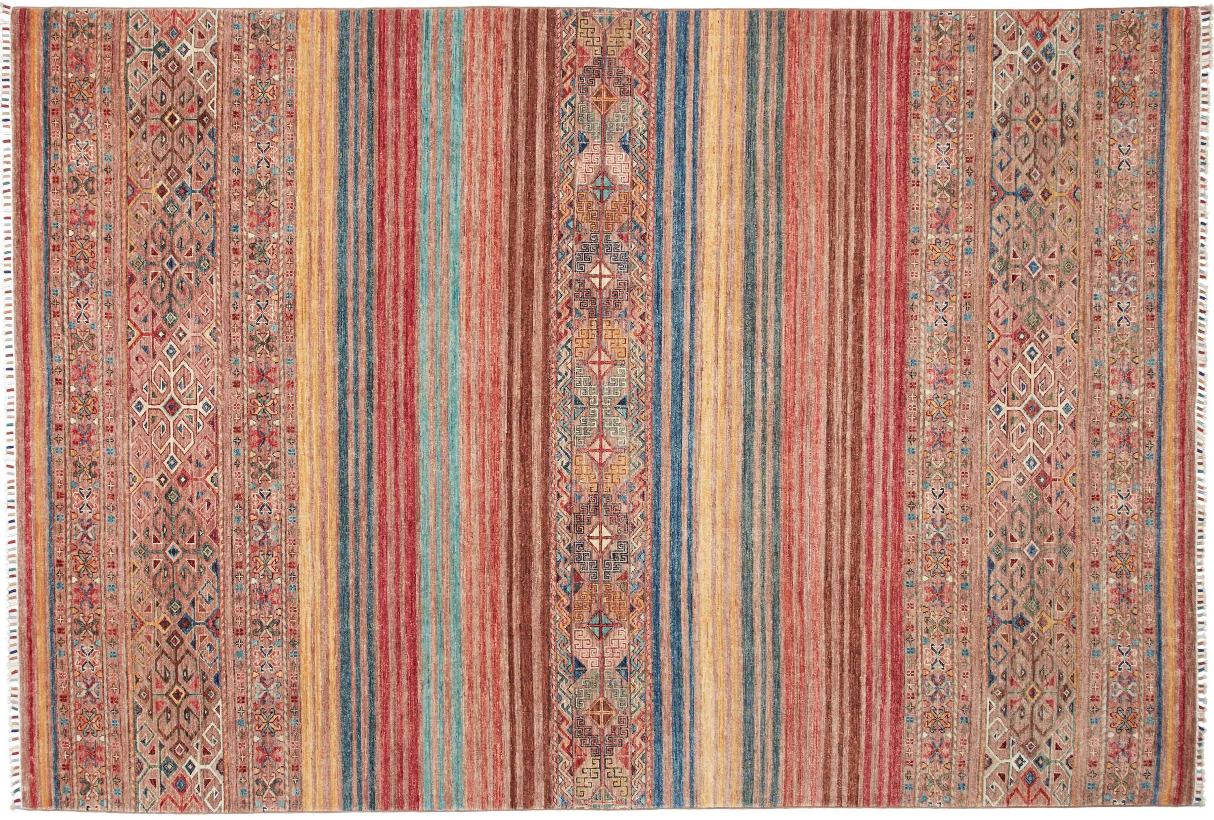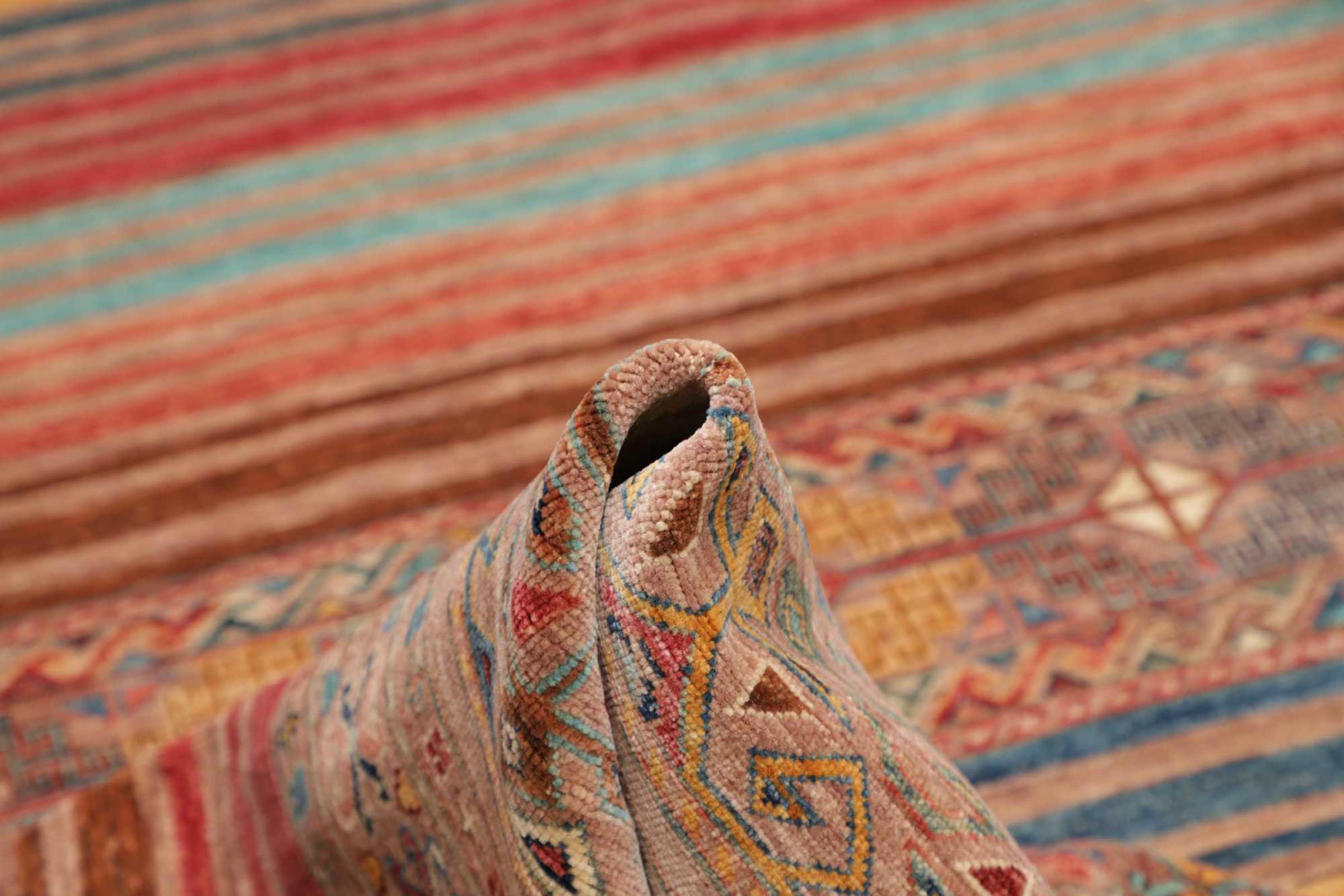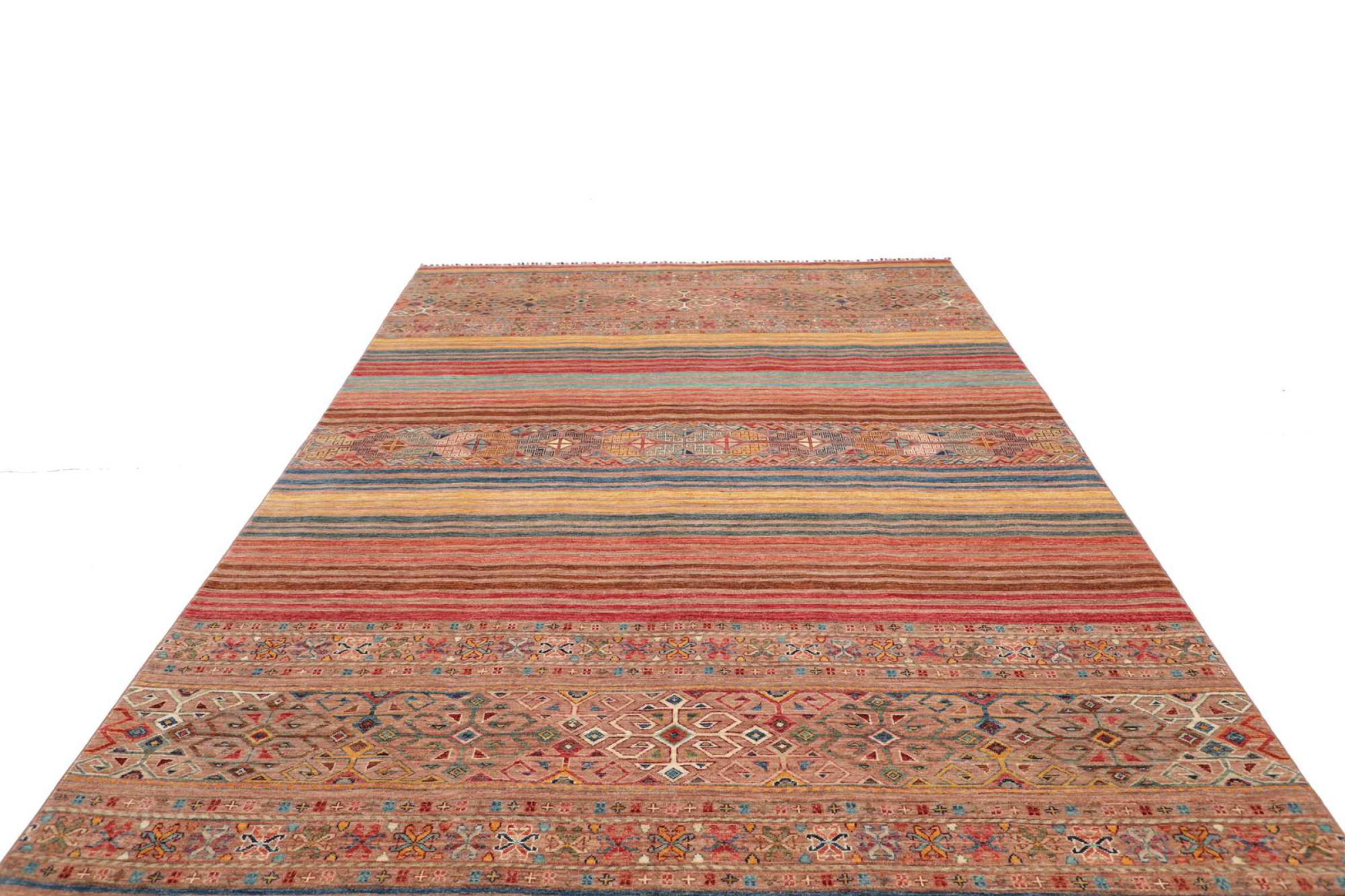 This Arijana Shaal carpet was knotted by hand in Pakistan. It promises a very high quality and thus offers long lasting pleasure. The pattern in stripes is varied and exciting. It was inspired by the well-known Moharamati design. If you find monochrome carpets too boring, you will certainly be delighted with this Arijana Shaal.