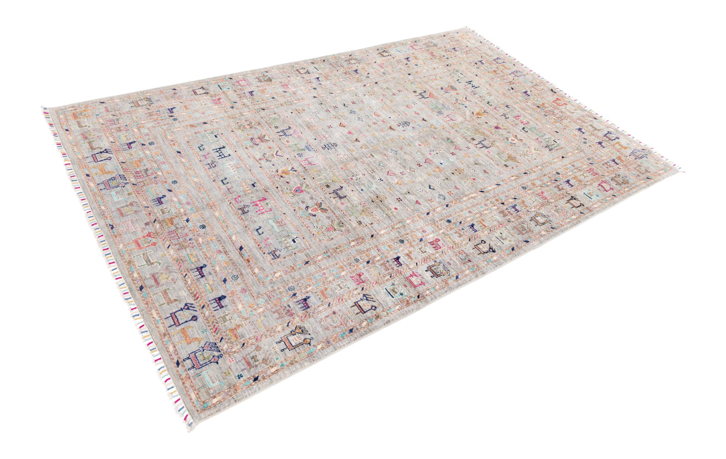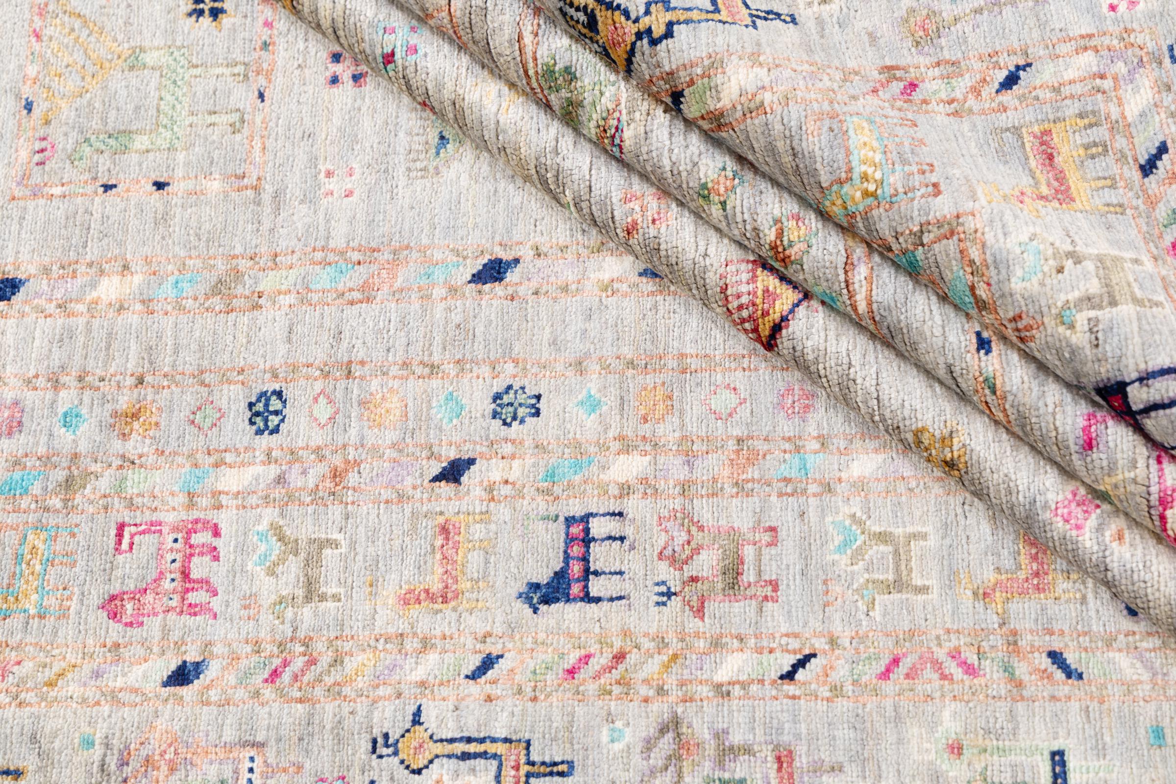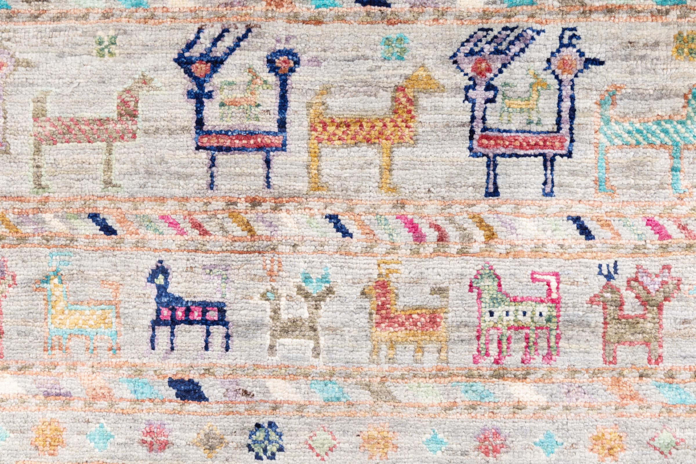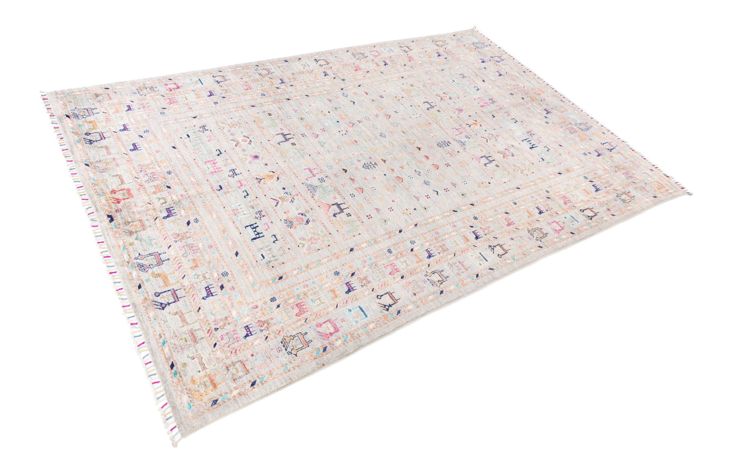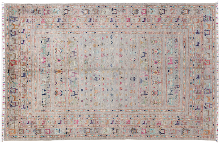 This rug is made of hand spun sheep wool of the highest quality. Especially in Iran (former Persia), Afghanistan and Pakistan wool is still spun by hand before the actual knotting of the rug begins. Wool has proven itself as a natural and extremely hard-wearing material over centuries. Among other things, it has dirt-repellent and heat-insulating properties. At the same time, wool is incomparably soft and has a natural shine.