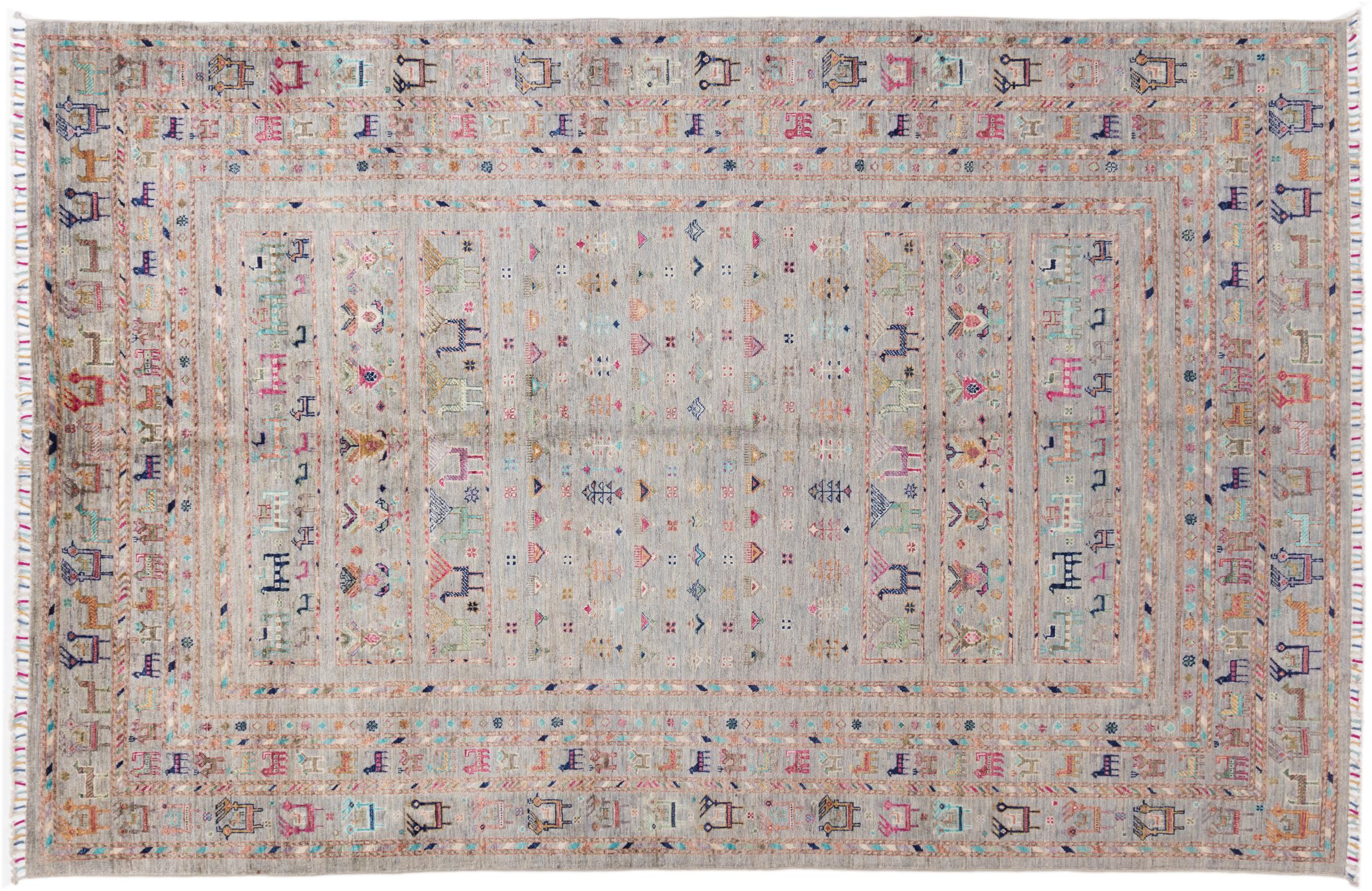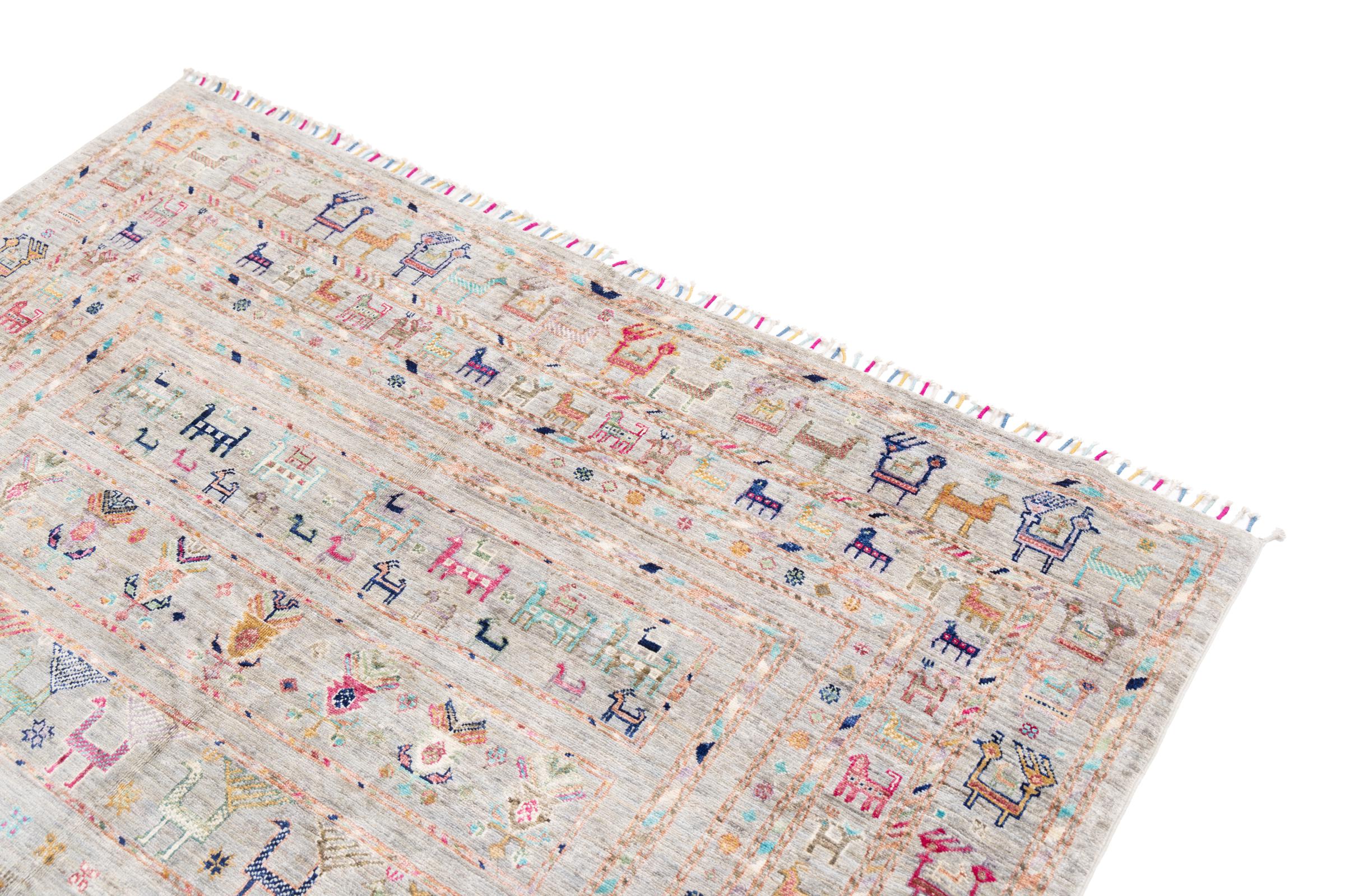 This Arijana Shaal carpet was knotted by hand in Pakistan. It promises a very high quality and thus offers long lasting pleasure. The pattern in stripes is varied and exciting. It was inspired by the well-known Moharamati design. If you find monochrome carpets too boring, you will certainly be delighted with this Arijana Shaal.